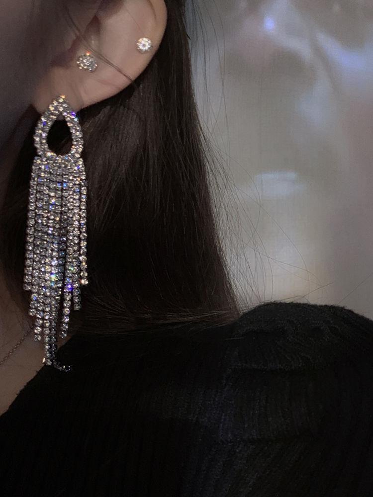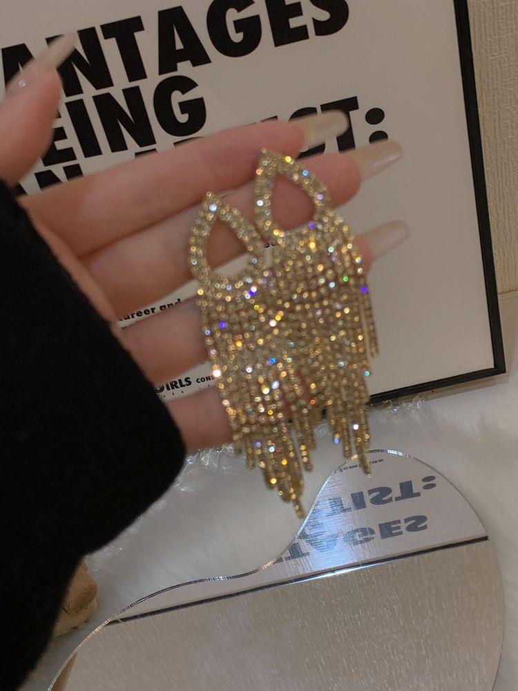 Rhinestone tassel silver stud earrings, Gold rhinestone tassel stud earrings
