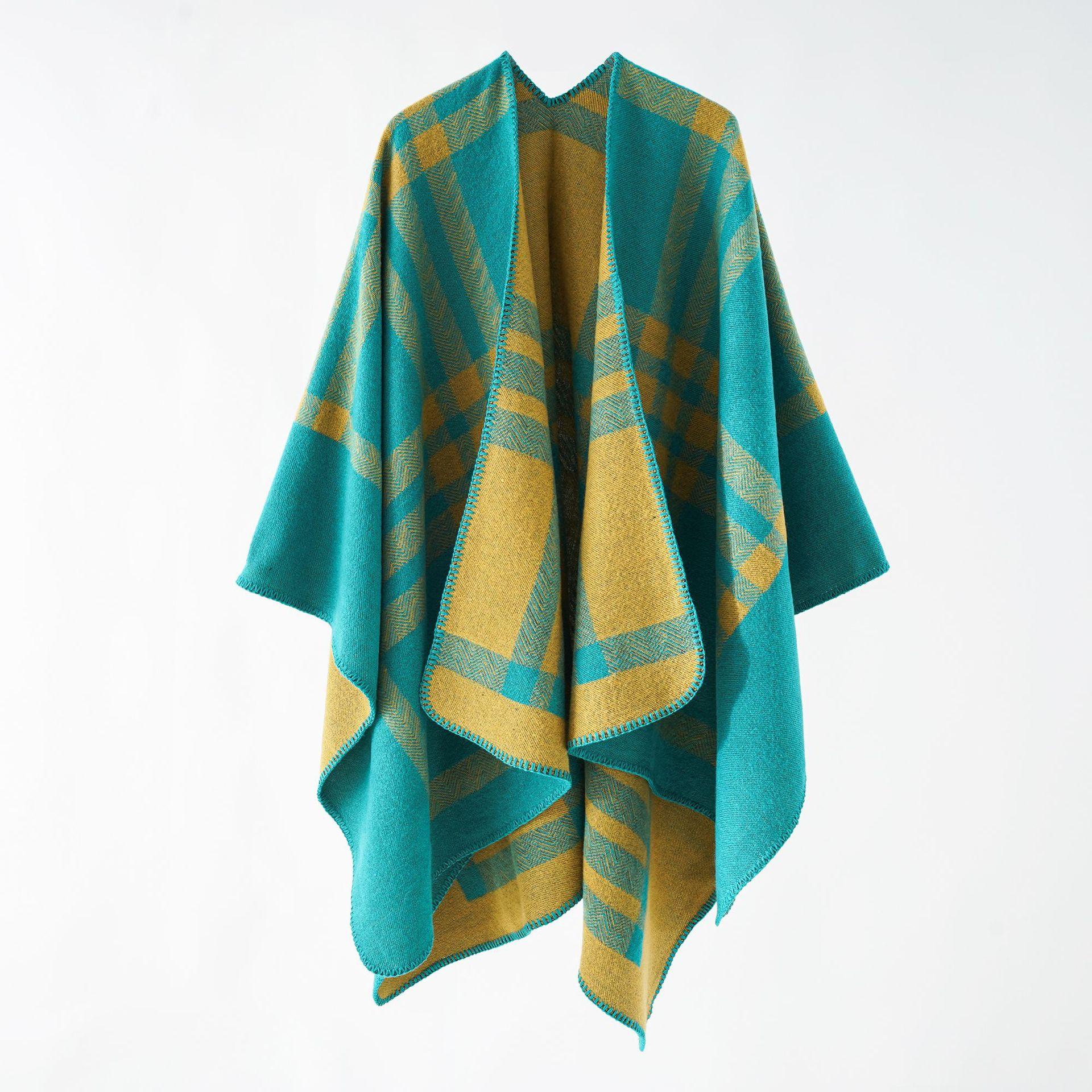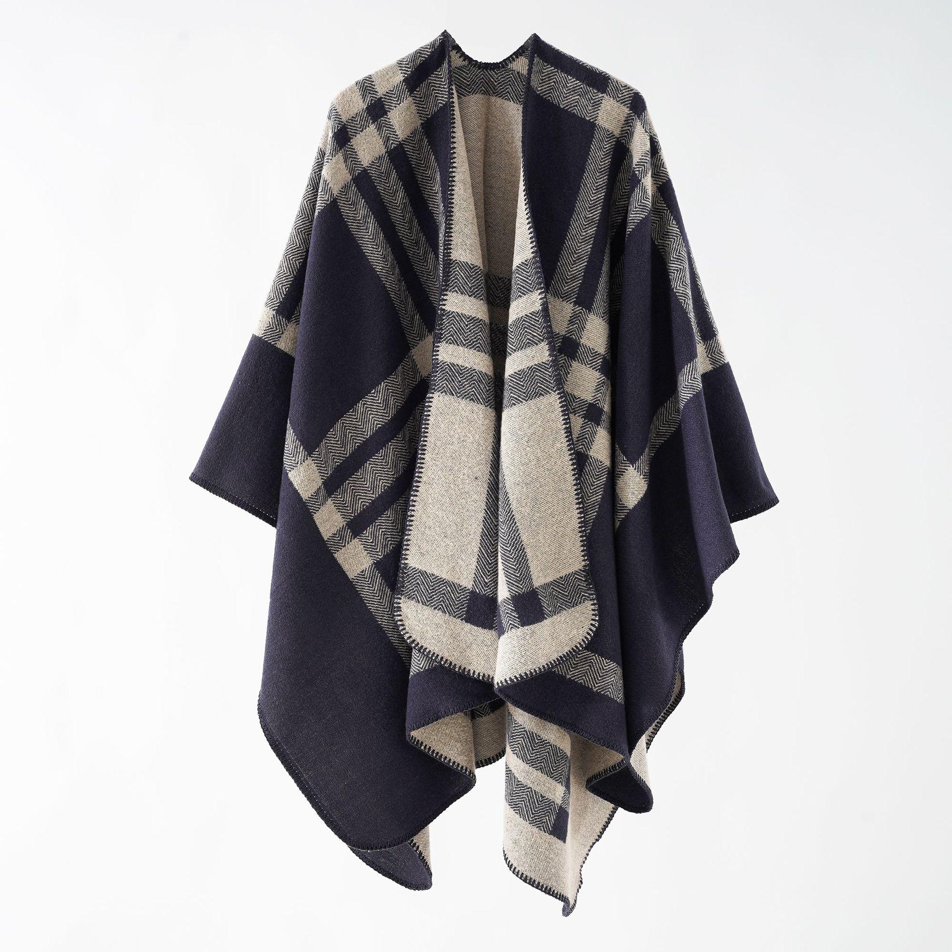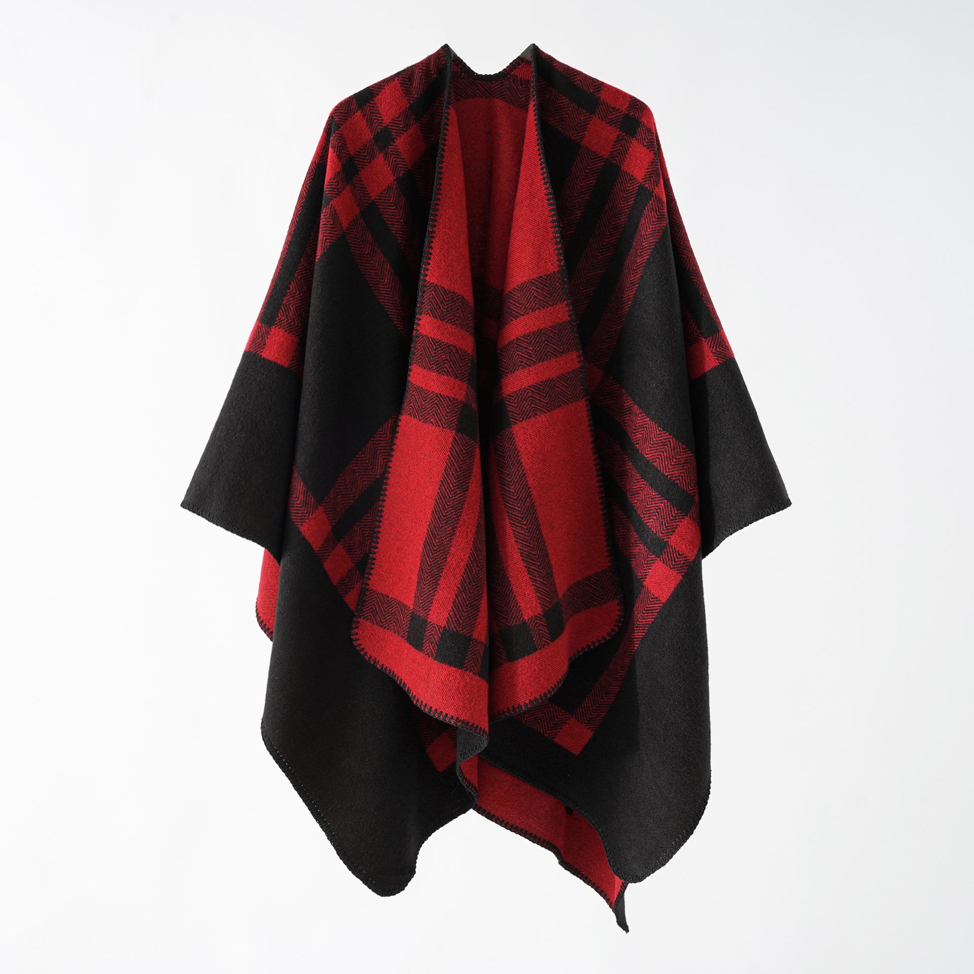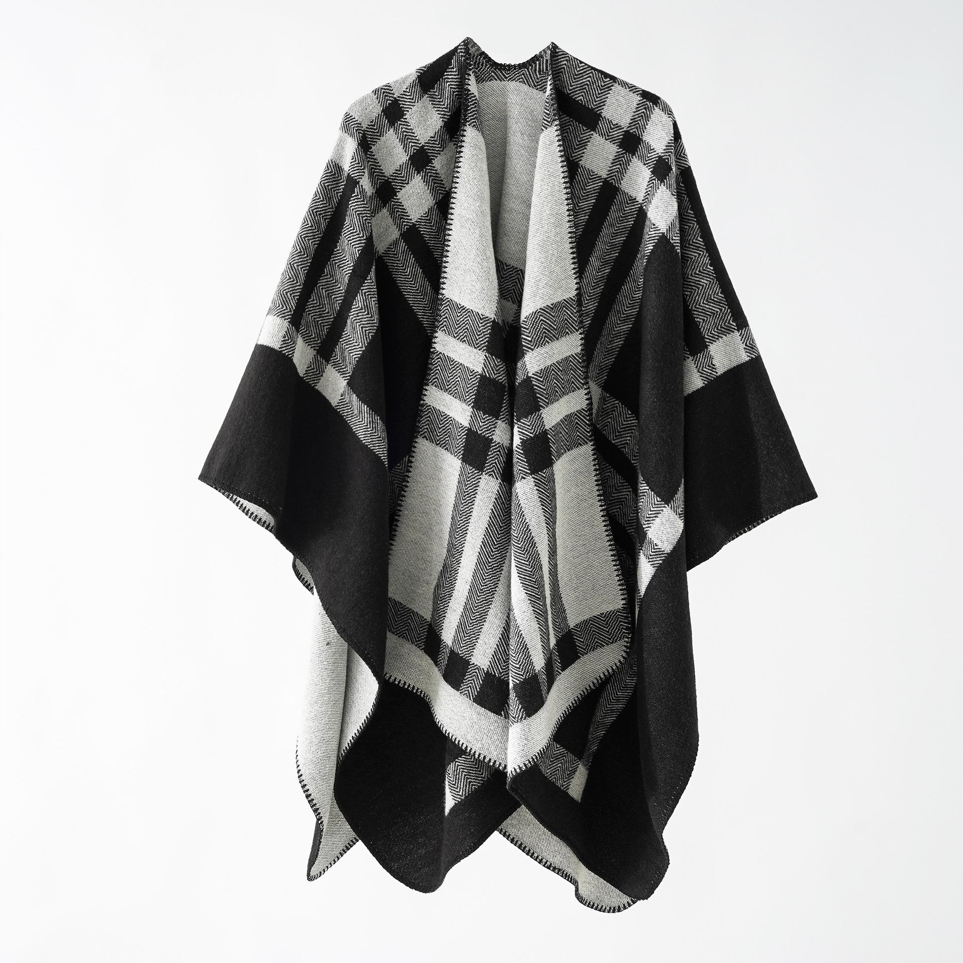 • Capa de moda con chal a cuadros de barra transfronteriza, de doble propósito, sencilla y versátil, para viajes, para otoño e invierno, cálida y exterior.
