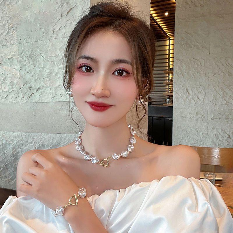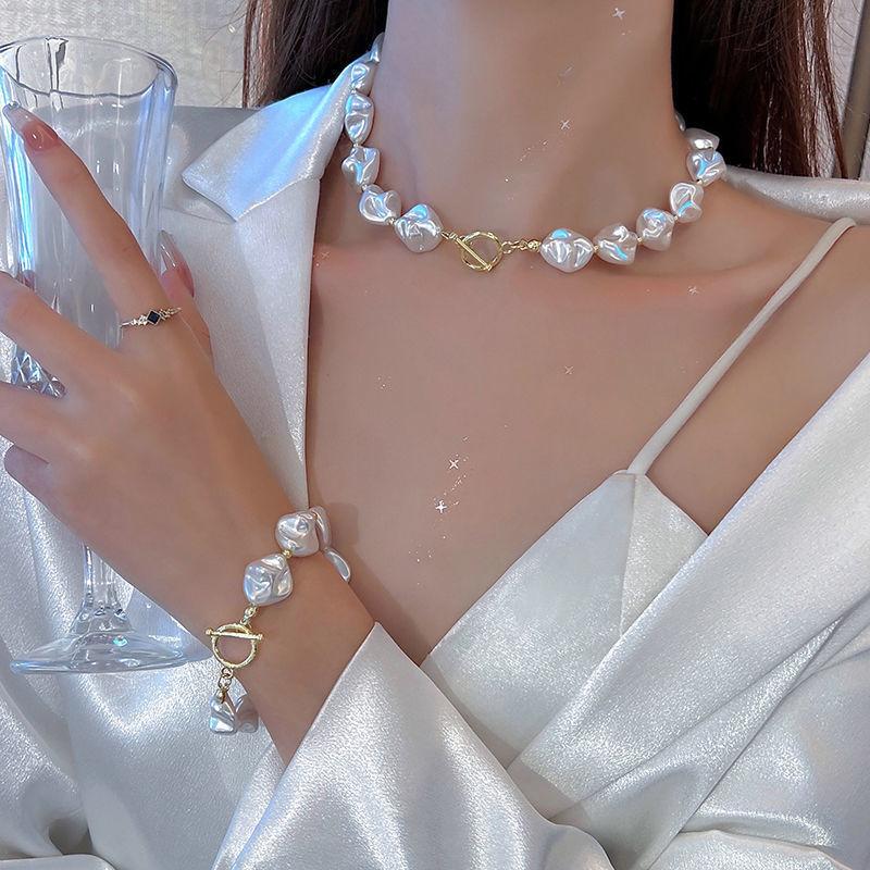 Irregular TO buckle pearl necklace, Irregular TO Buckle Pearl Bracelet