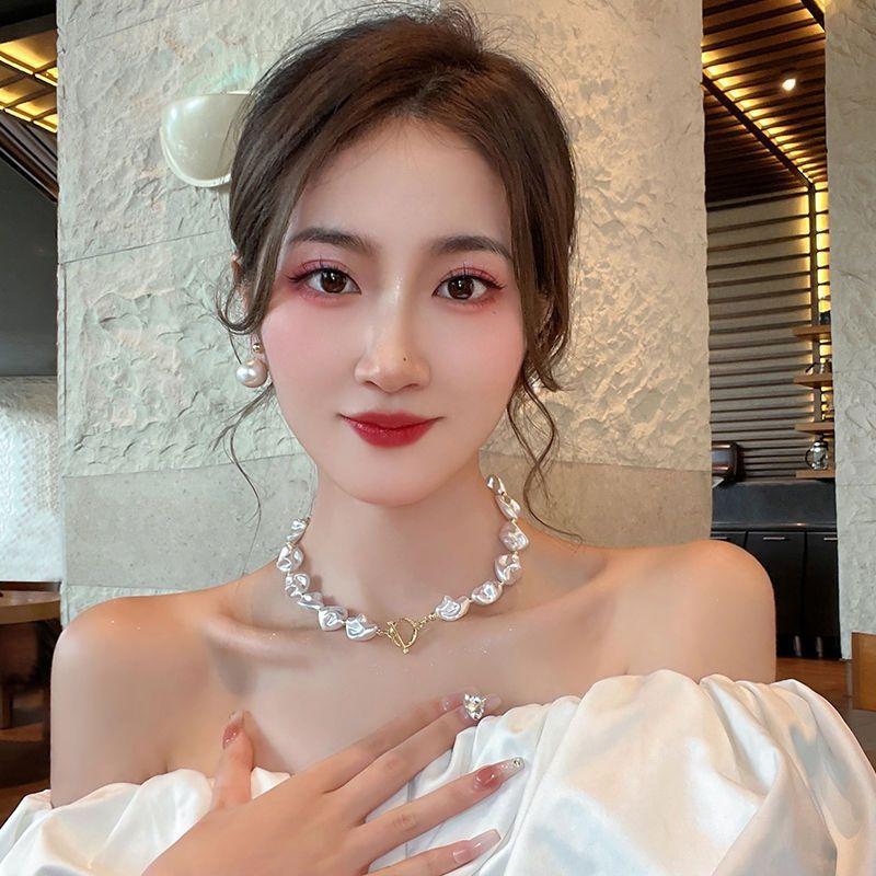 Collar de perlas con forma 2024 temperamento de sentimiento femenino francés simple retro diseño nicho cadena con cierre de hebilla OT G