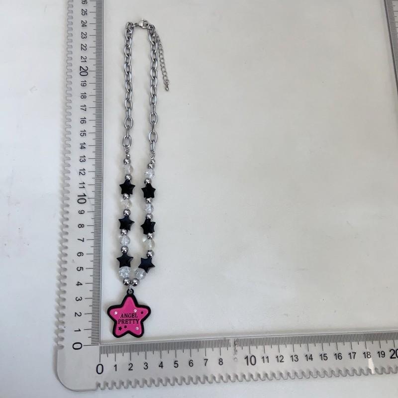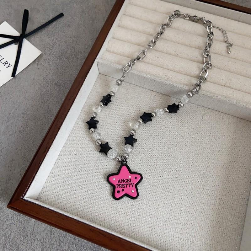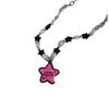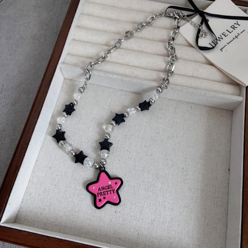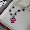 Collar de lujo ligero de moda con costuras de estrella negra, cuentas redondas, colgante de estrella de cinco puntas con letra roja rosa de alta calidad, cadena de clavícula