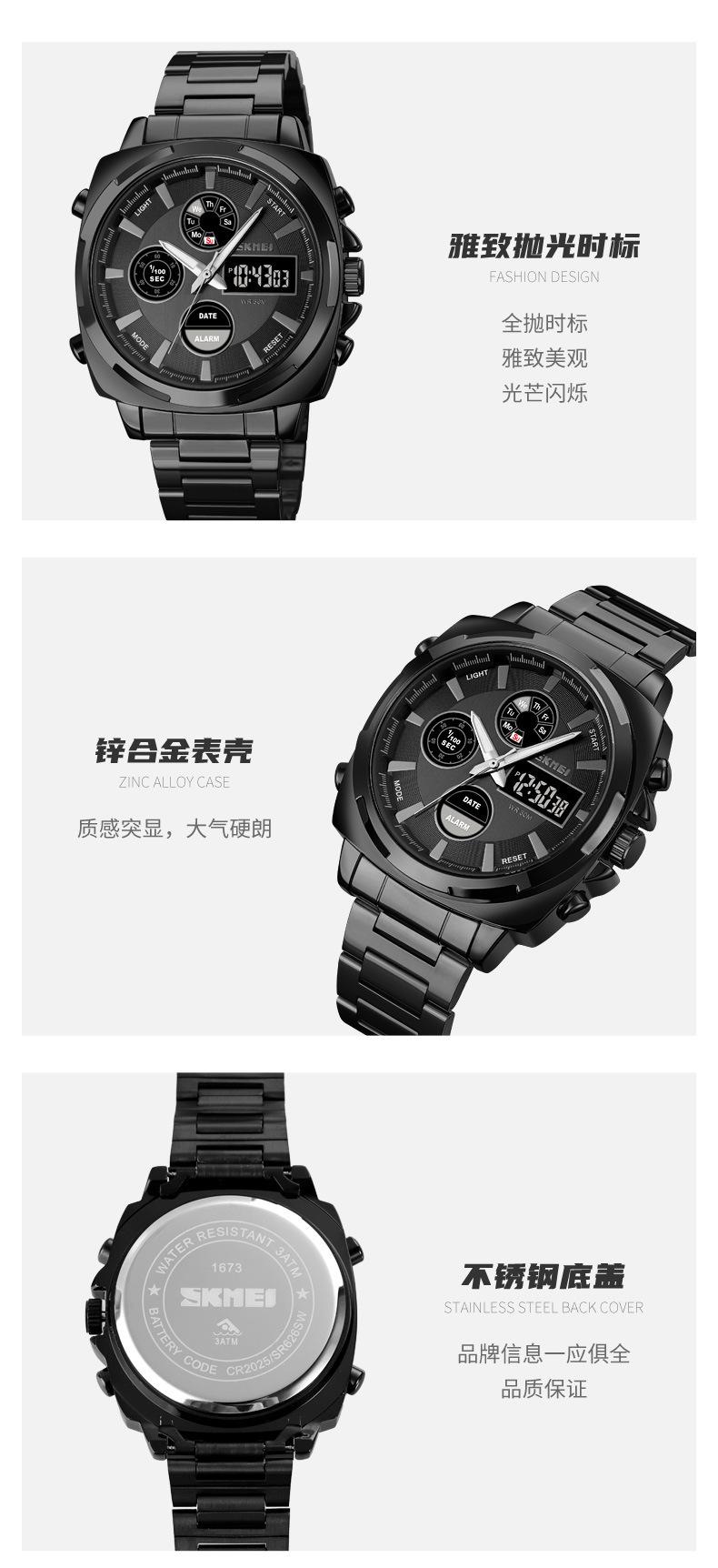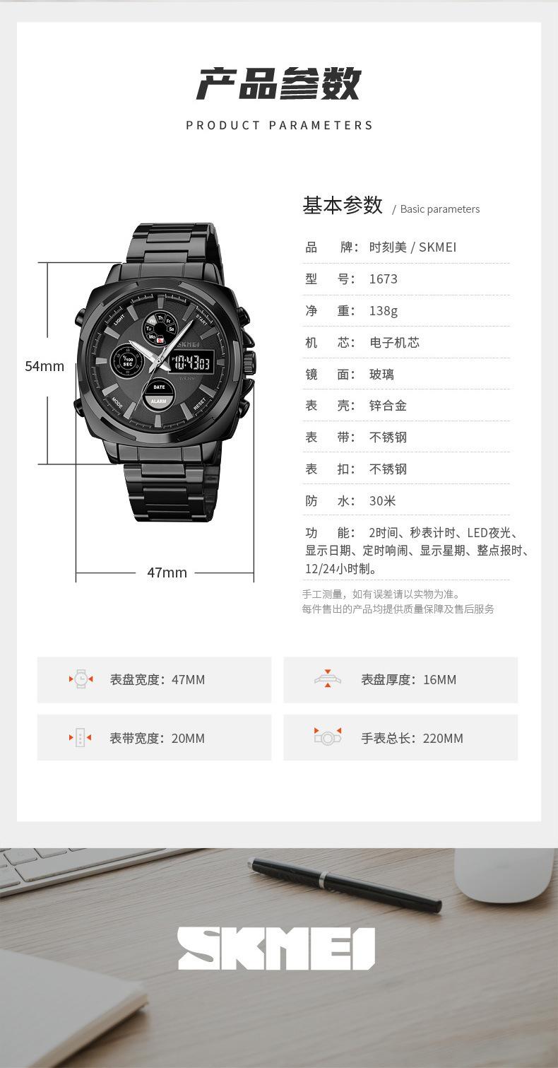 | Material | Caja de aleación de zinc, correa de acero inoxidable, espejo de cristal, tapa inferior de acero inoxidable, hebilla de acero inoxidable. |