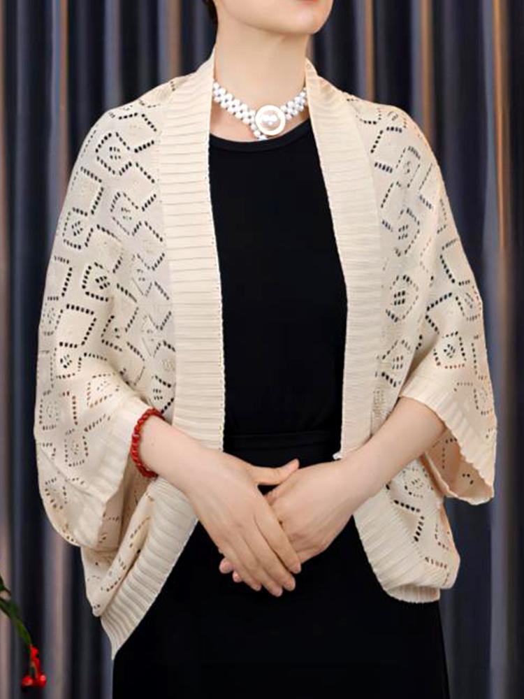 Chal de seda de hielo para mujer, chaqueta fina de punto de verano, cárdigan, cheongsam, falda exterior a juego, tirantes, protección para el cuello para habitación con aire acondicionado