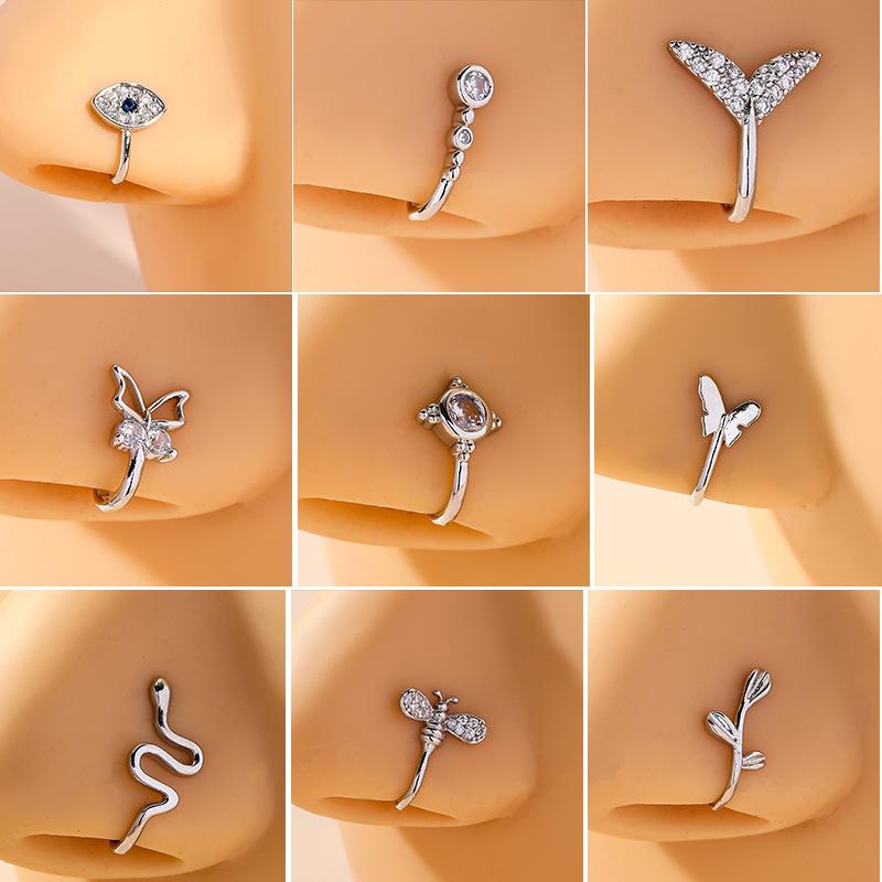 Accesorios de joyería transfronterizos europeos y americanos cobre diamante anillo nasal en forma de serpiente flor mariposa piercing accesorios para la nariz joyería stud para la nariz clip nasal en forma de U