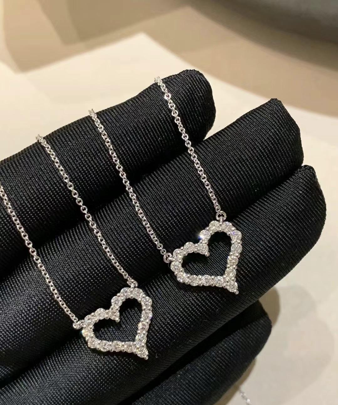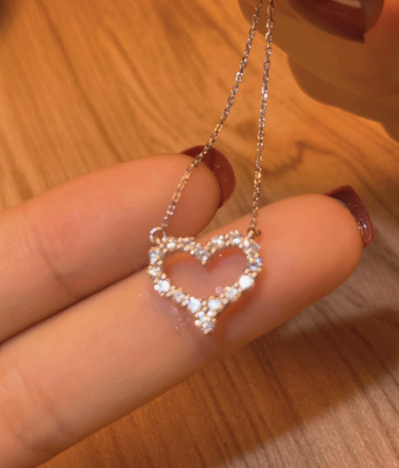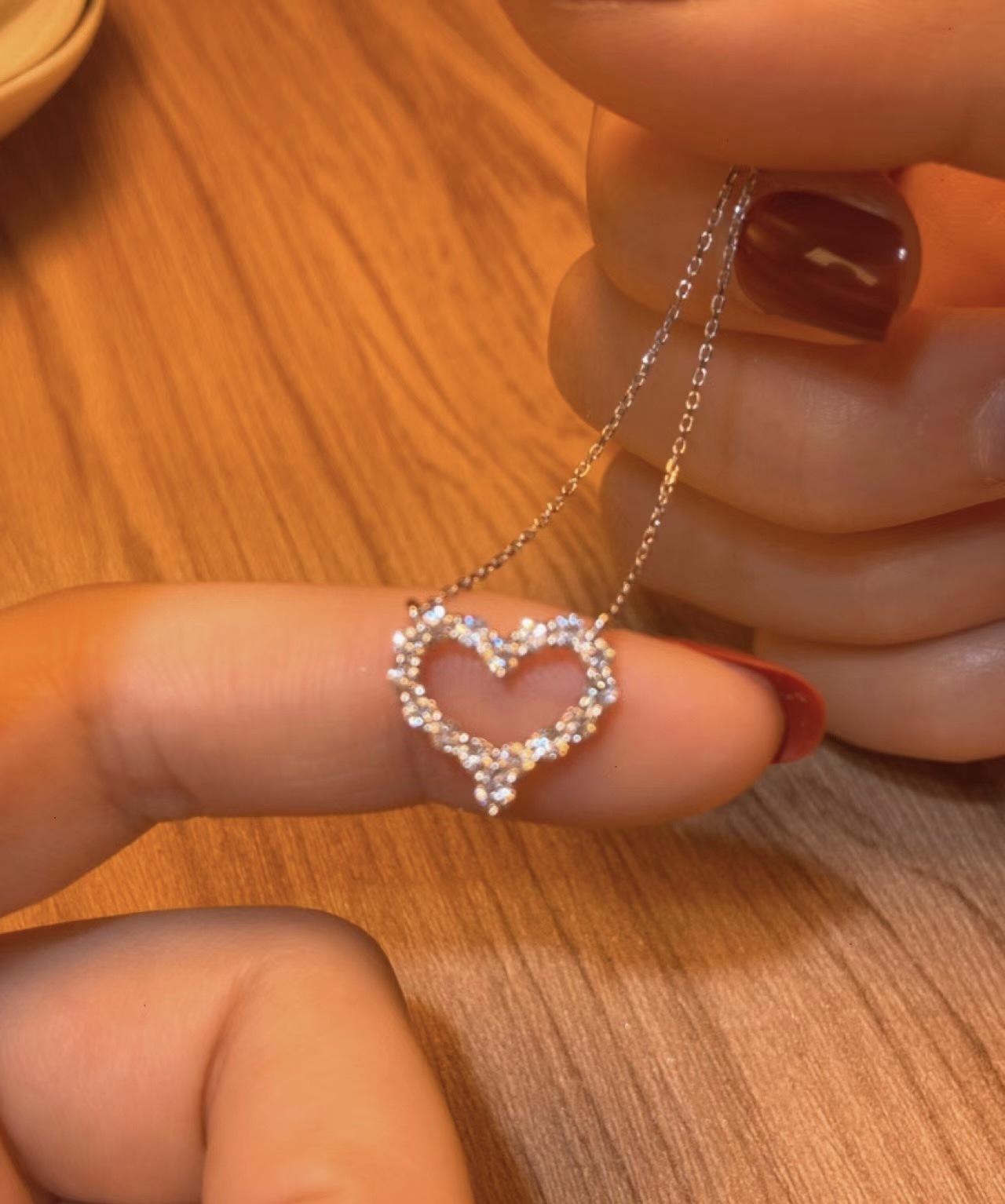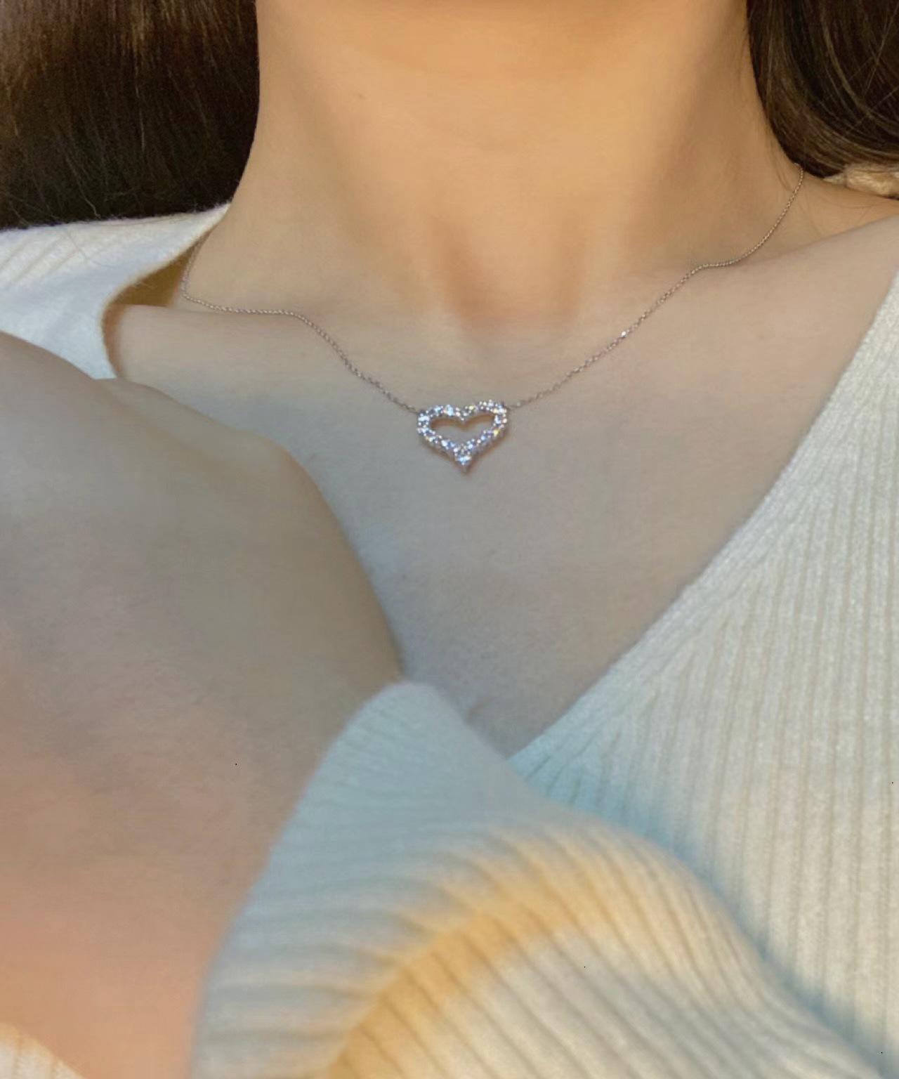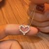 Collar con colgante de corazón Super Flash de acero de titanio, elegante y a la moda con incrustaciones de diamantes, diseño resistente a la decoloración para mujer, collar de cadena de clavícula que combina con todo.
