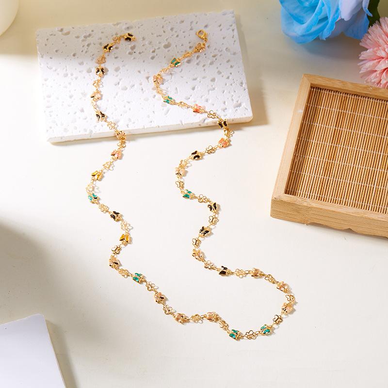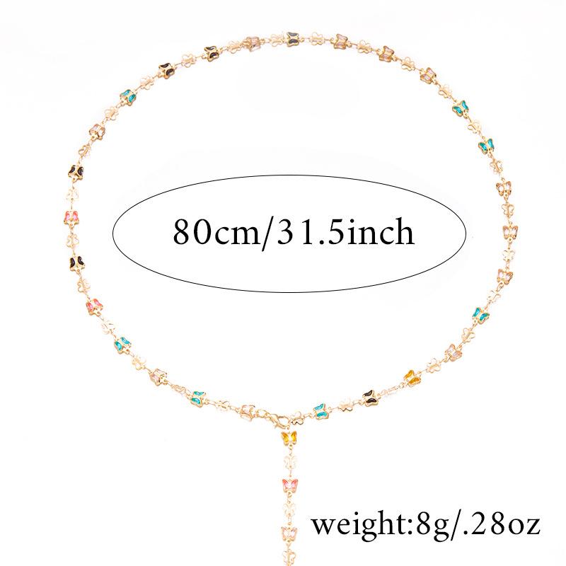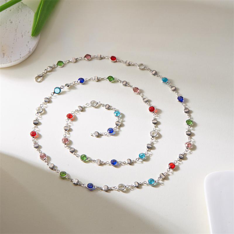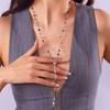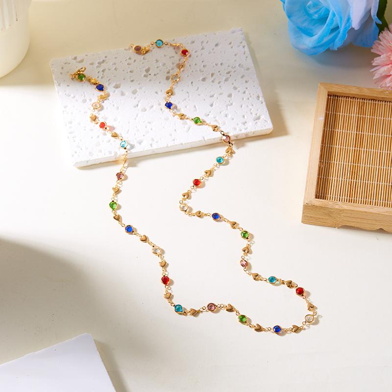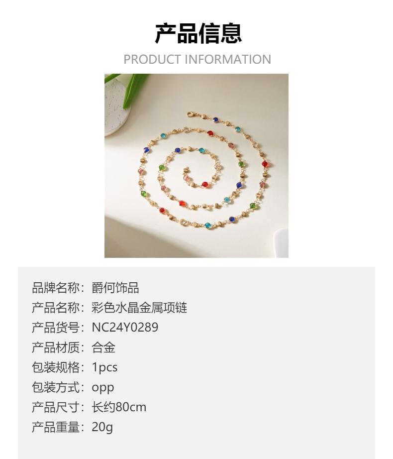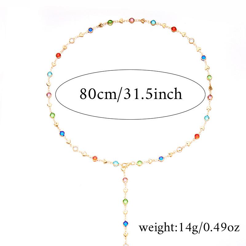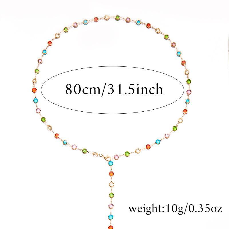 Collar elegante de cadena de clavícula de metal con cristales de colores para mujer, estilo transfronterizo europeo y americano, con borlas y cadena larga sencilla.