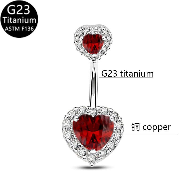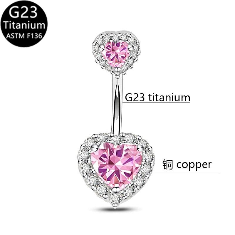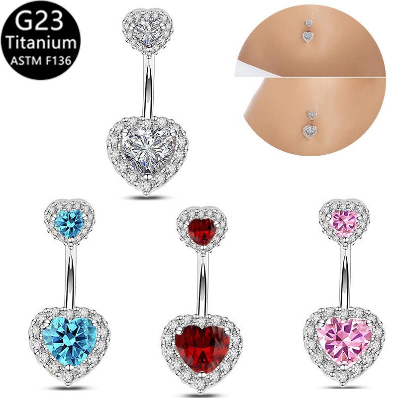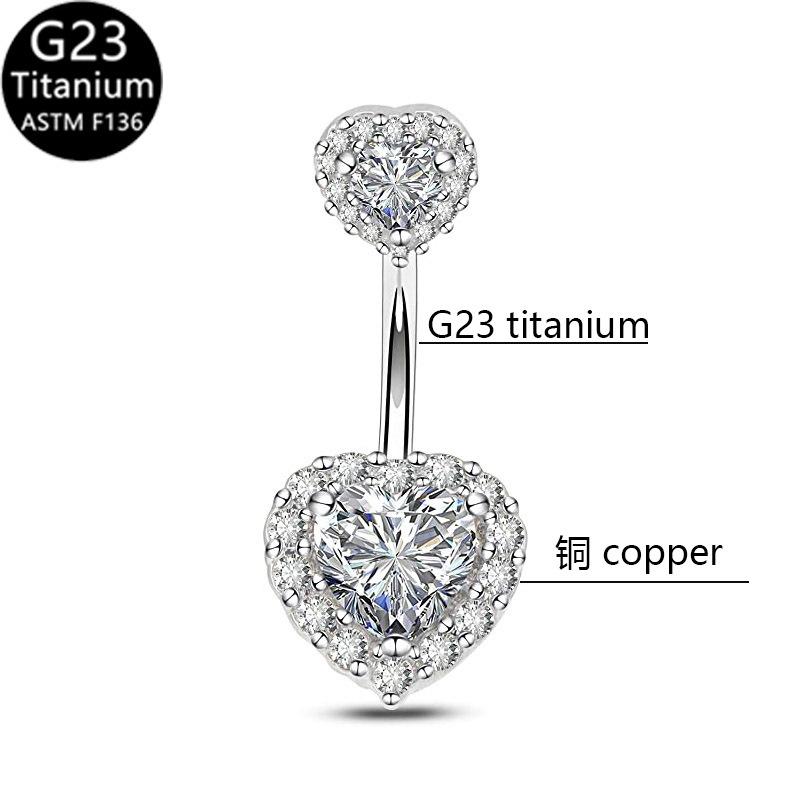 E-Commerce Transfronterizo G23 Titanio Barra Corazón Anillo para el Ombligo Zircón Brillante Uña para el Ombligo Joyería para Piercing Europea y Americana