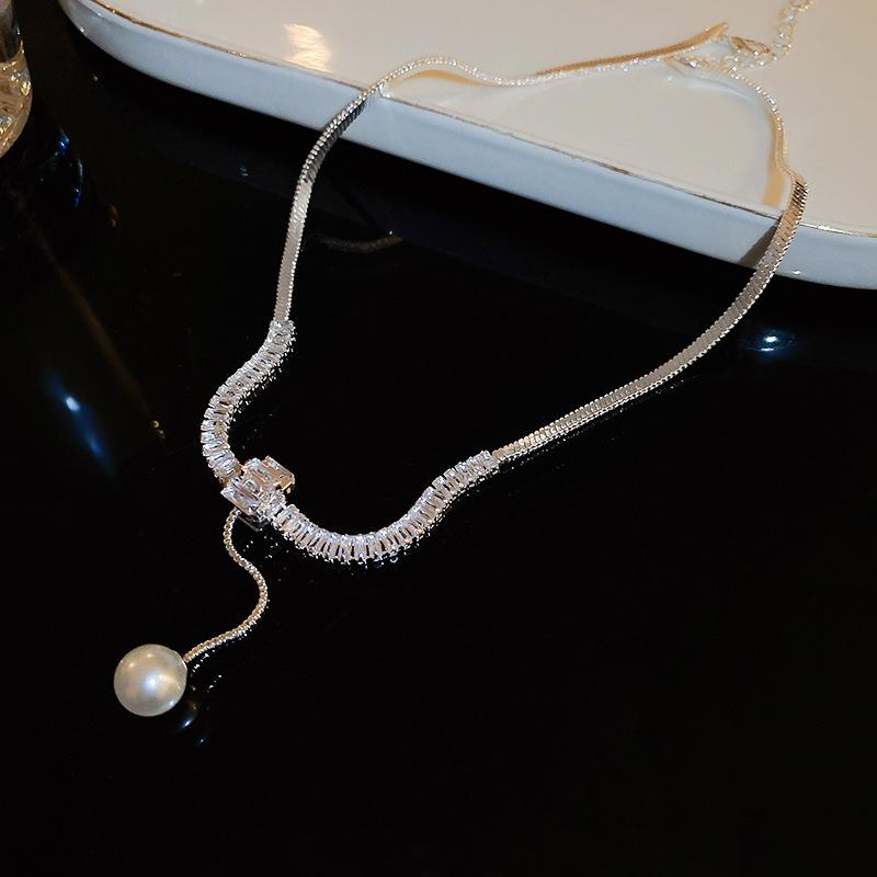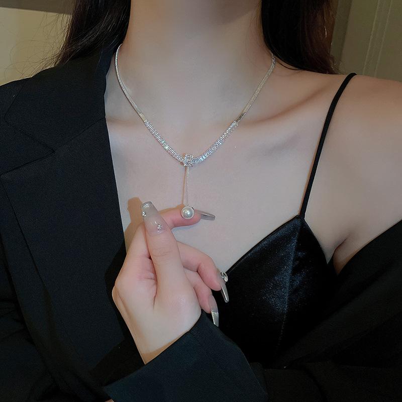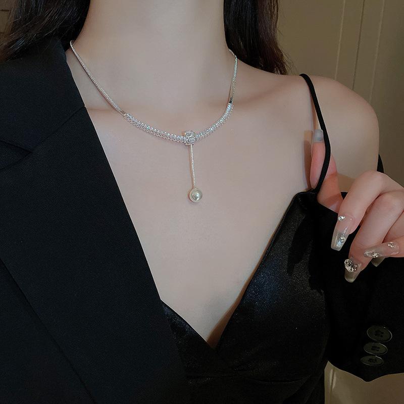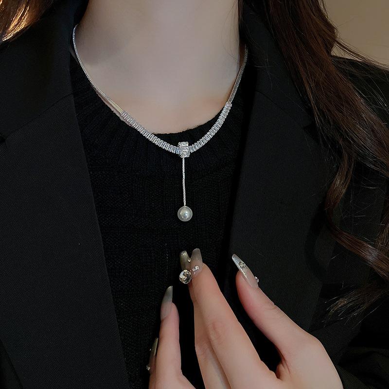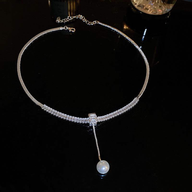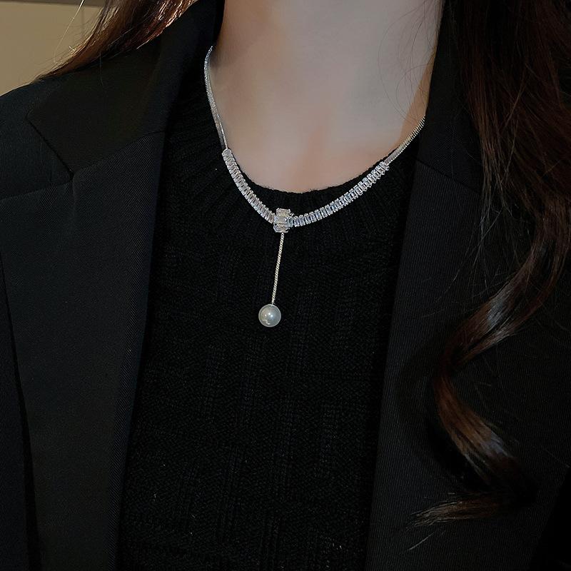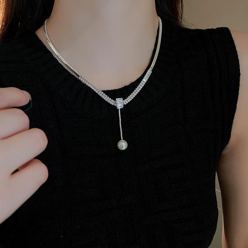 Collar ligero de lujo con perlas de circón de estilo frío, ajustable, estilo europeo y americano, elegante collar de clavícula de alta gama para mujer
