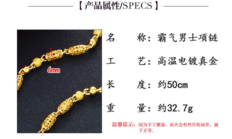 Collar mayorista de Vietnam chapado en oro arena, hueco de oliva con letra W, chapado en oro de 24k para hombre, cadena para el cuello que no se desvanece a largo plazo