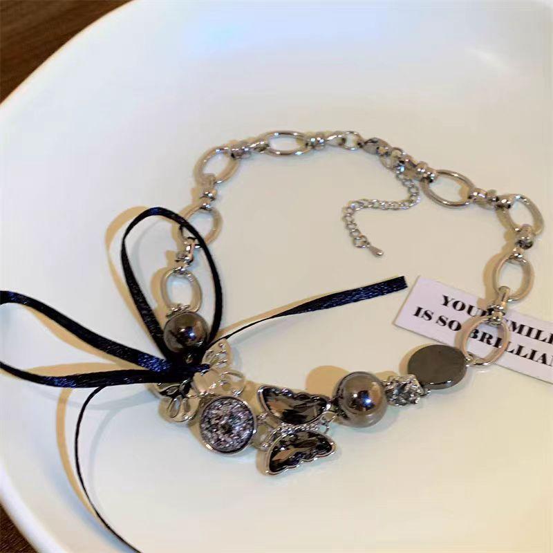 Collar de lazo punk para mujer, diseño de nicho, dulce y genial, cadena de clavícula Spice Girl, collar de cuentas de alta calidad, collar moderno.