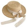 Jia L Polka Dot Lace Bow Straw Hat Beige