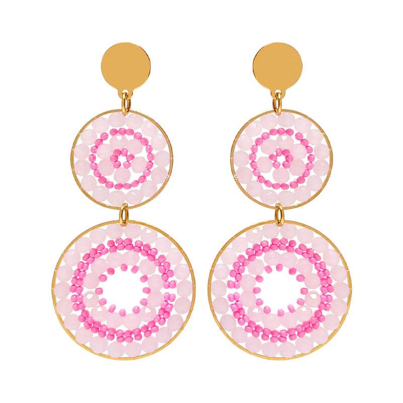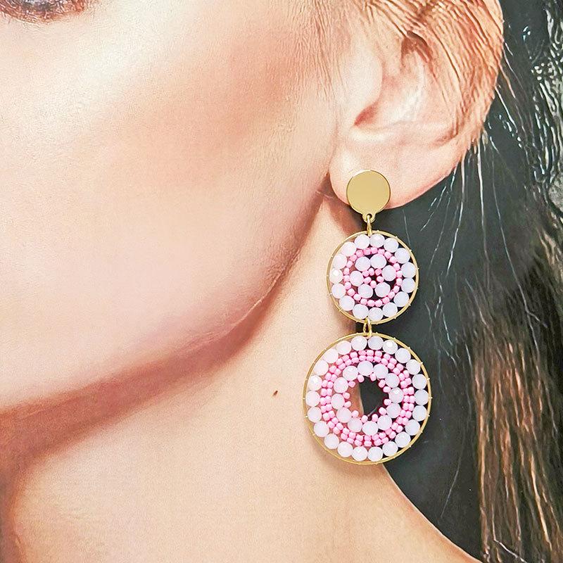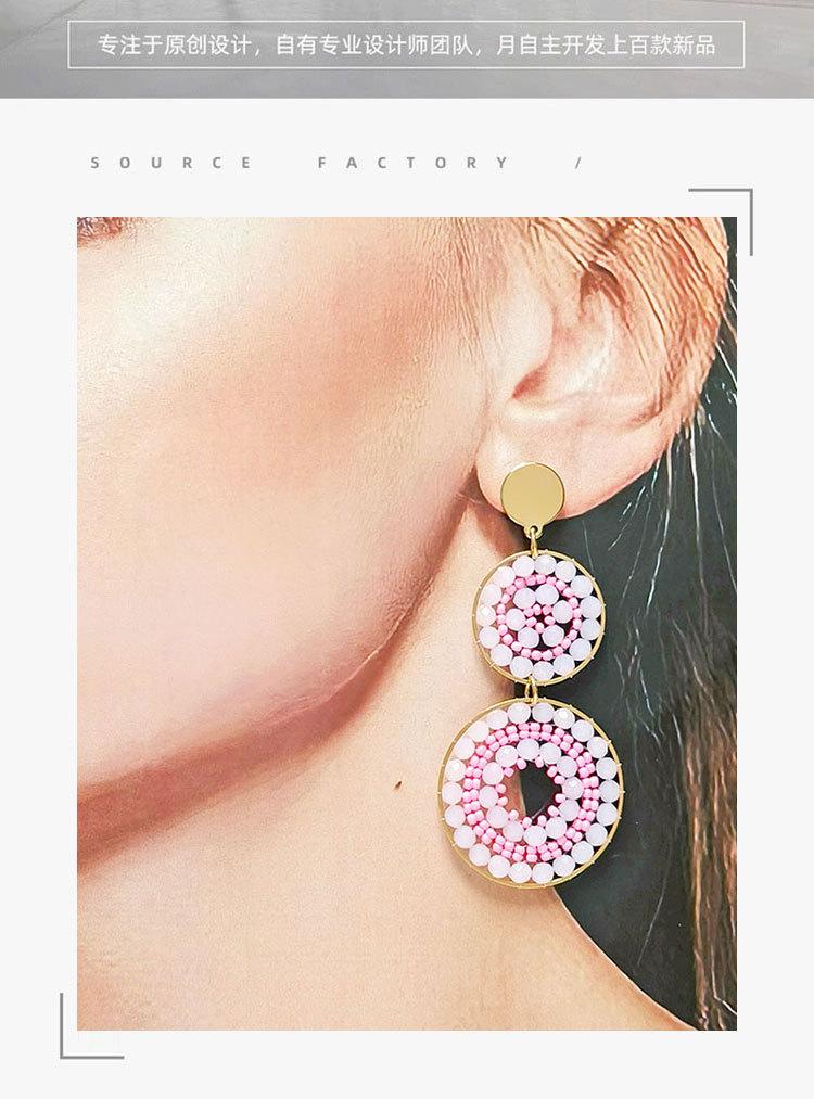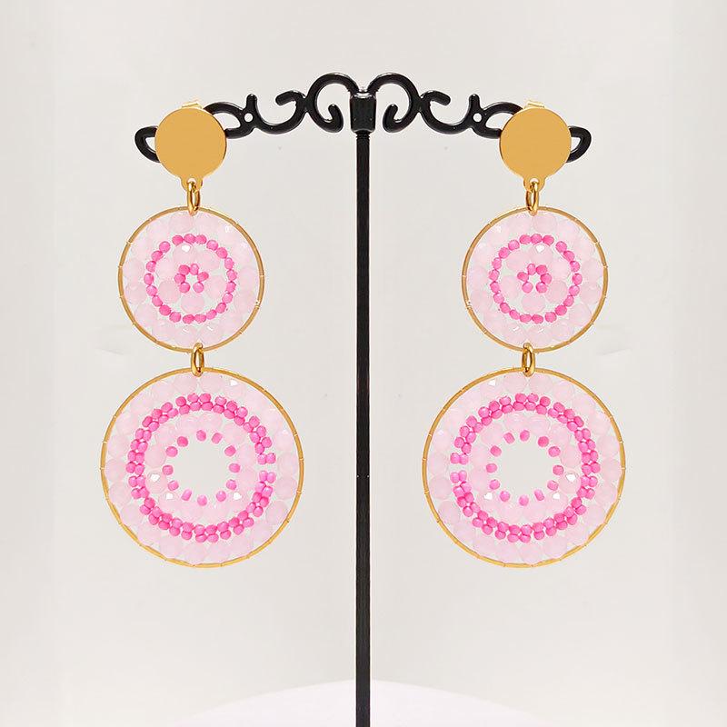Pendientes largos de cuentas rosas Pendientes de verano de alta gama Pendientes bohemios europeos y americanos hechos a mano Suministro de pendientes