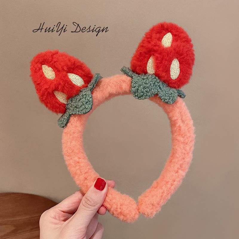 Diadema de fresa tridimensional con diseño de chica famosa de Internet, diadema con diseño de dulce Mori, banda para el cabello para lavarse la cara y maquillarse.