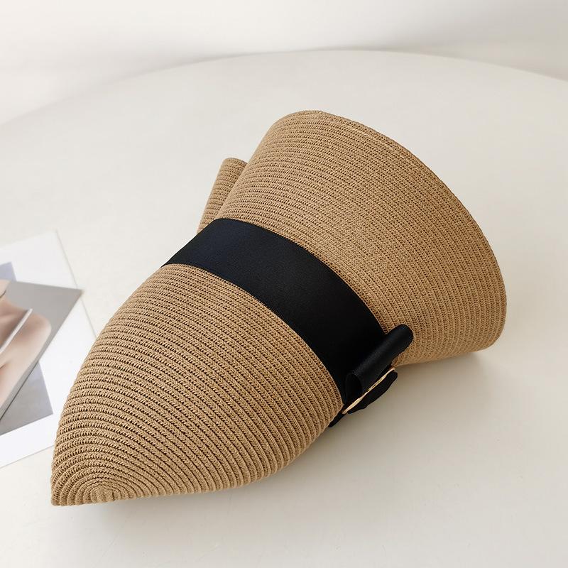 Sombrero de paja de cabeza grande estilo japonés para mujer verano protección solar sombrero de sol estilo Hepburn vacaciones junto al mar sombrero de playa plegable moderno