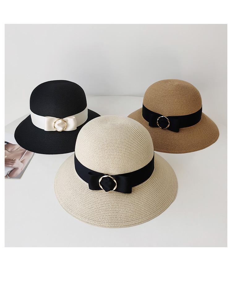 Sombrero de paja estilo Hepburn para mujer, estilo coreano, de verano, a la moda, para pescador, ideal para vacaciones en la playa, protección solar, sombrero de playa, ideal para mareas.