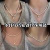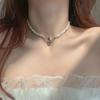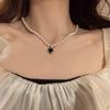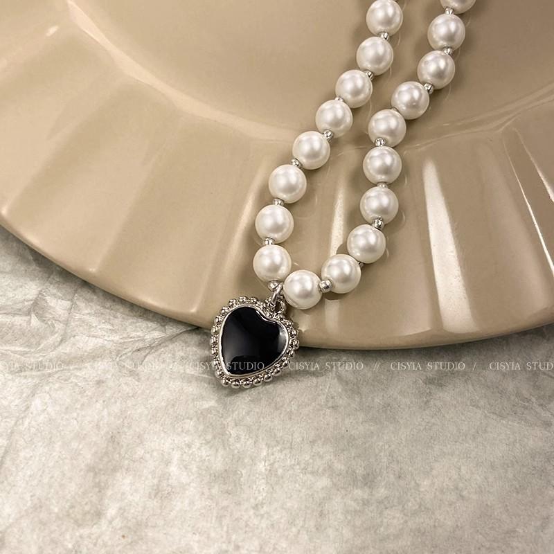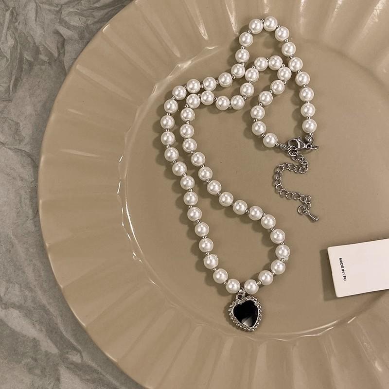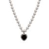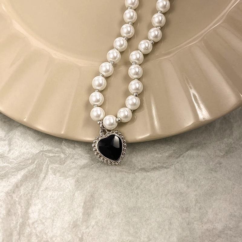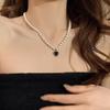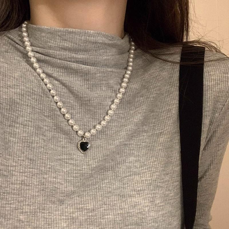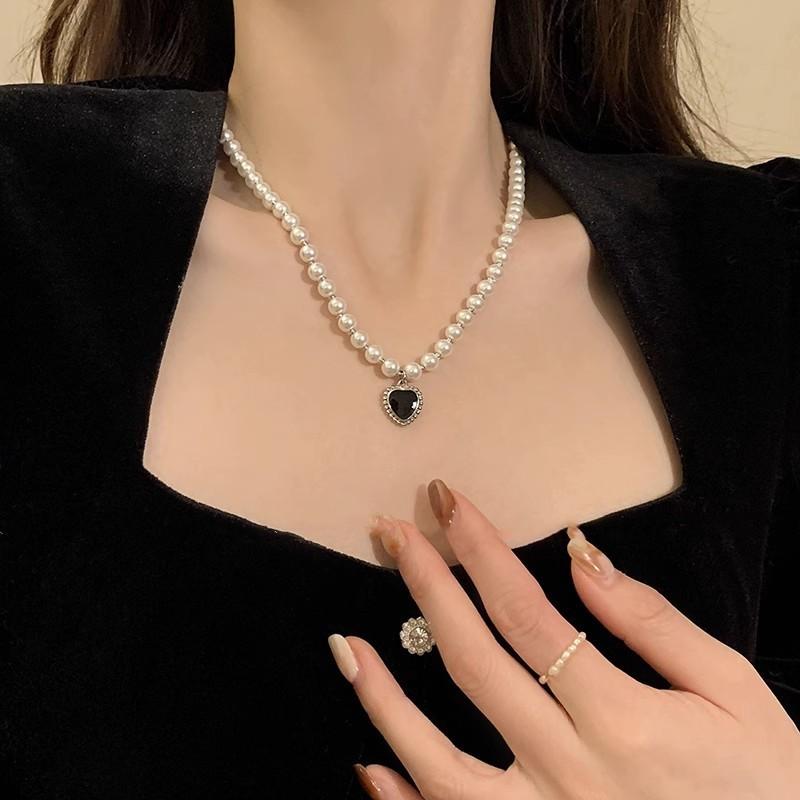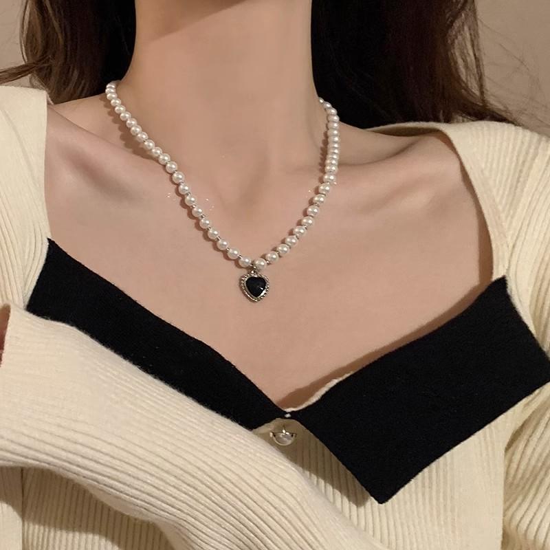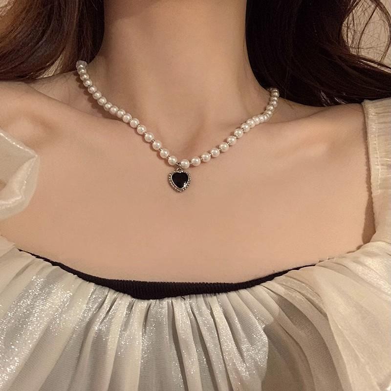 Collar de perlas vintage de lujo ligero para mujer, estilo moderno, de alta gama, con diseño combinable, con colgante de amor negro, cadena para clavícula.