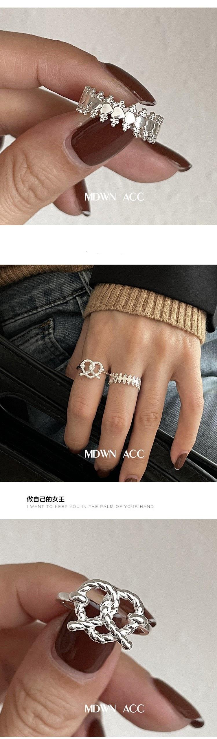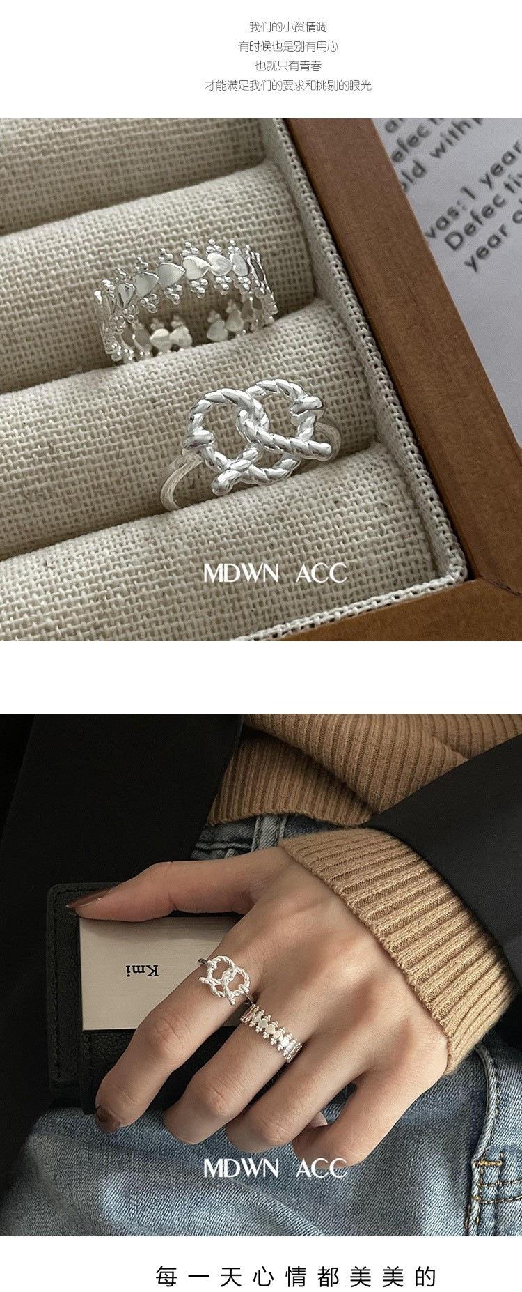 Anillo de amor con giro hueco para mujer, sencillo, a la moda, combinable, elegante, S925, anillo abierto chapado en plata, anillo para dedo.