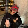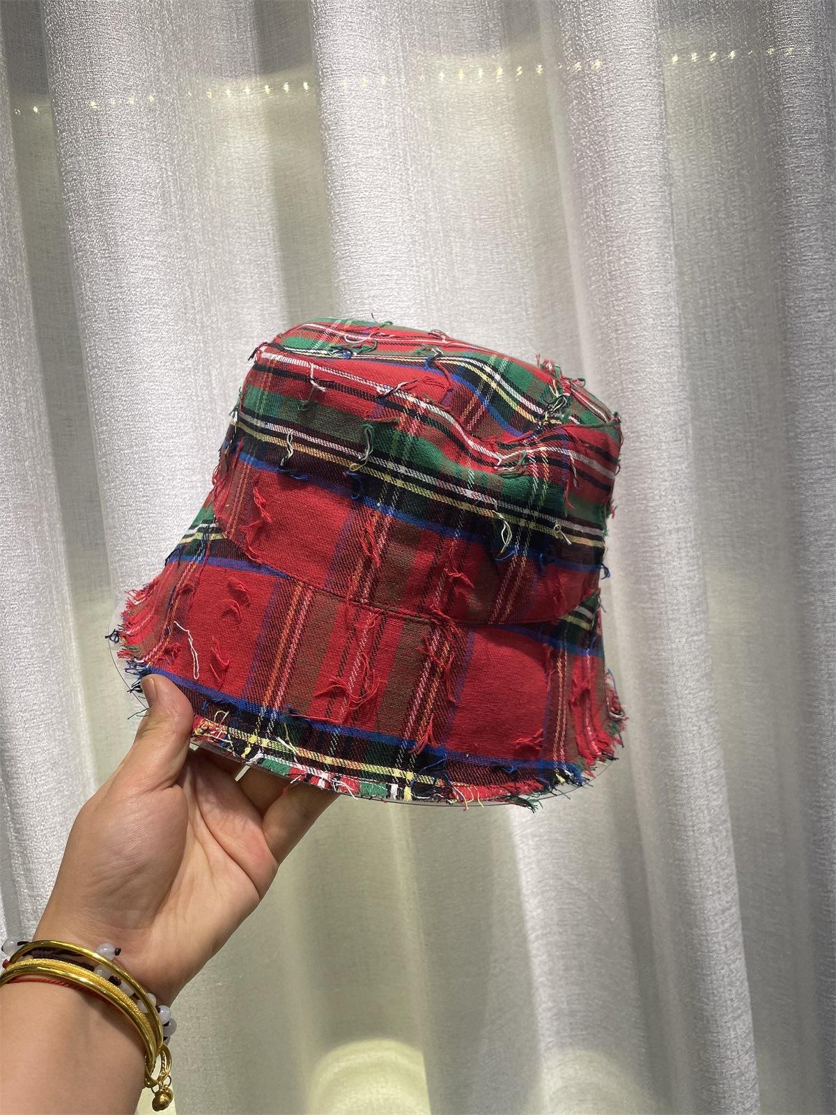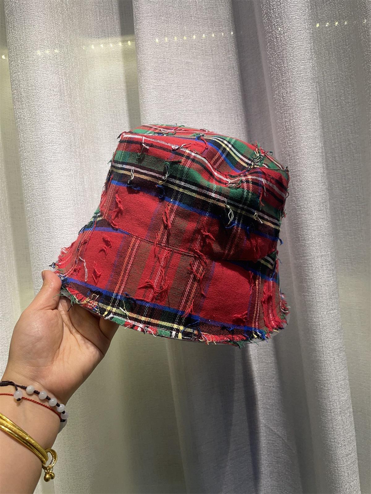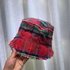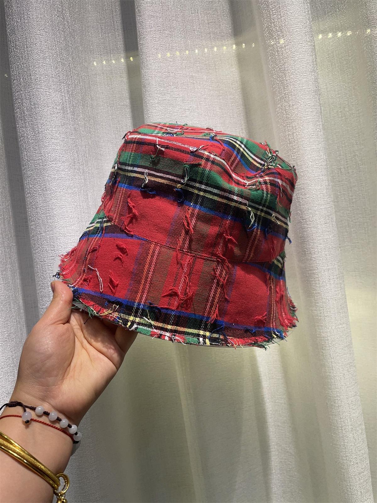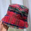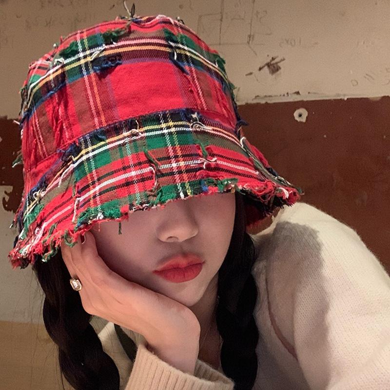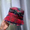 Sombrero de pescador a cuadros rojos para mujer, primavera y verano, estilo coreano, diseño de nicho, sombrero de lavabo retro, sombrero para el sol pequeño e informal con cara de cara, moda