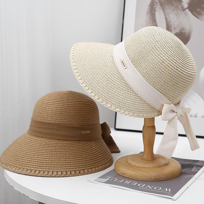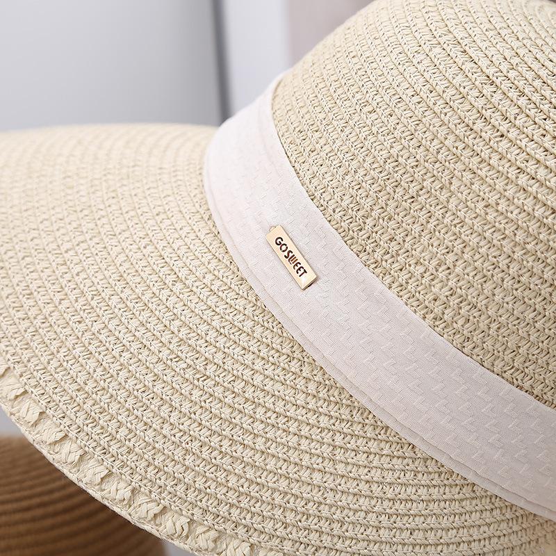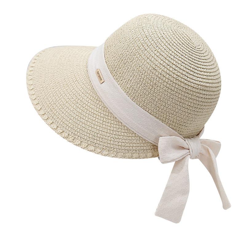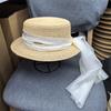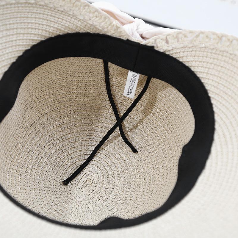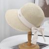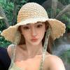 Sombrero de Paja con Protección Solar Sombrero de Paja para Vacaciones en la Playa Nuevo de Primavera y Verano Decorativo con Lazo de Encaje Sombrero de Ala Ancha