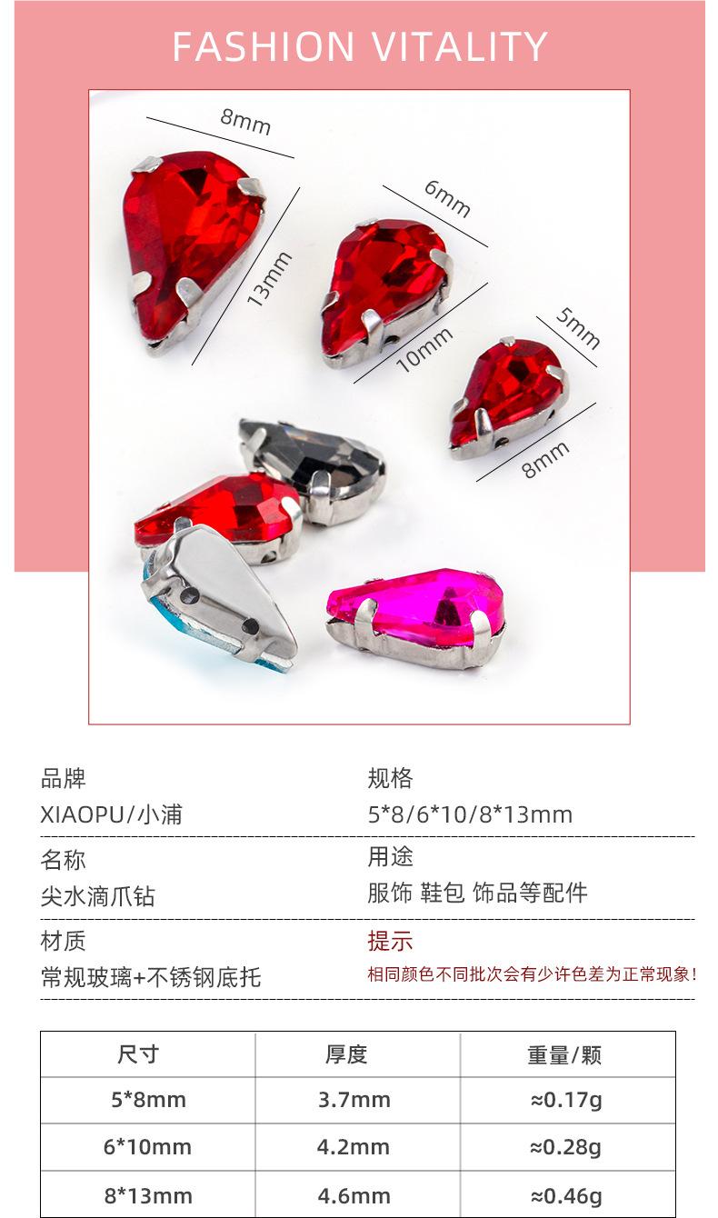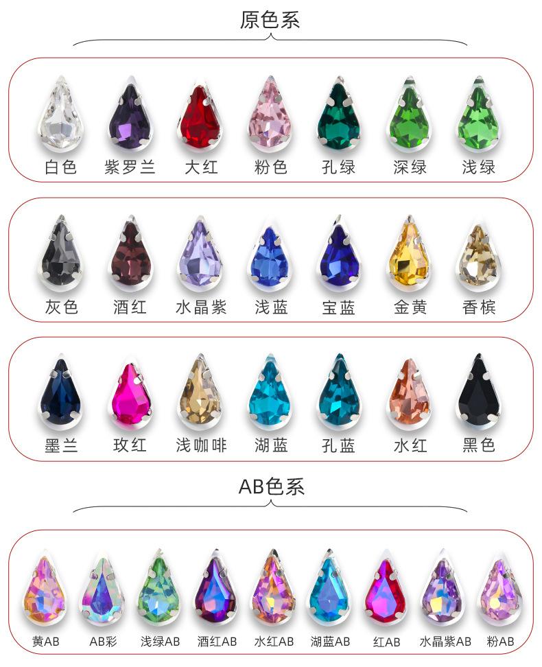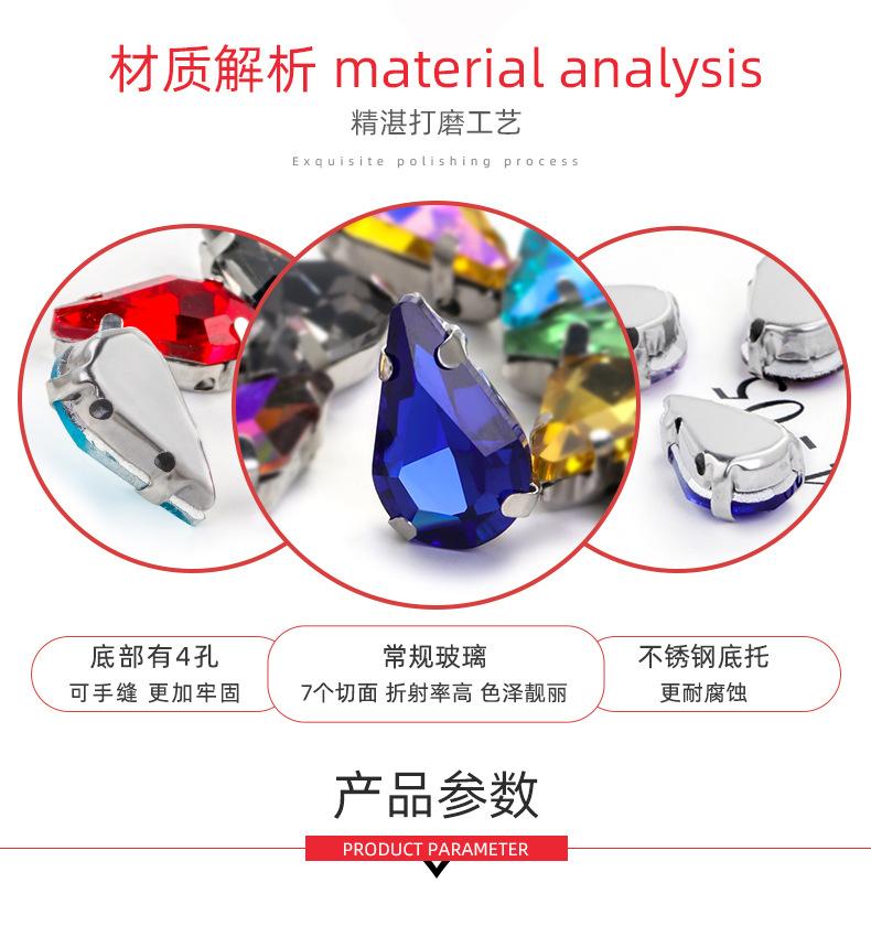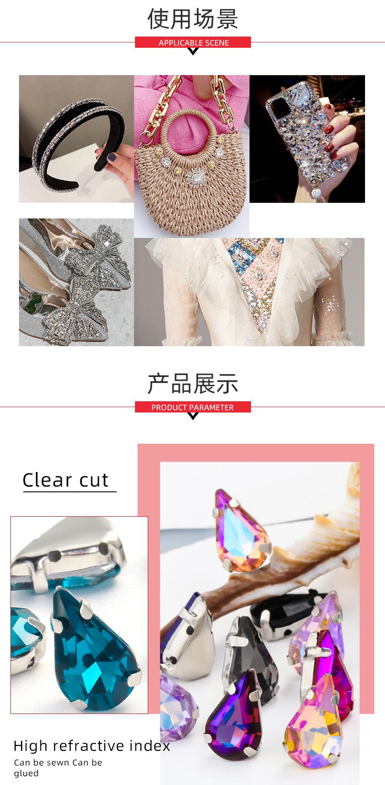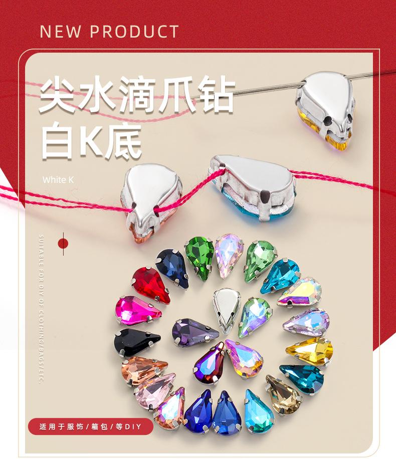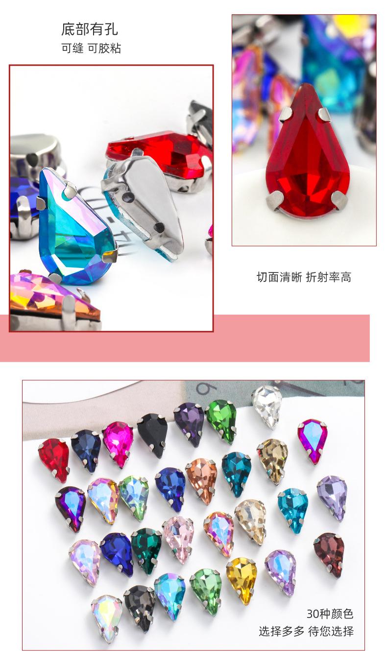 Yiwu Venta al por Mayor Gota de Agua Puntiaguda Taladro de Garra de Vidrio Accesorios de Joyería para Teléfono Móvil Accesorios de Ropa Semillas de Melón con Agujeros Taladro de Vidrio Cosido a Mano