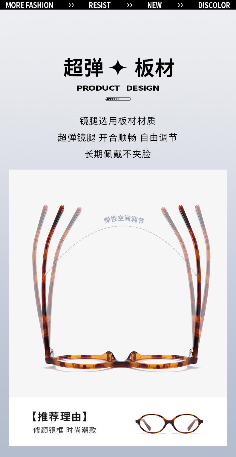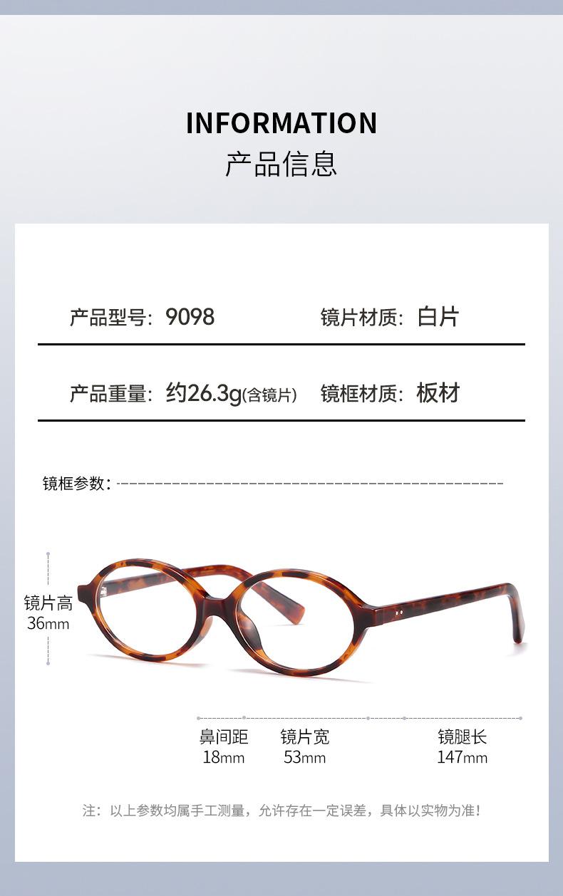 Gafas de Nerd de Hoja Montura Retro Carey Ovalada Montura Pequeña Celebridad de Internet Maquillaje Sencillo Se Pueden Equipar con Montura para Gafas de Miopía 9098