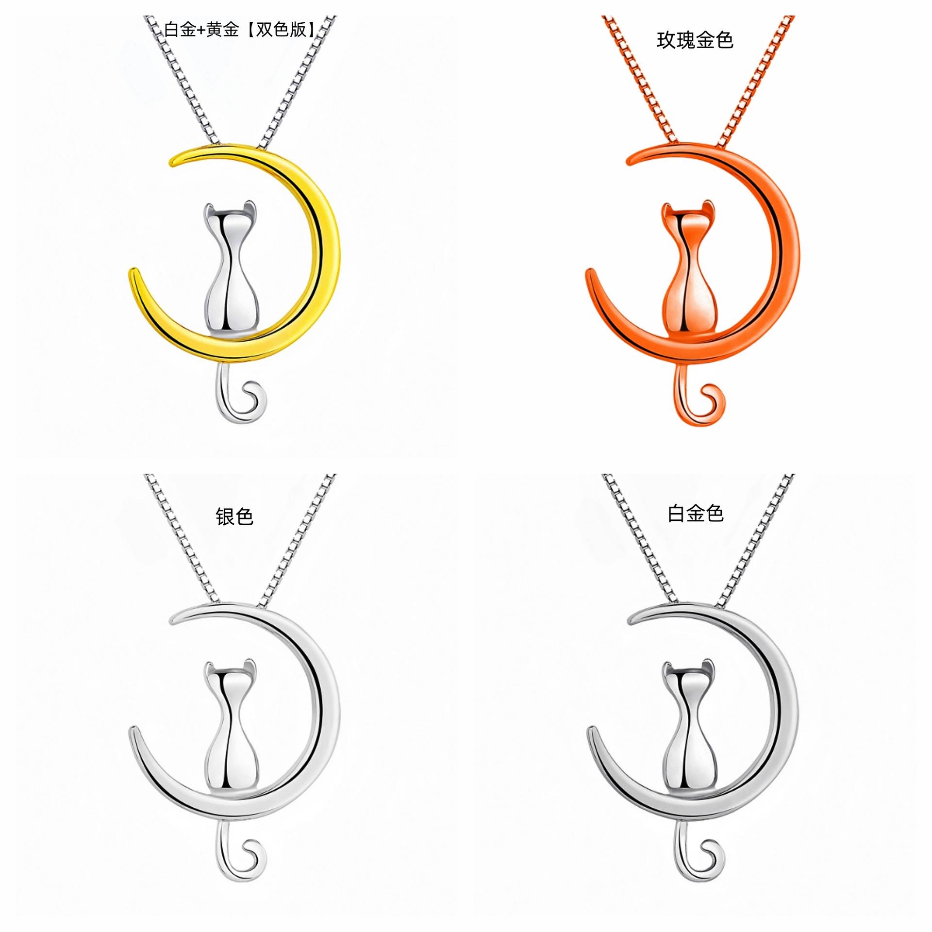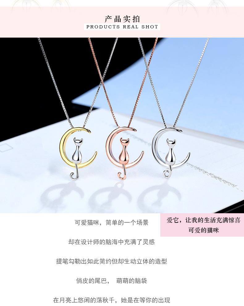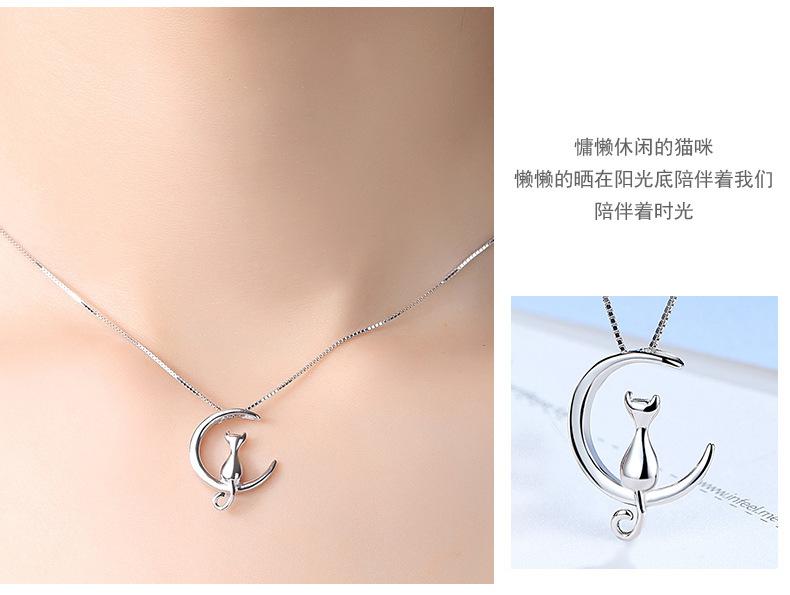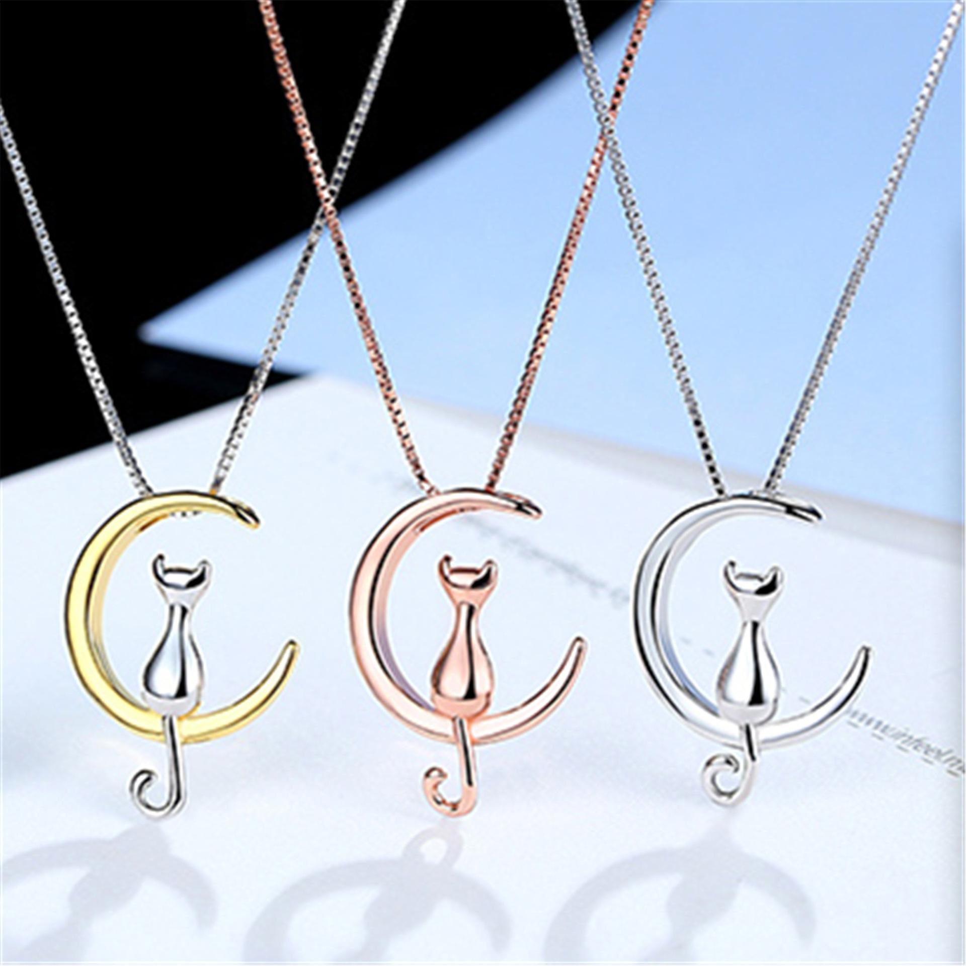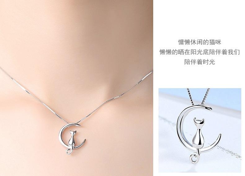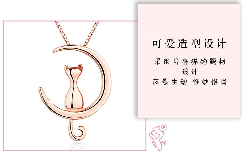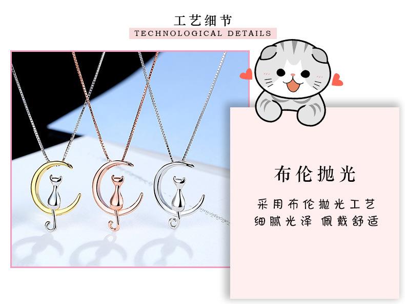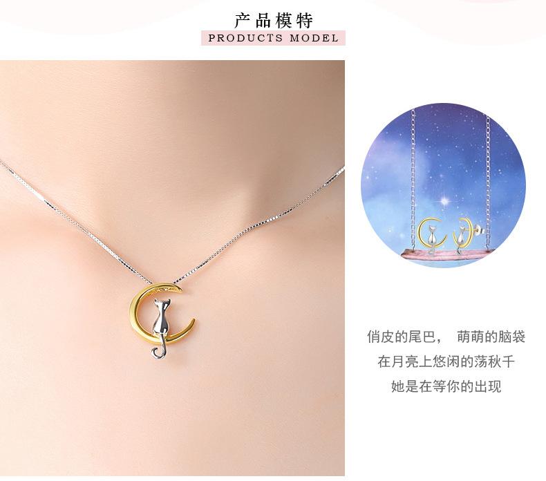 Versión Coreana Collar Creativo de Venta Caliente Collar de Gato Luna Cadena Clavícula Colgante de Gato Elegante y Lindo Femenino Estilo Bosque Dropshipping