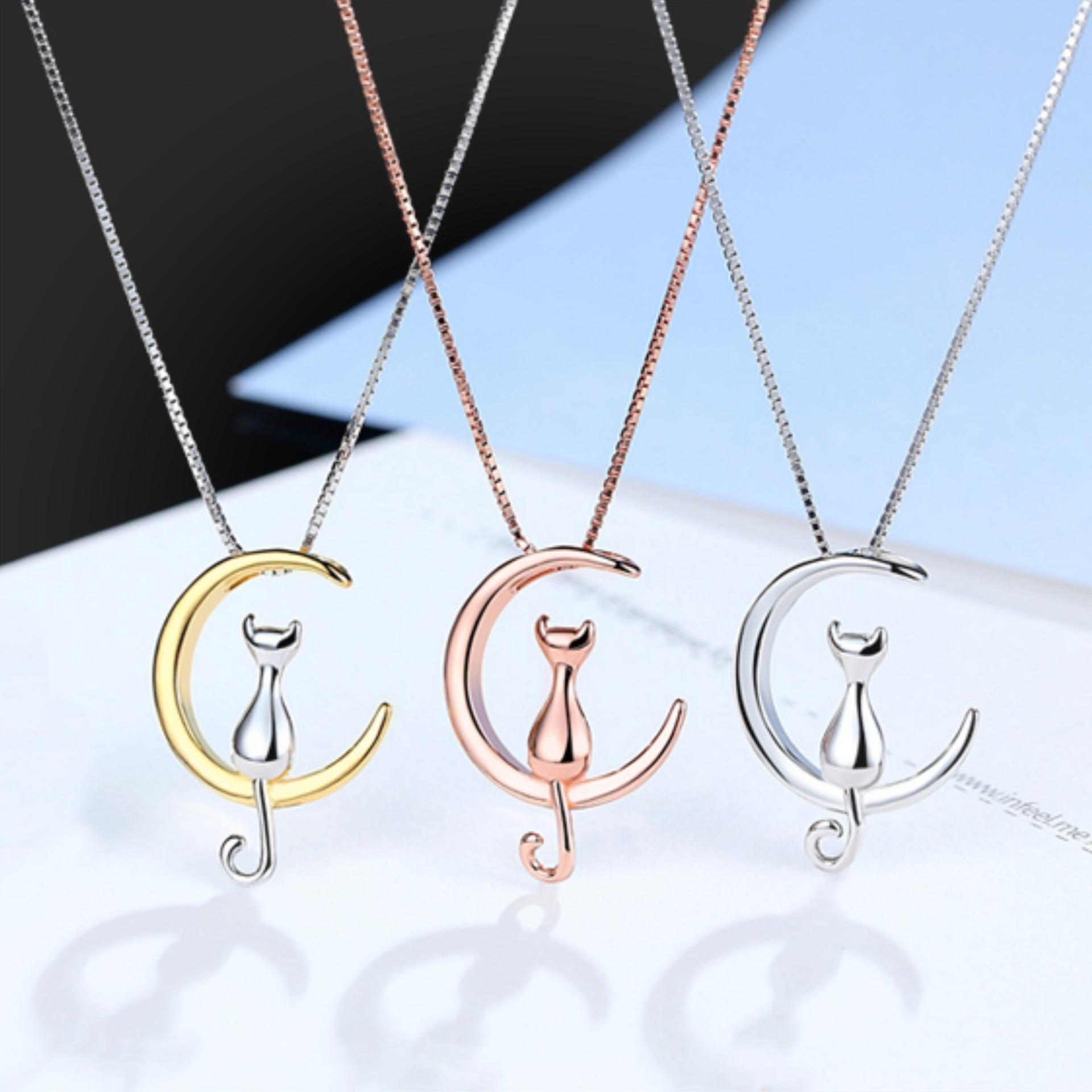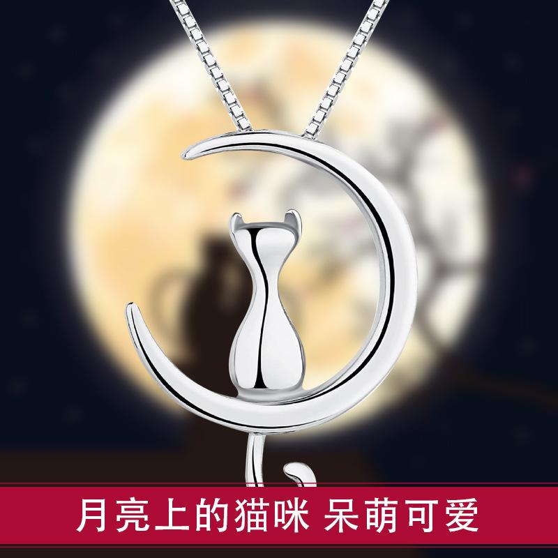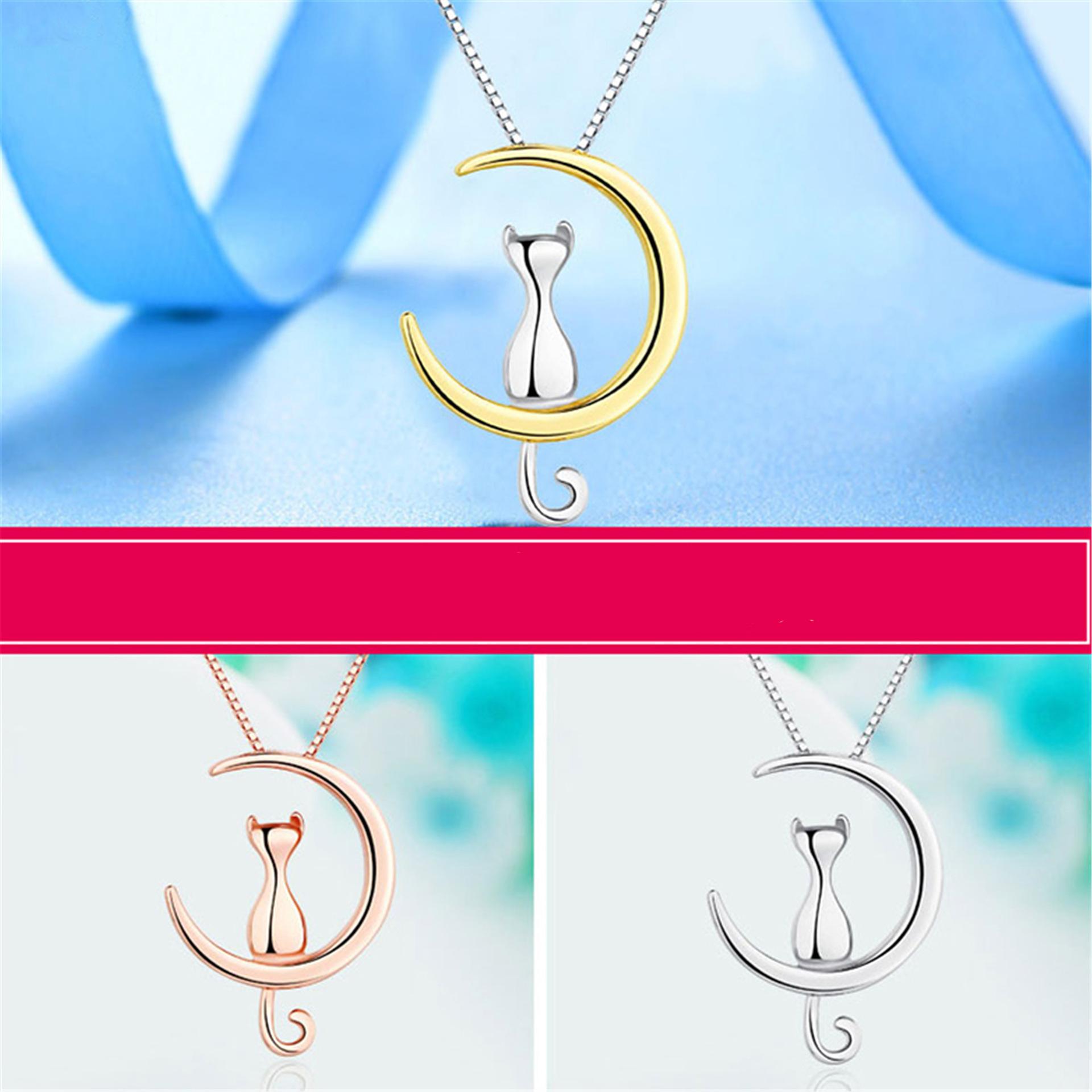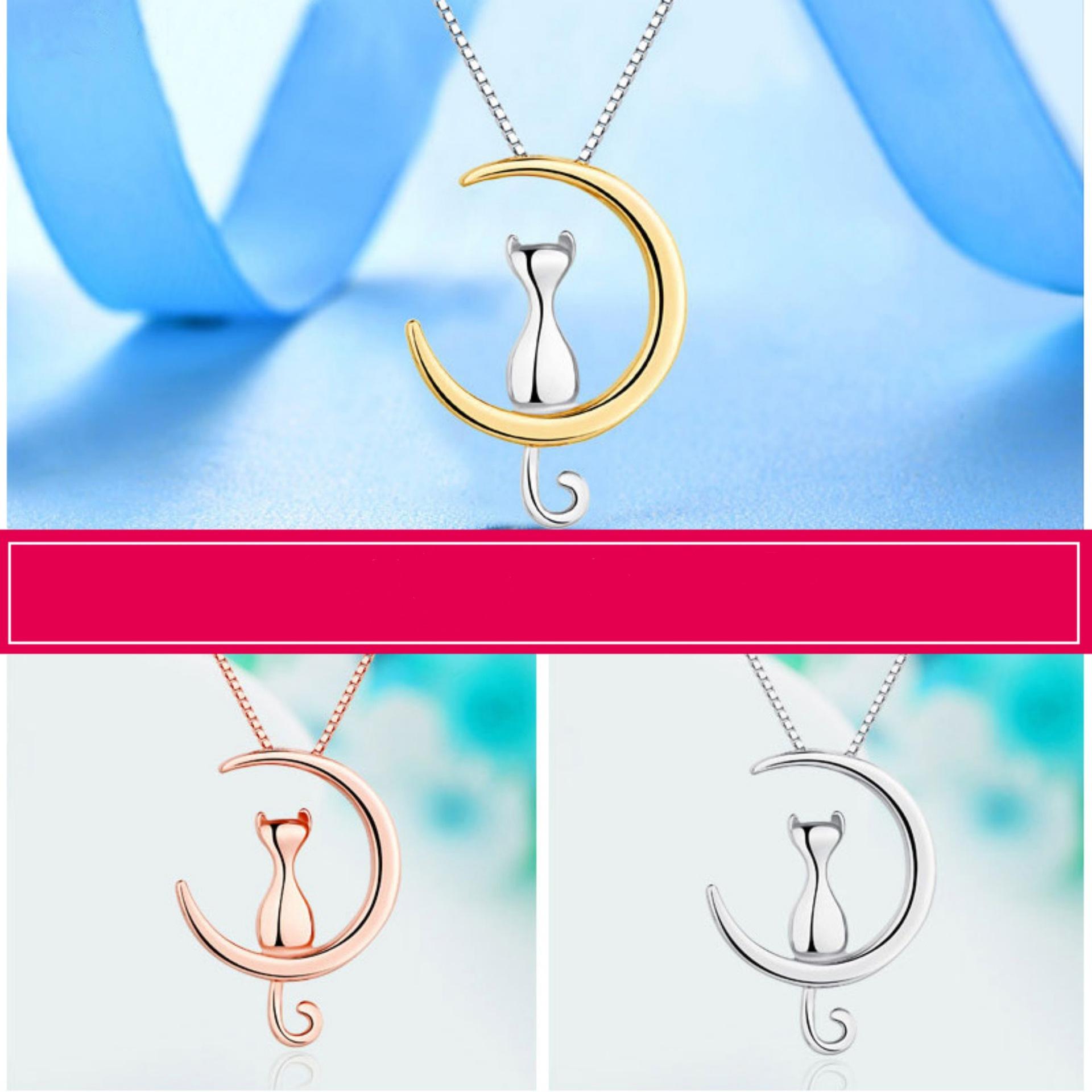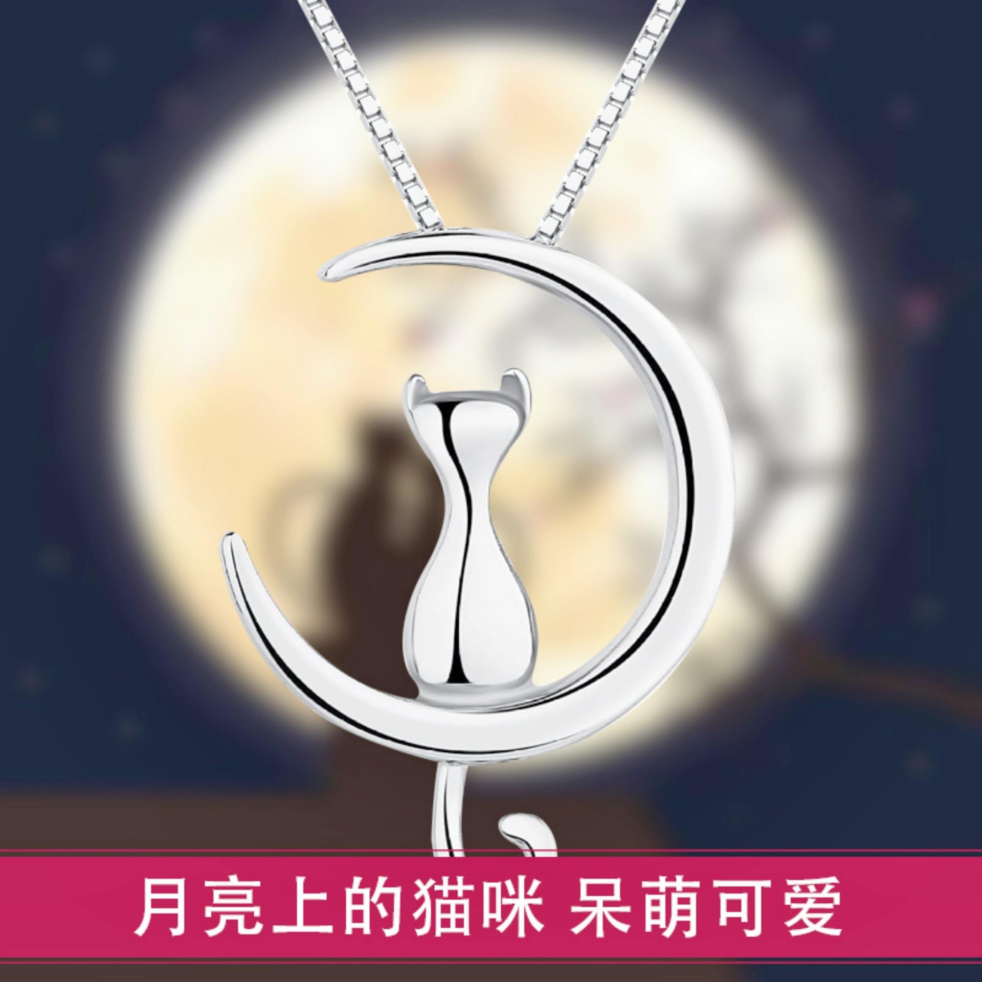Versión Coreana Collar Creativo de Venta Caliente Collar de Gato Luna Cadena Clavícula Colgante de Gato Elegante y Lindo Femenino Estilo Bosque Dropshipping
