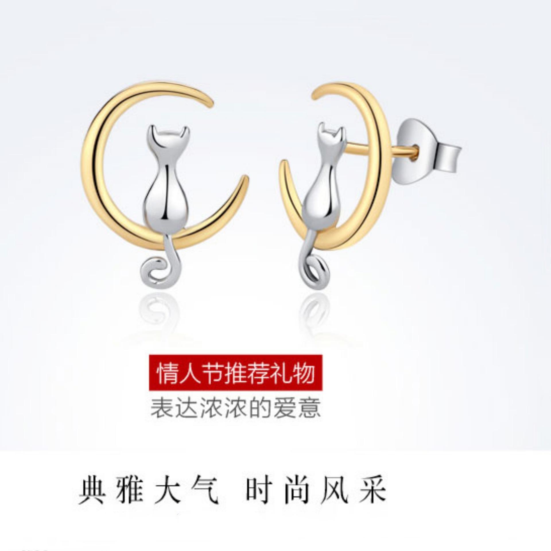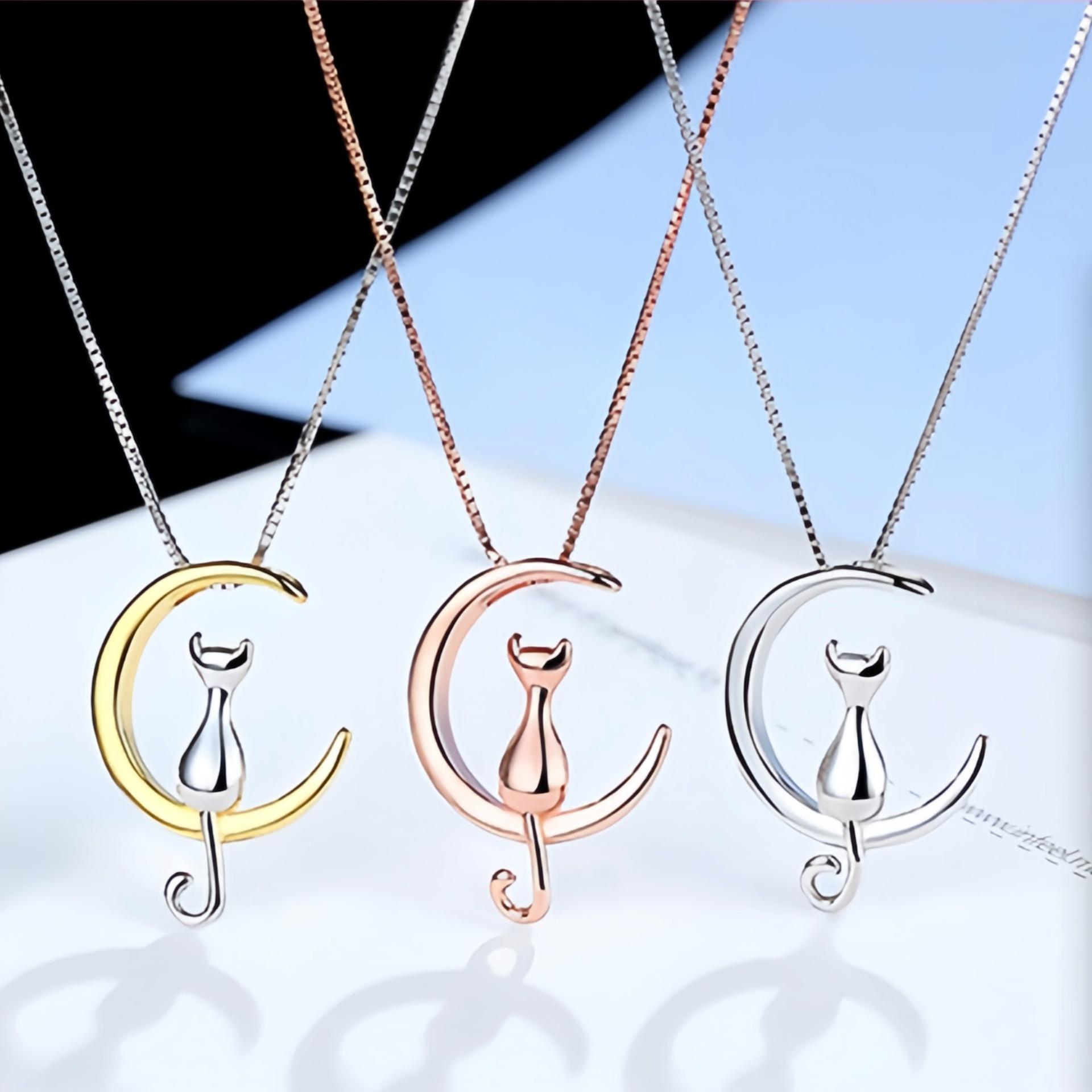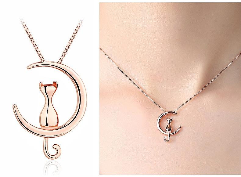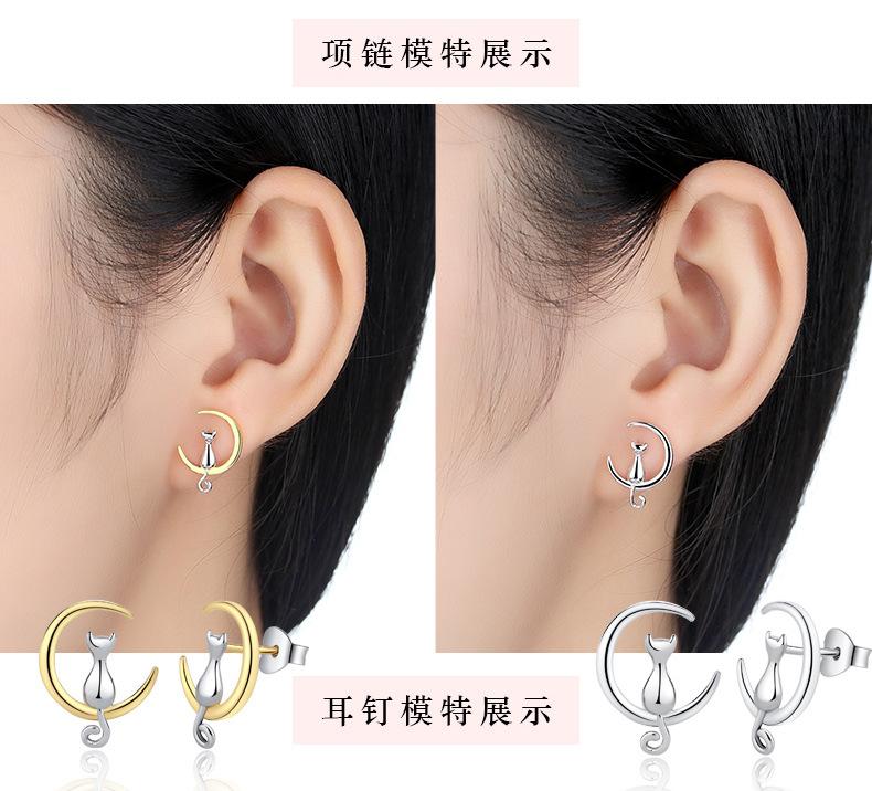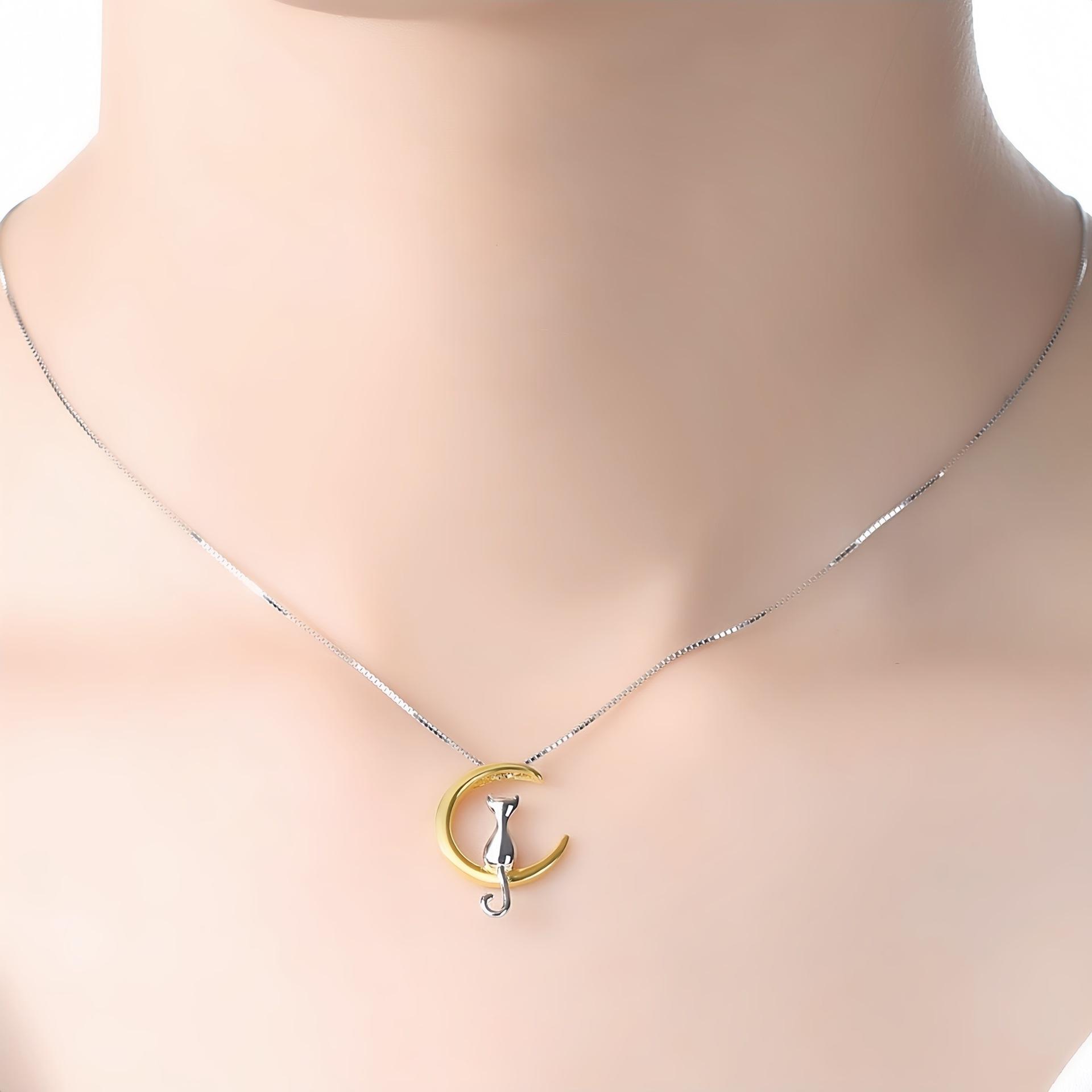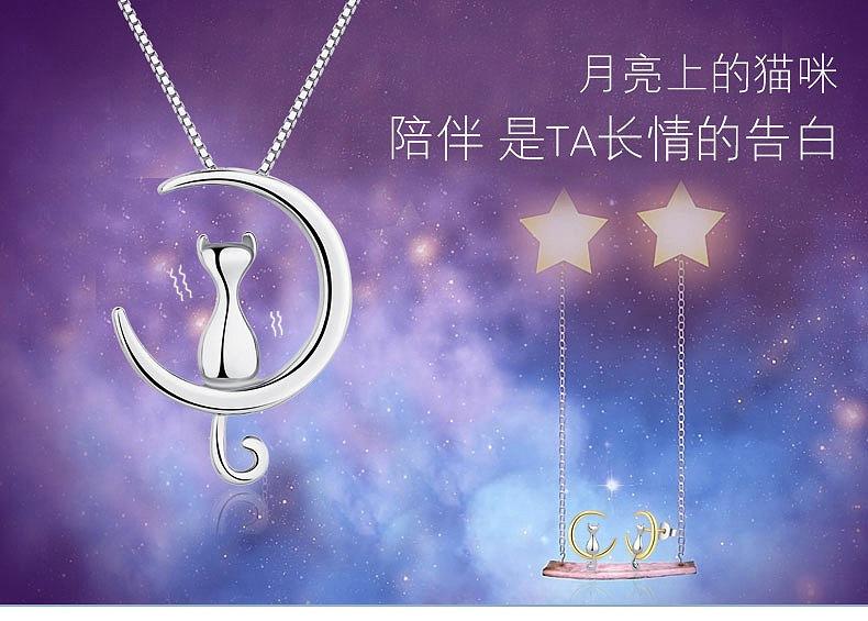 Versión Coreana Collar Creativo de Venta Caliente Collar de Gato Luna Cadena Clavícula Colgante de Gato Elegante y Lindo Femenino Estilo Bosque Dropshipping