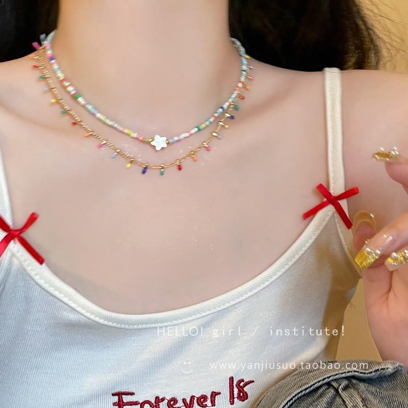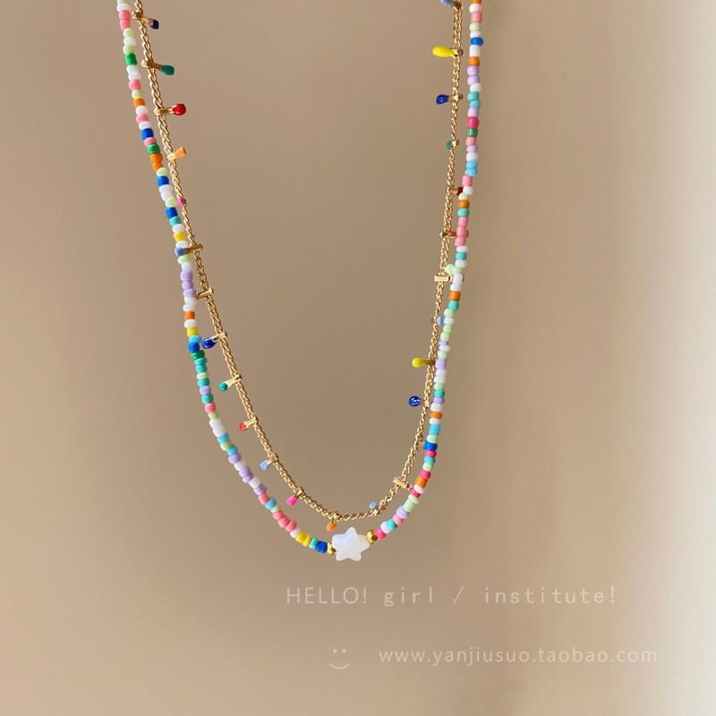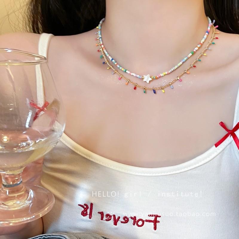 Collar de cuentas de estrella de circón de color dopamina para mujer, cadena de clavícula de doble capa, cadena de collar de alta calidad, combina con todo