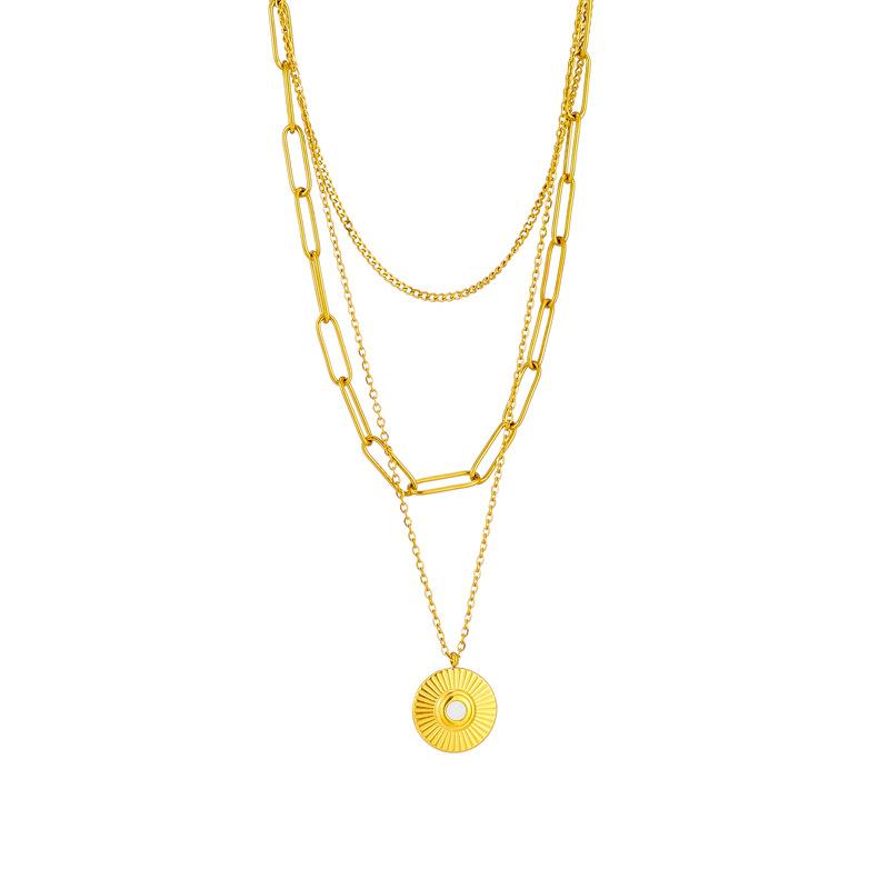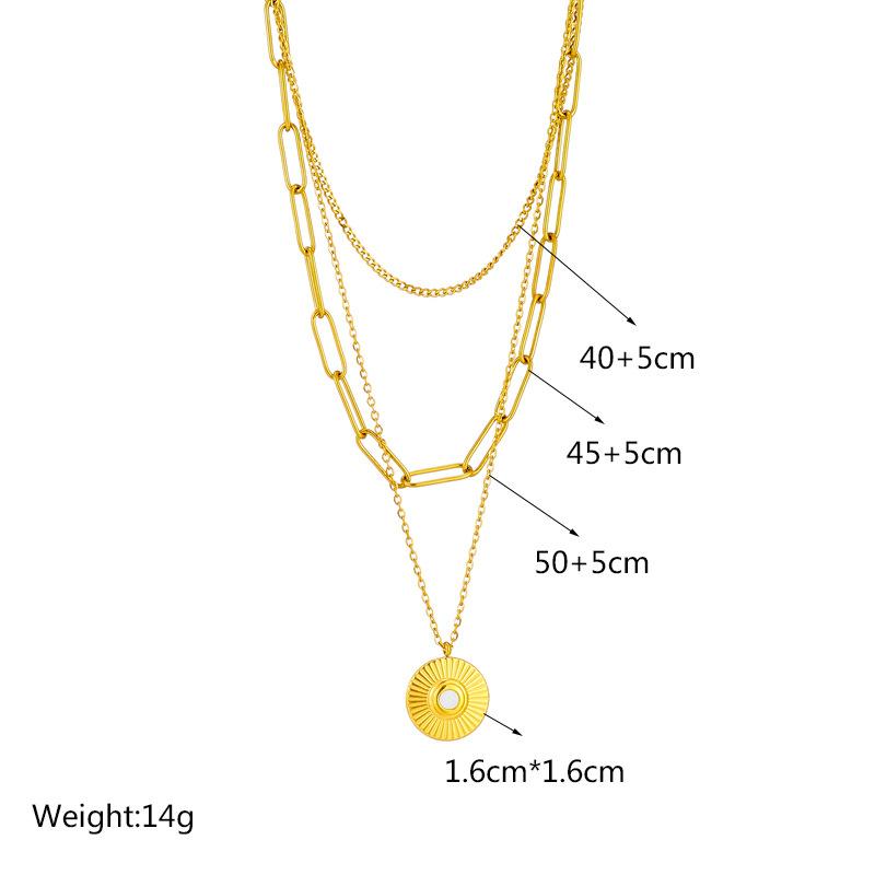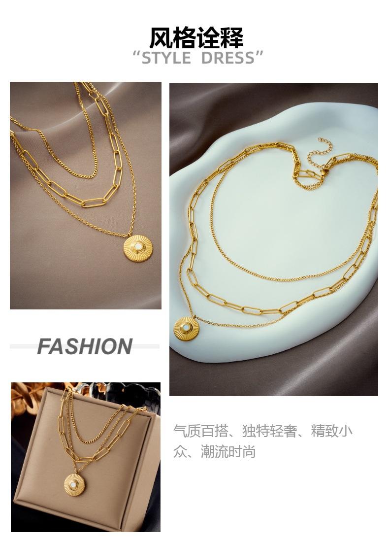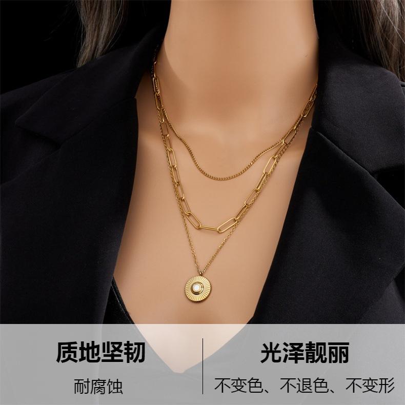 Moda Europea y Americana Diseño Nicho Elegante de Alta Gama Retro Estilo Frío Collar con Colgante Redondo Asimétrico Multicapa