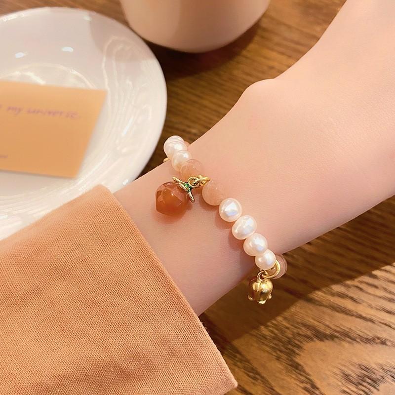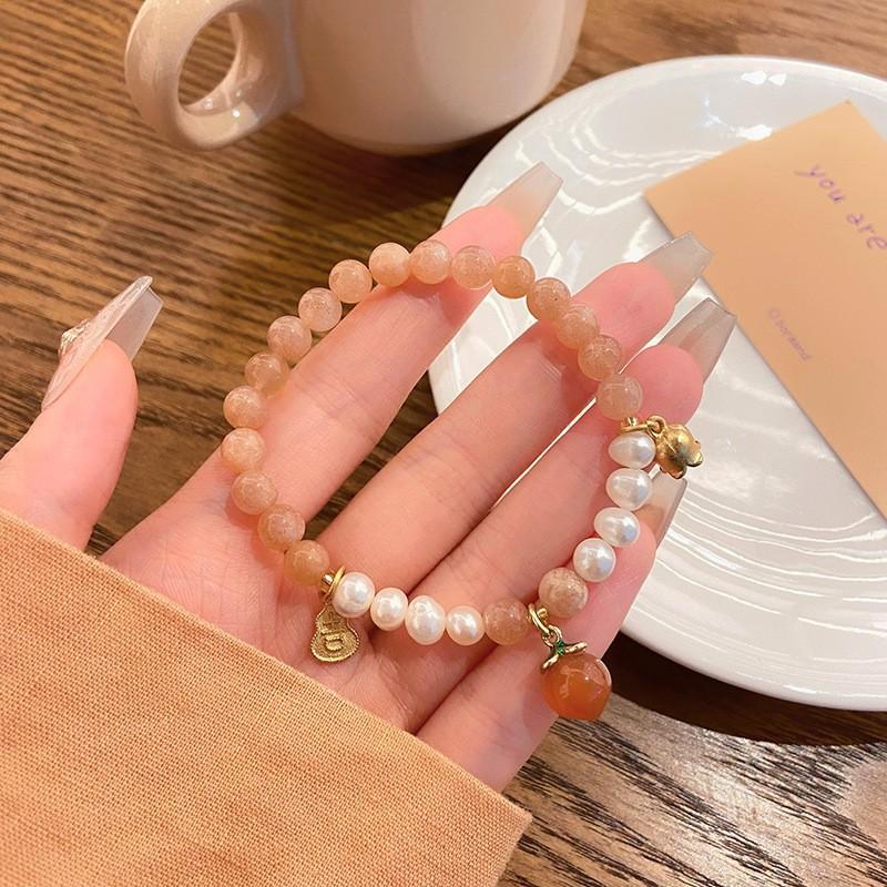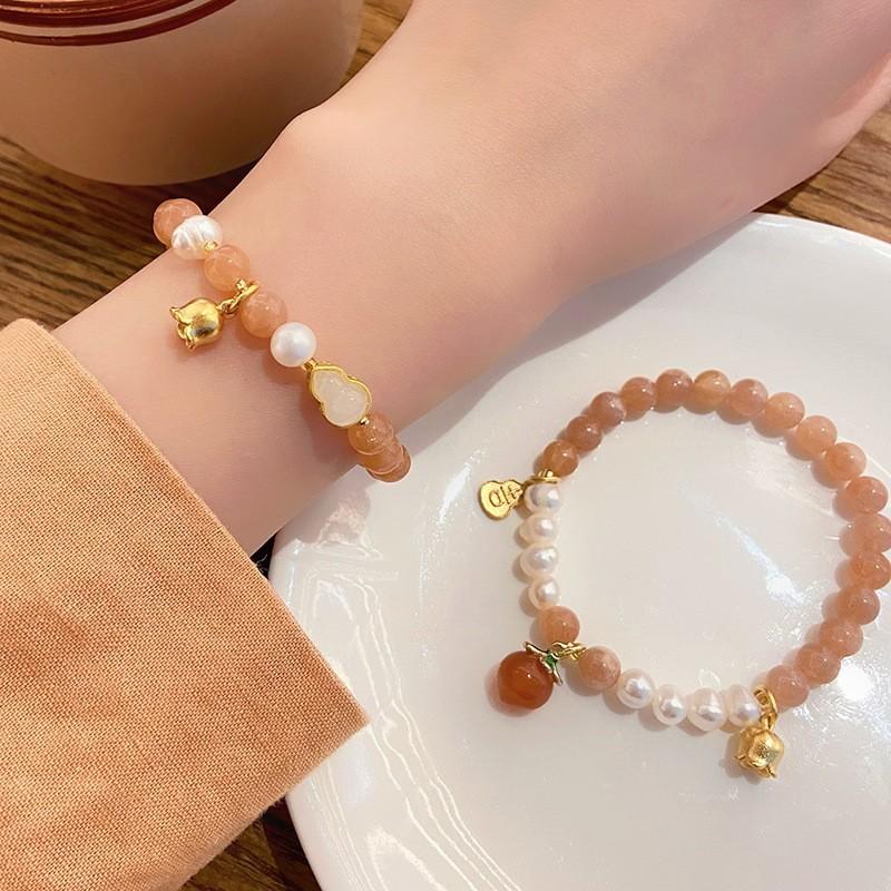 Pulsera creativa cultural de bendición del templo ~ Pulsera de piedra solar dulce y fresca de súper hada, pulsera de novias de melocotón