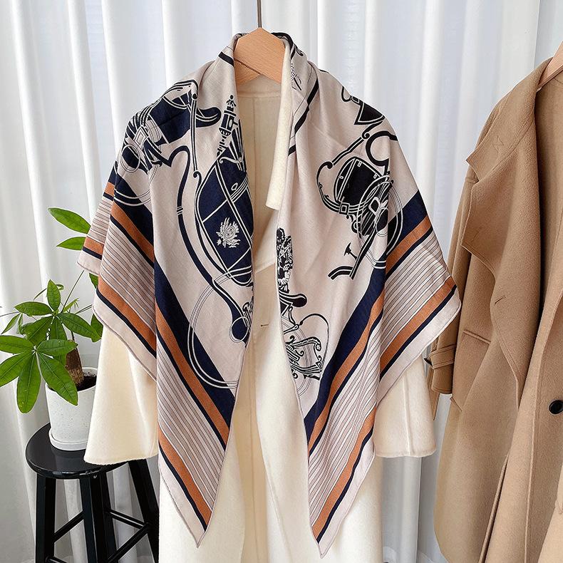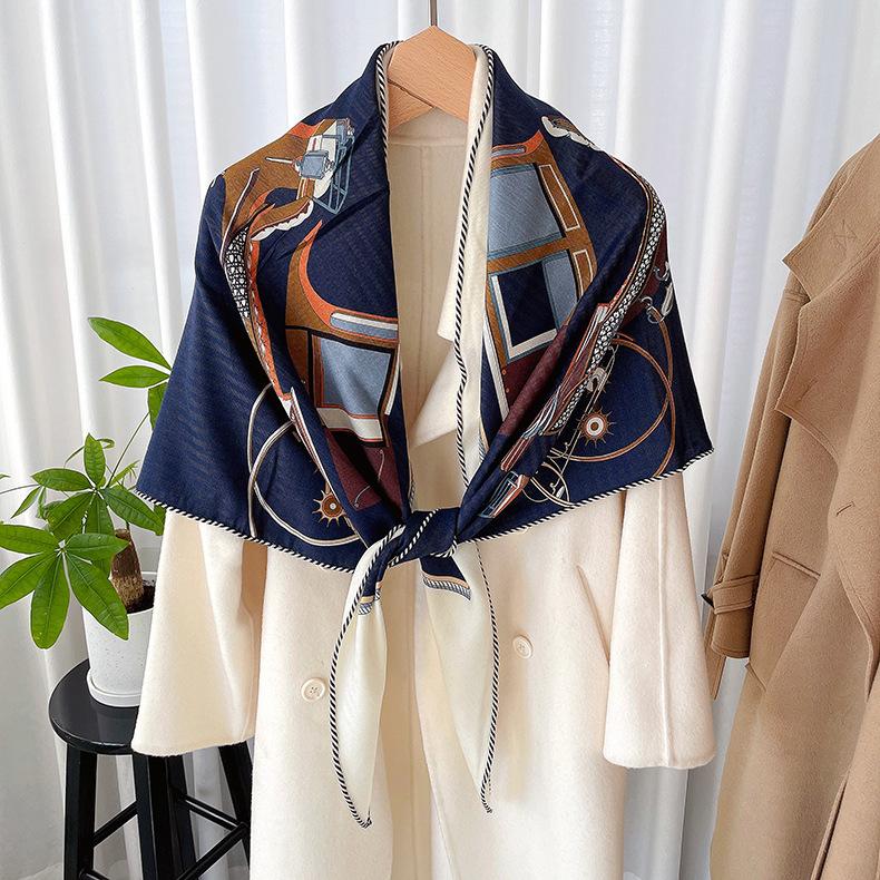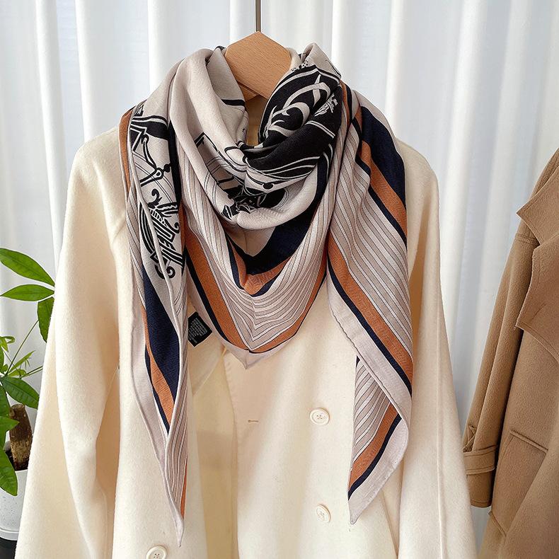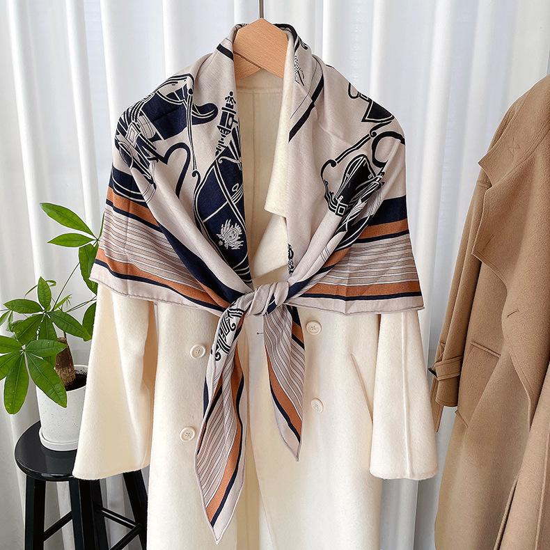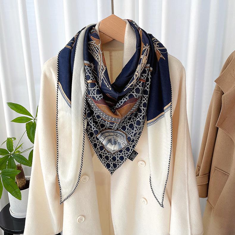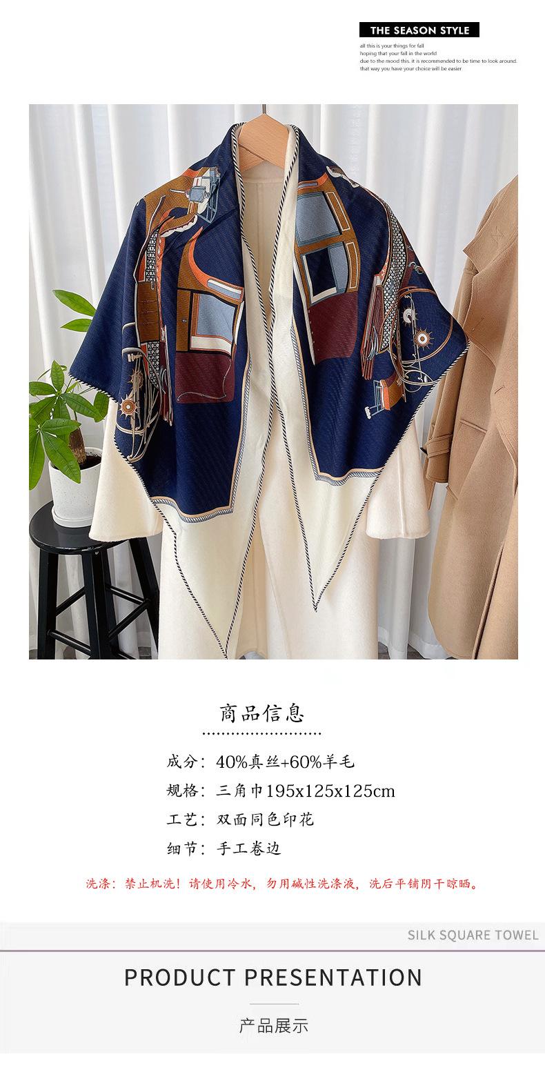 Bufanda triangular de moda de seda y lana de doble cara del mismo color, bufanda cálida de otoño e invierno, chal de oficina para mujer