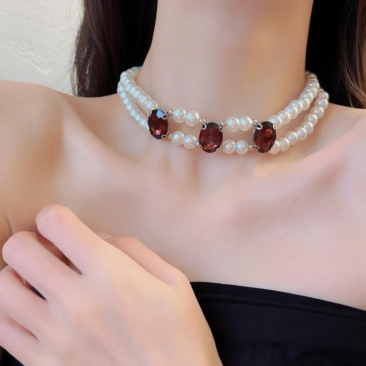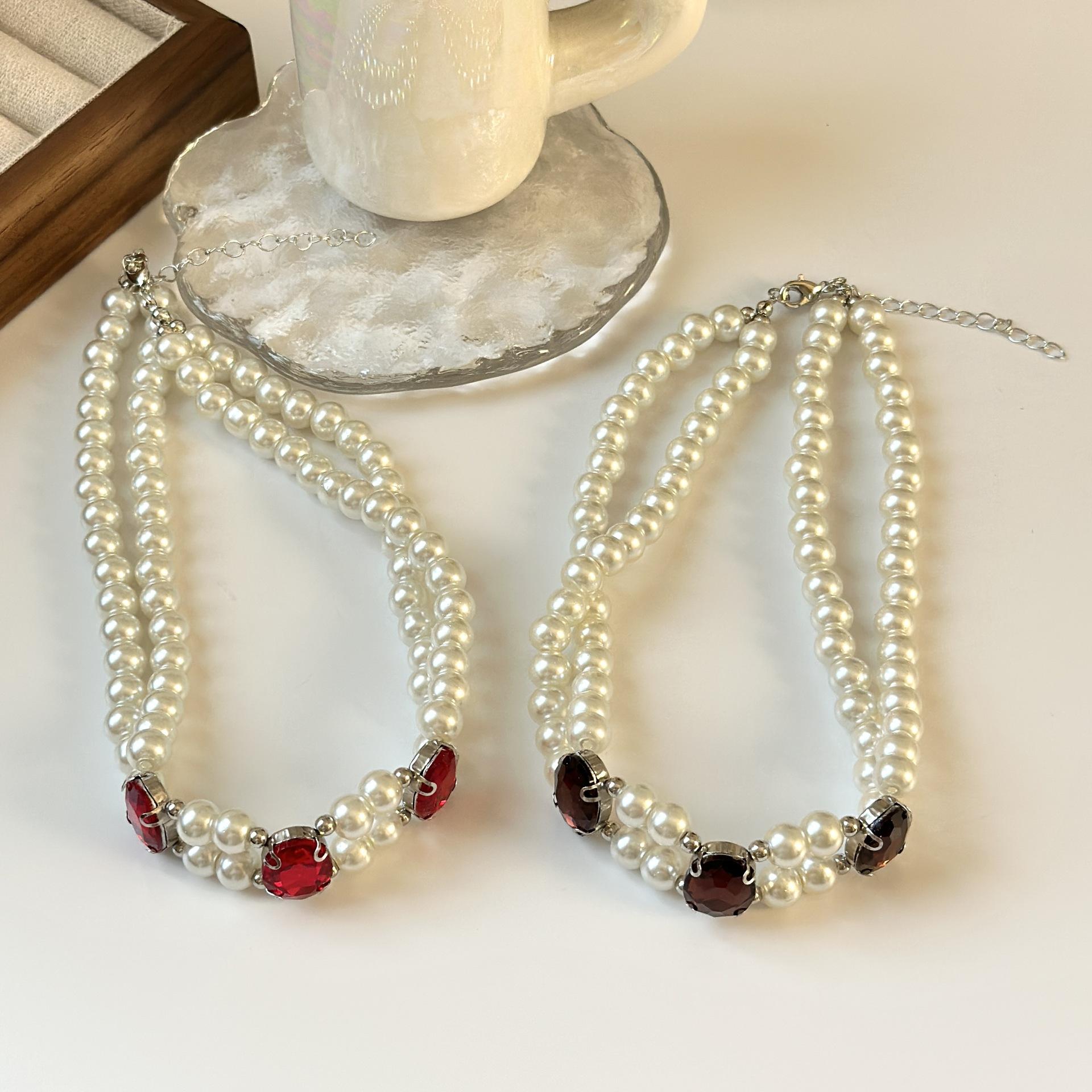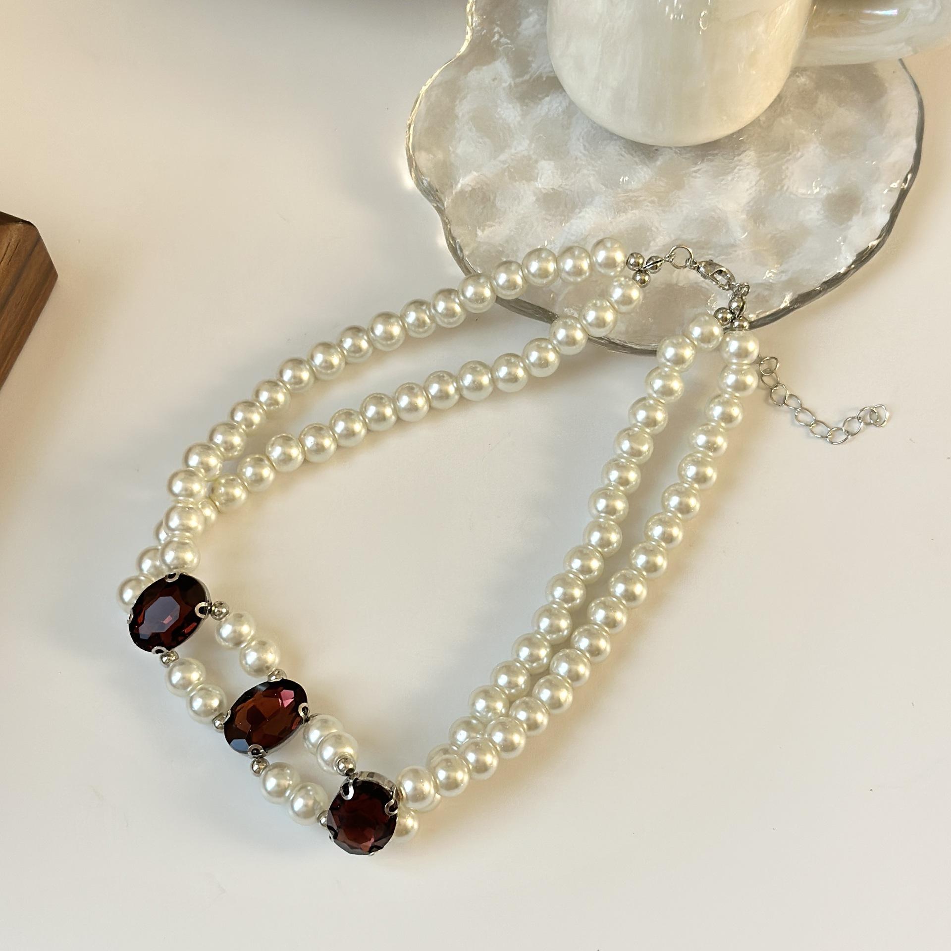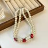 Collar de perlas de doble capa de lujo ligero, cadena de clavícula francesa retro de alta calidad, elegante cadena de suéter que combina con todo para mujeres