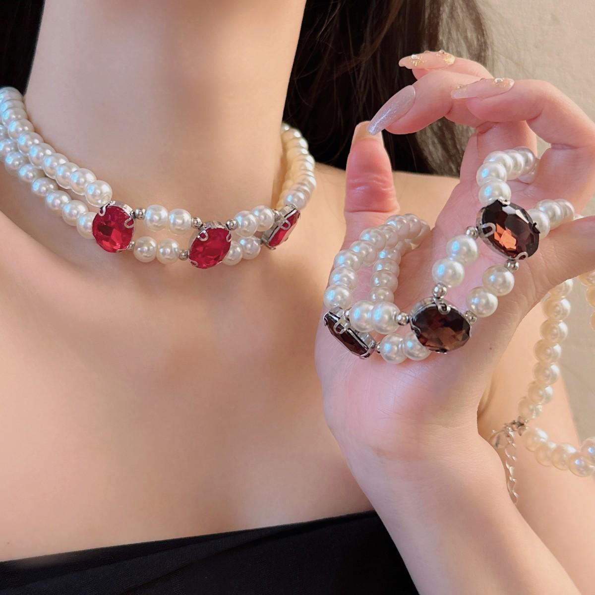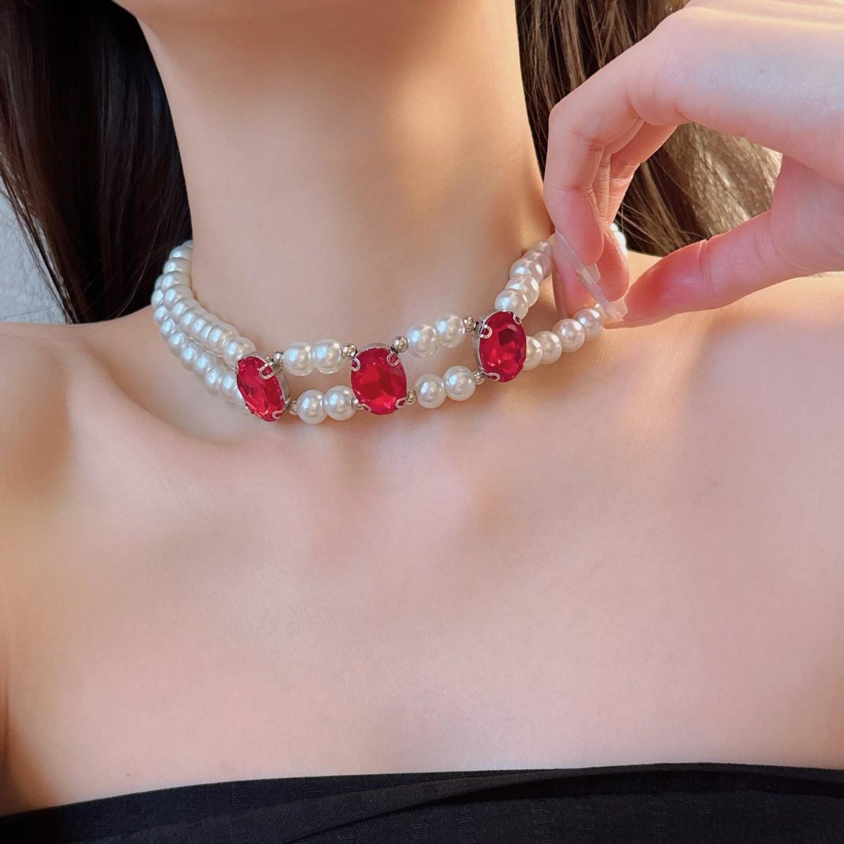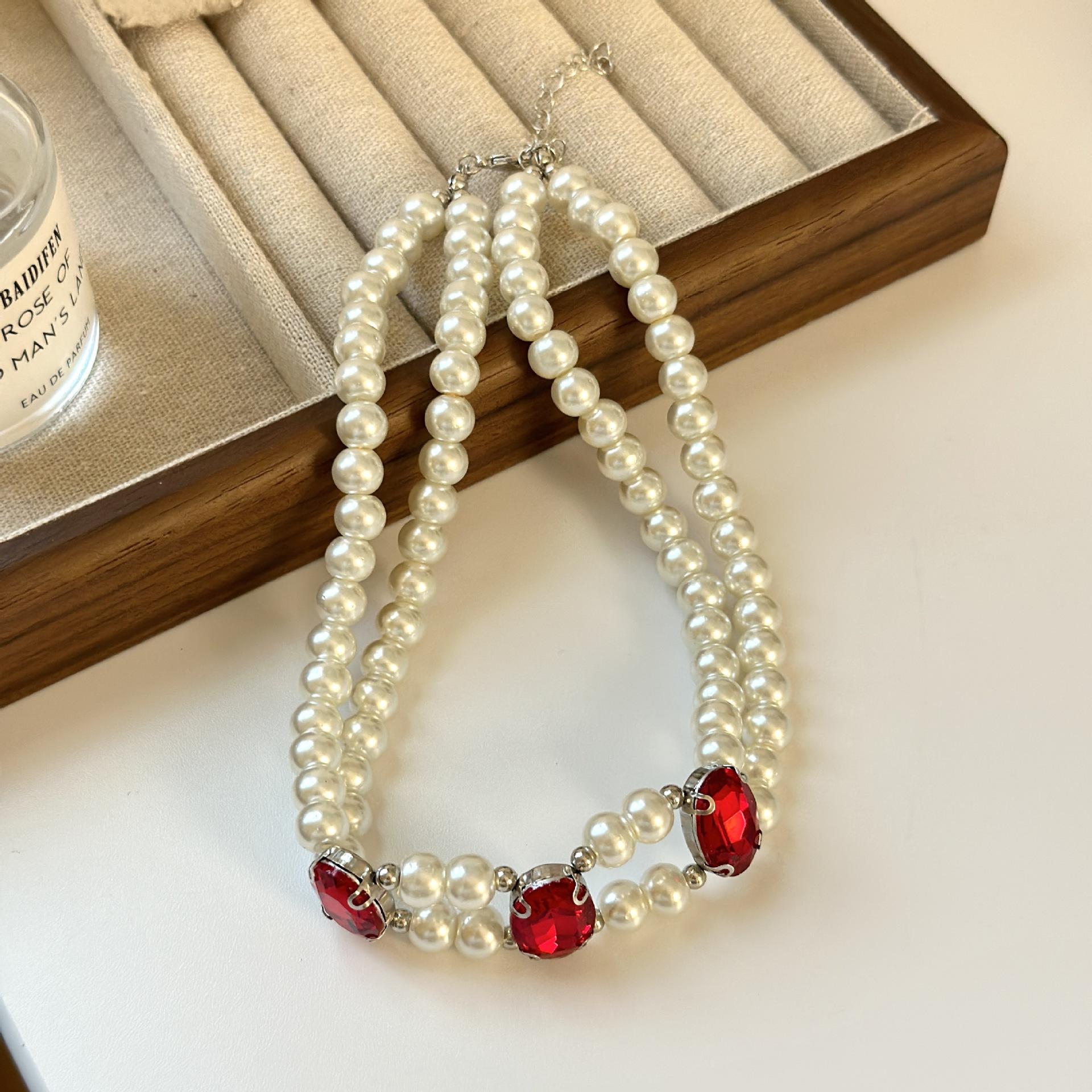 Collar de perlas de doble capa de lujo ligero, cadena de clavícula francesa retro de alta calidad, elegante cadena de suéter que combina con todo para mujeres