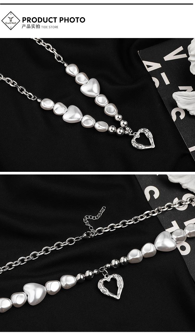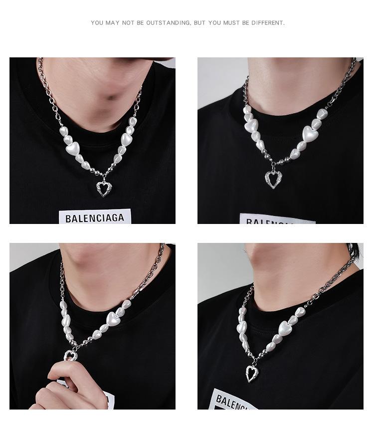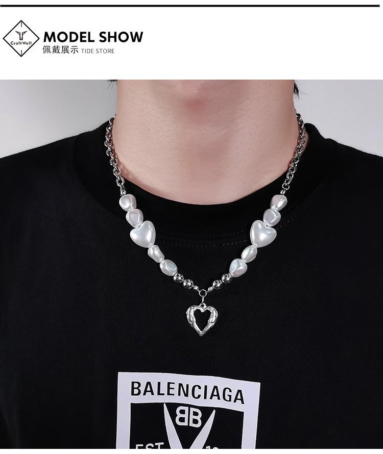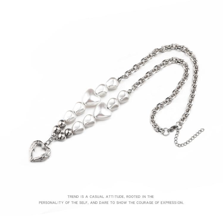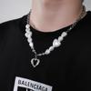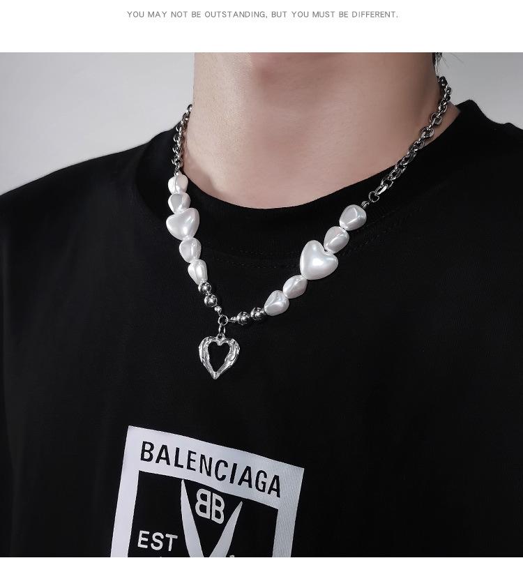 Diseño de tendencia de clavícula cadena ins femenina masculina hip-hop colgante de amor frío collar de perlas collar barroco de acero inoxidable