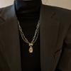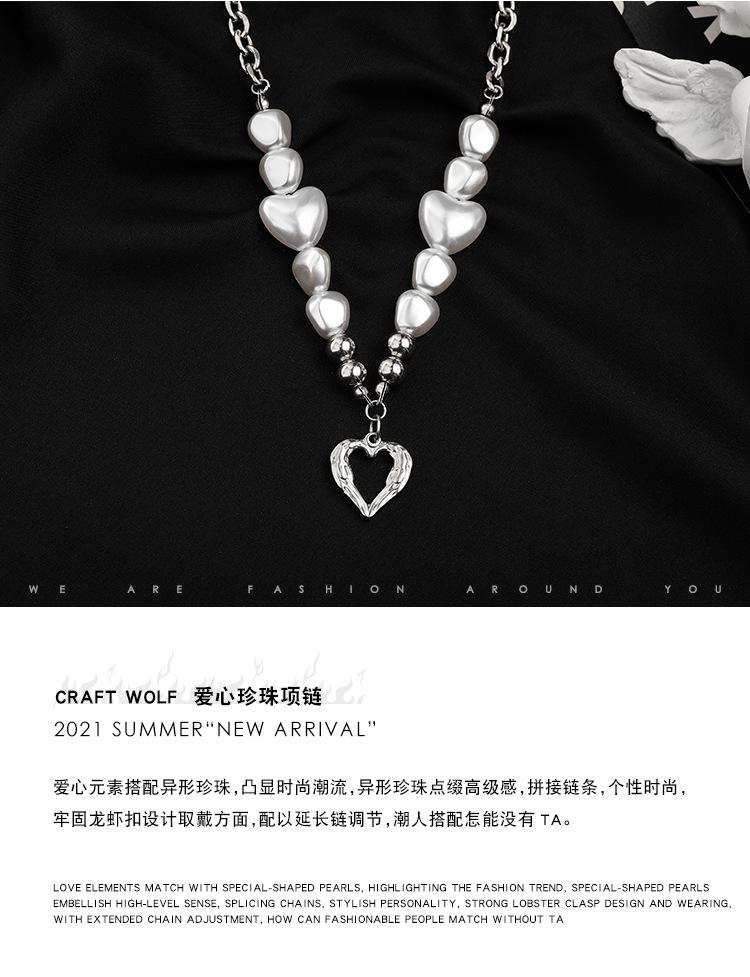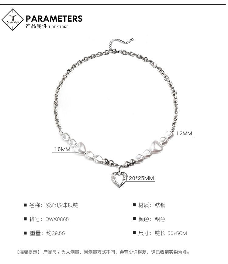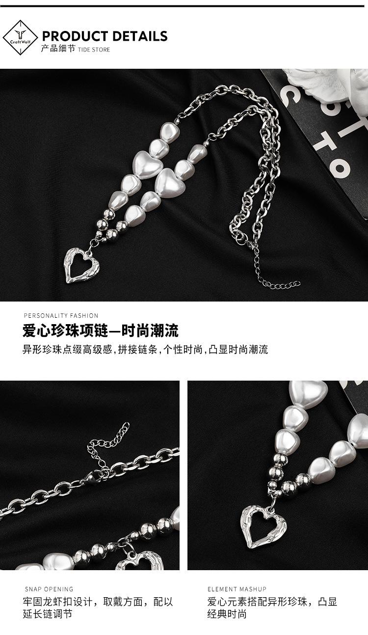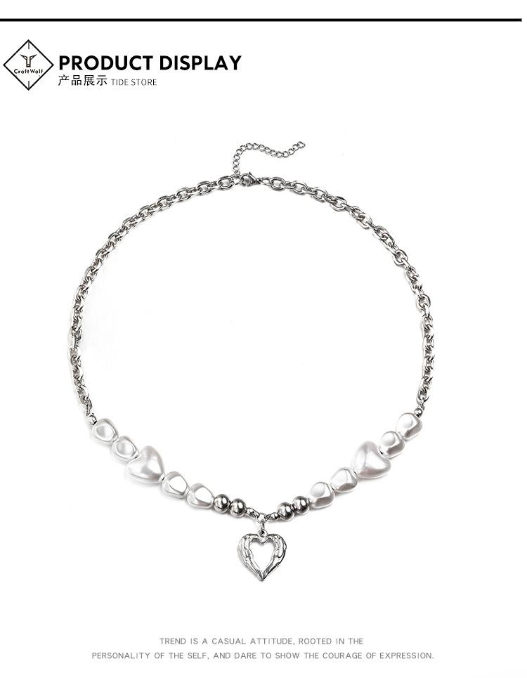 Diseño de tendencia de clavícula cadena ins femenina masculina hip-hop colgante de amor frío collar de perlas collar barroco de acero inoxidable