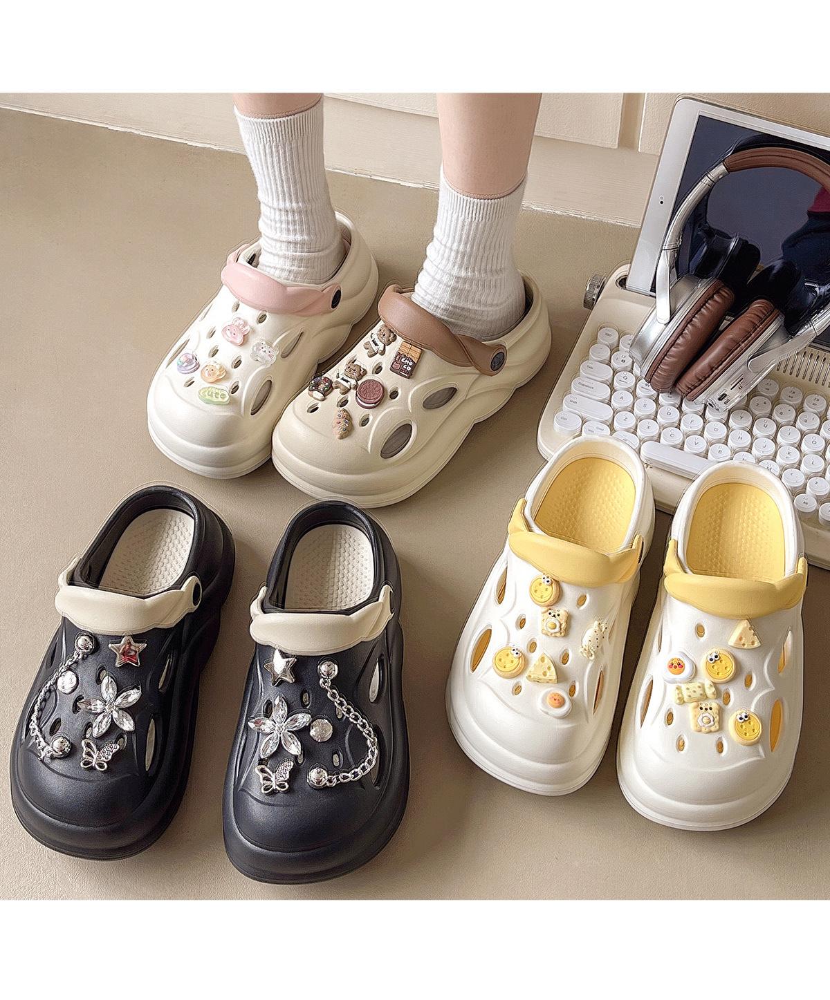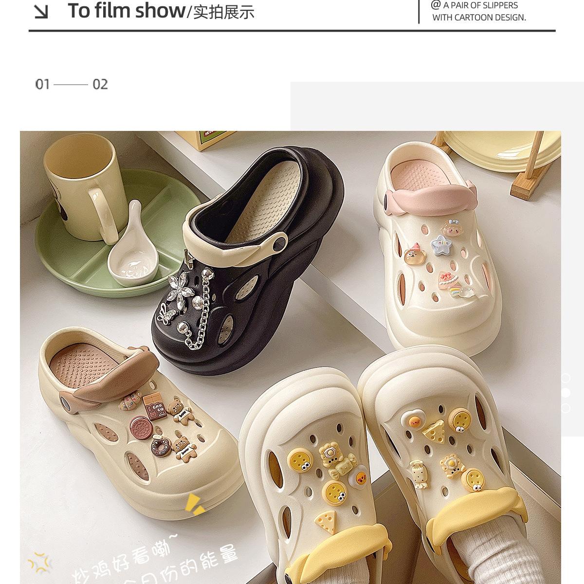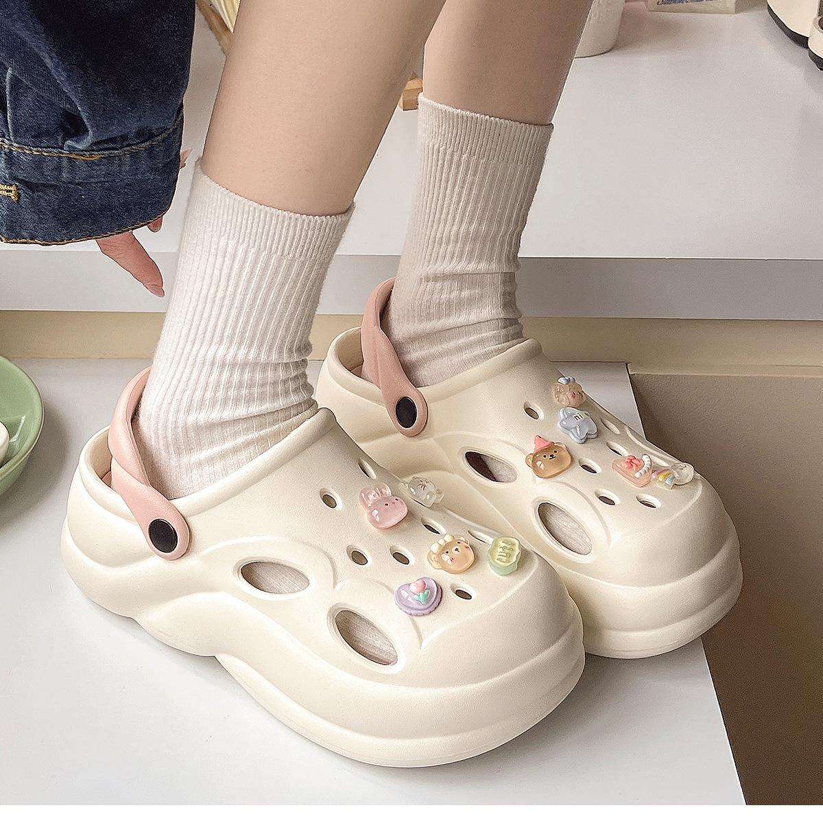 Zapatos de suela gruesa con agujeros para mujer, novedad 2025, zapatos de playa antideslizantes de EVA, sandalias de altura aumentada, ropa de exterior de verano para mujer