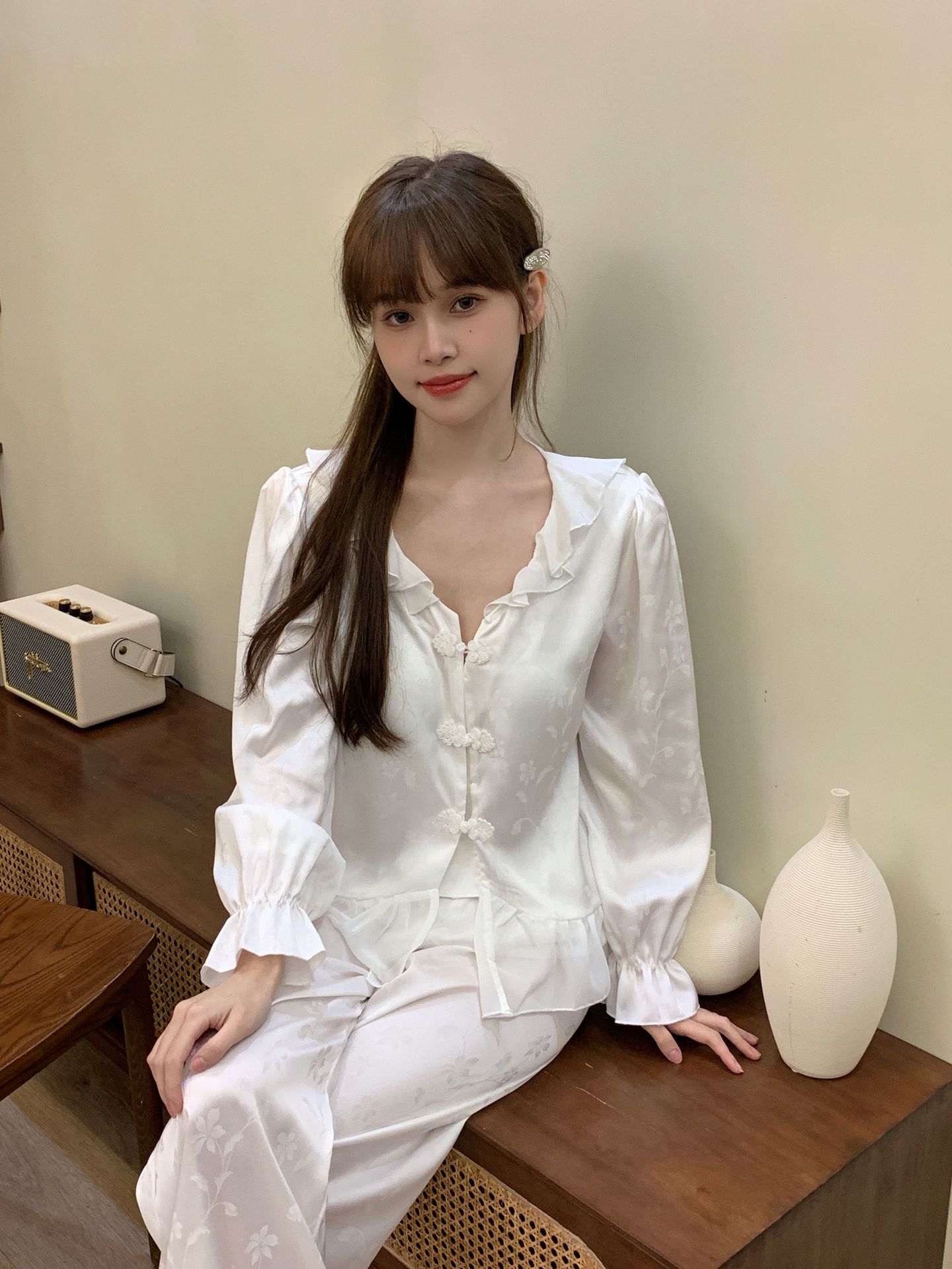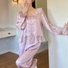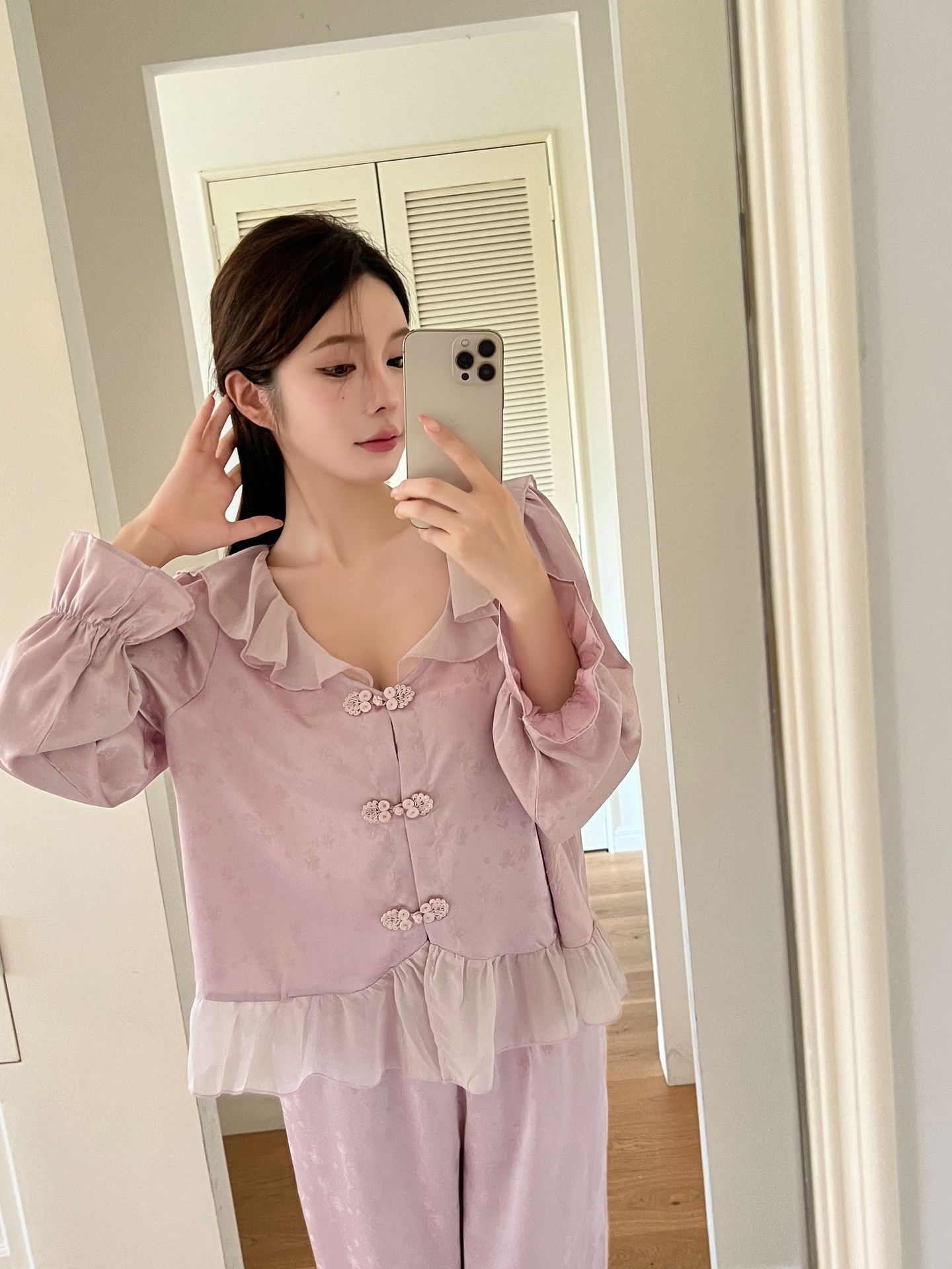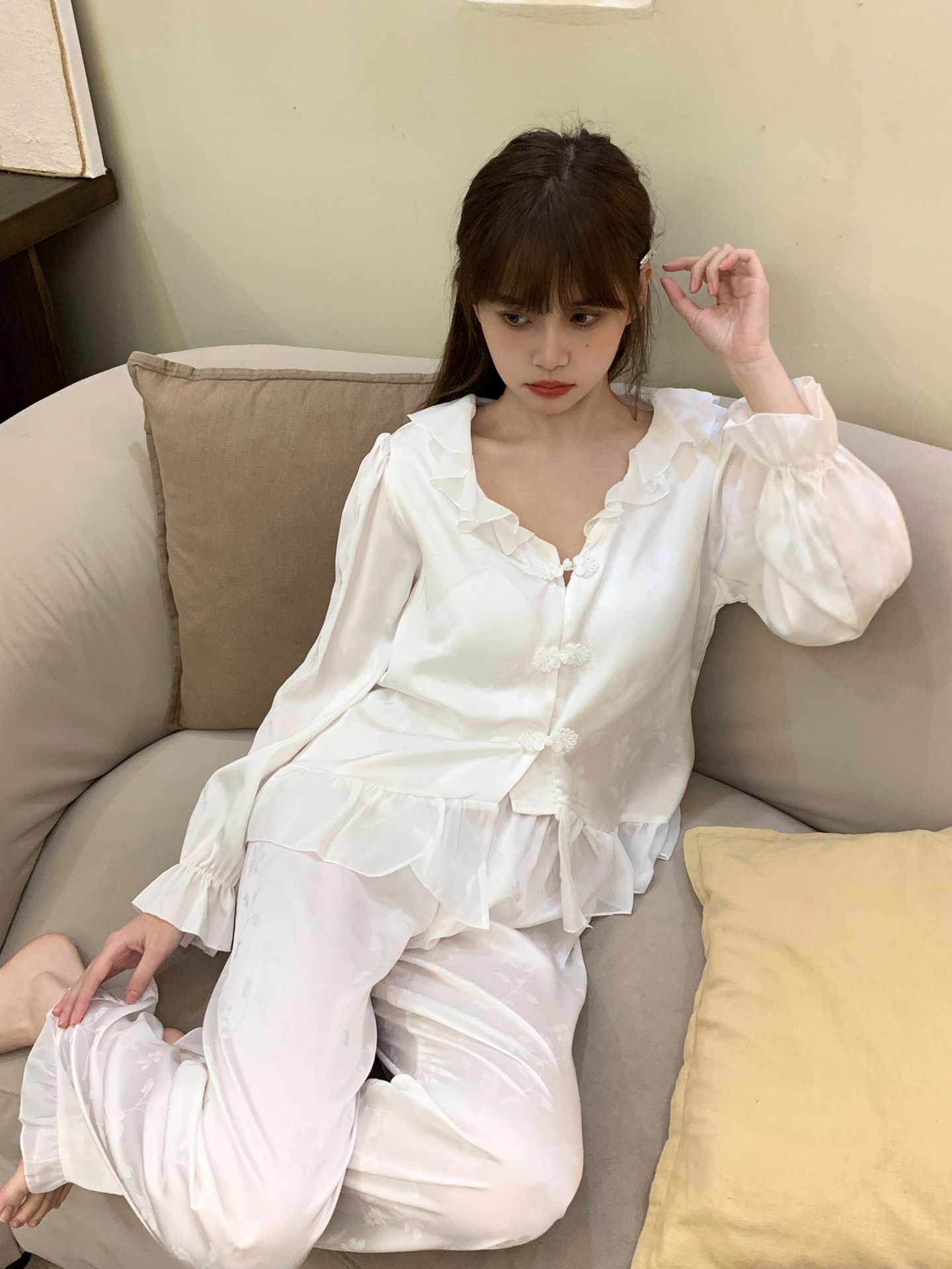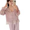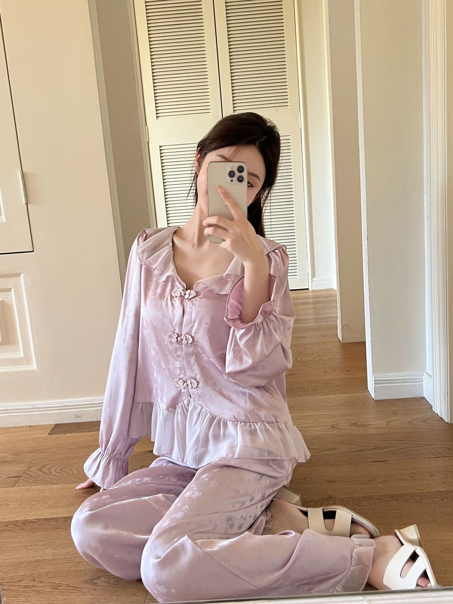 Pijama nuevo de otoño de jacquard de seda de hielo para mujer, estilo japonés de corte dulce de manga larga, ropa de casa para niña, pijama estilo Chanel
