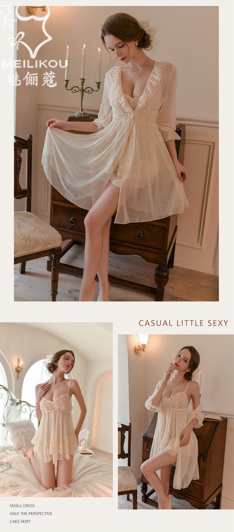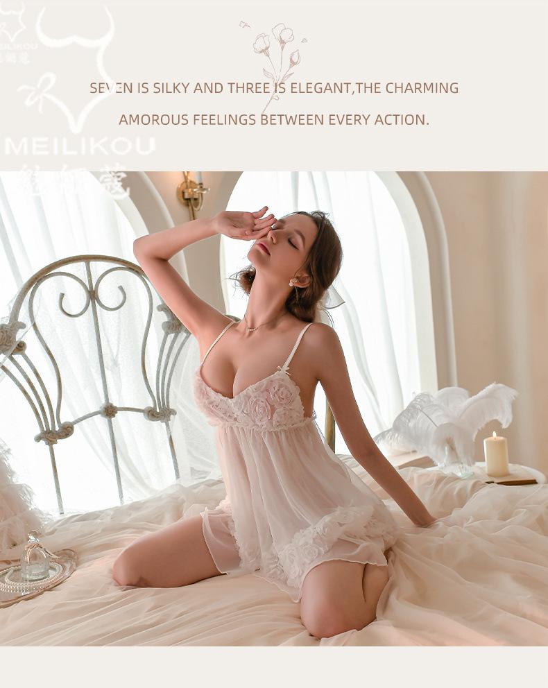 Camisón Sexy, Camisón Delgado de Verano, Malla Transparente Cómodo Tirantes de Flores, Estilo de Hada Hogar 2154