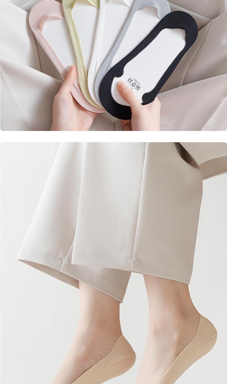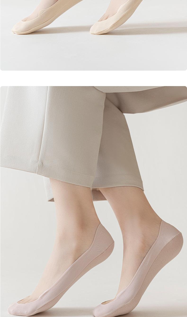 Calcetines náuticos de verano para mujer, finos, de seda helada, de boca baja, invisibles, de algodón puro, de silicona, antideslizantes, de tacón alto.