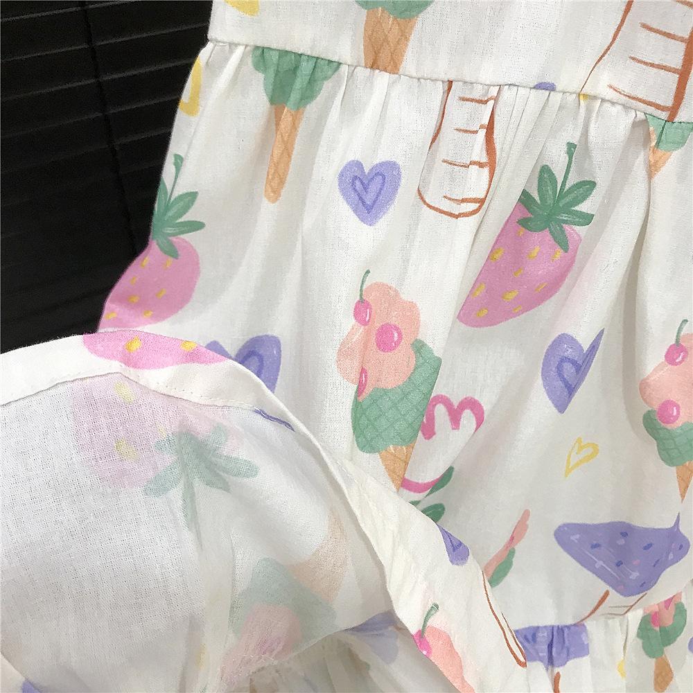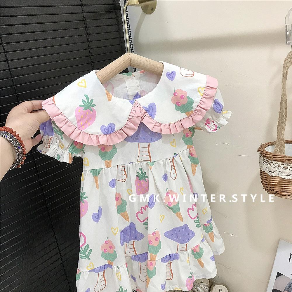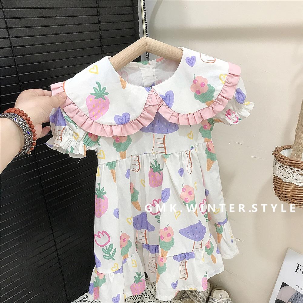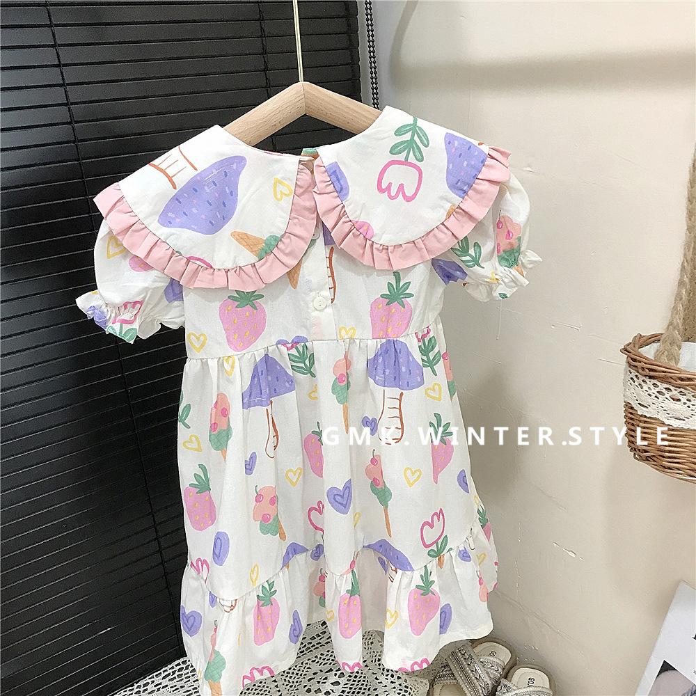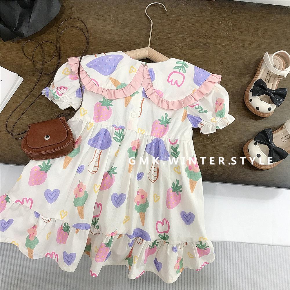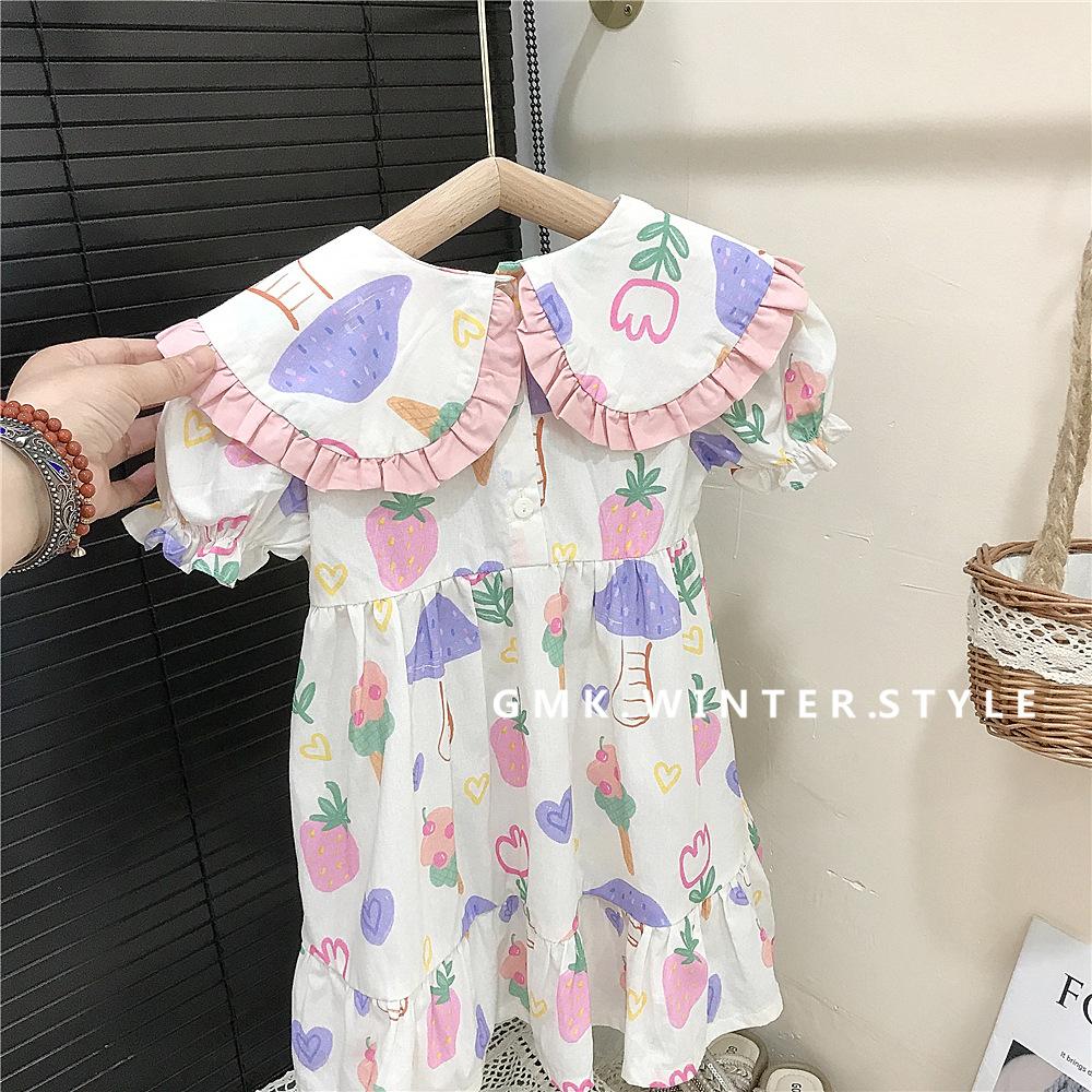 Vestido de manga corta para niña Verano Nuevo Vestido estampado para niños Lindo niña Bebé Solapa Algodón Vestido de princesa