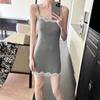 Camisón sexy nuevo para mujer, ligero, de lujo, para el hogar, con tirantes de encaje, pijama de seda helada, para habitación privada, traje de tentación de puro deseo