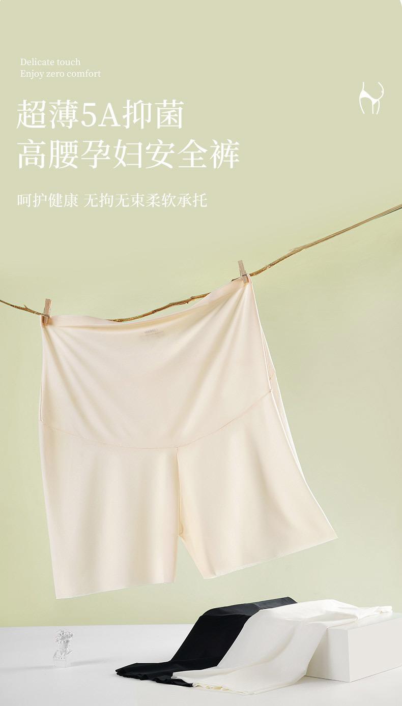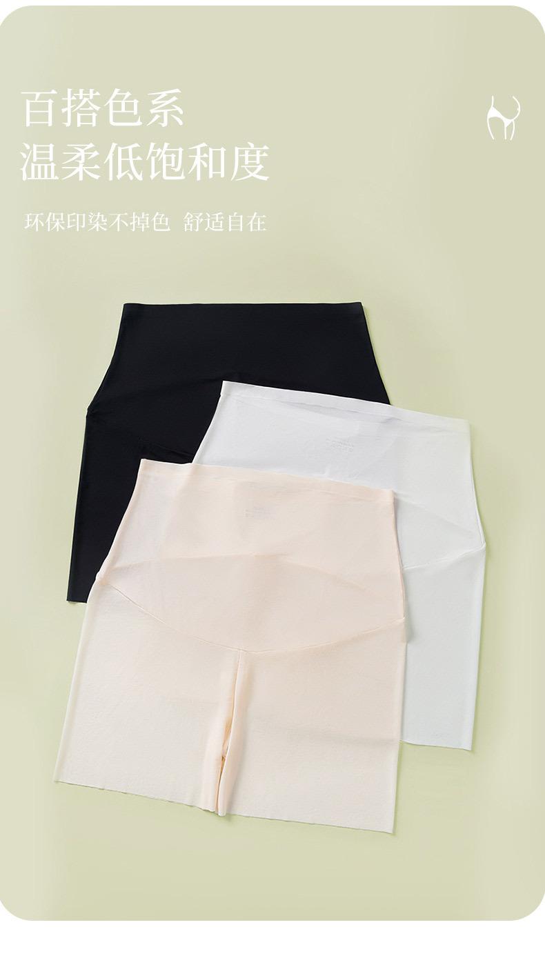 Ropa Interior de Maternidad de Seda de Hielo de Cintura Alta, Pantalones de Seguridad Sin Estiramiento, Soporte para el Vientre de Talla Grande, Anti-Exposición, Leggings Antibacterianos y Transpirables para Mujer