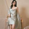 Pijama Sexy de Tirantes de Seda de Hielo Nuevo Ropa de Dormir de Verano Delgada Deseo Puro Camisón Cuello Oscilante Traje Ropa para el Hogar