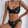 Nuevo Encaje Negro Francés Hermoso Floral Calado Push-Up con Varilla Calzones Femenino Conjunto de Dos Piezas