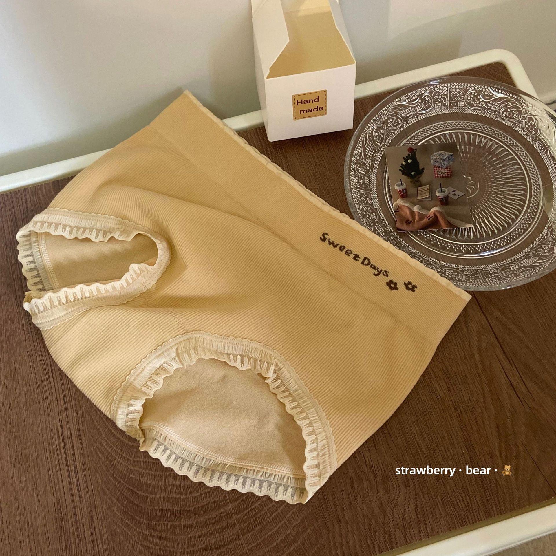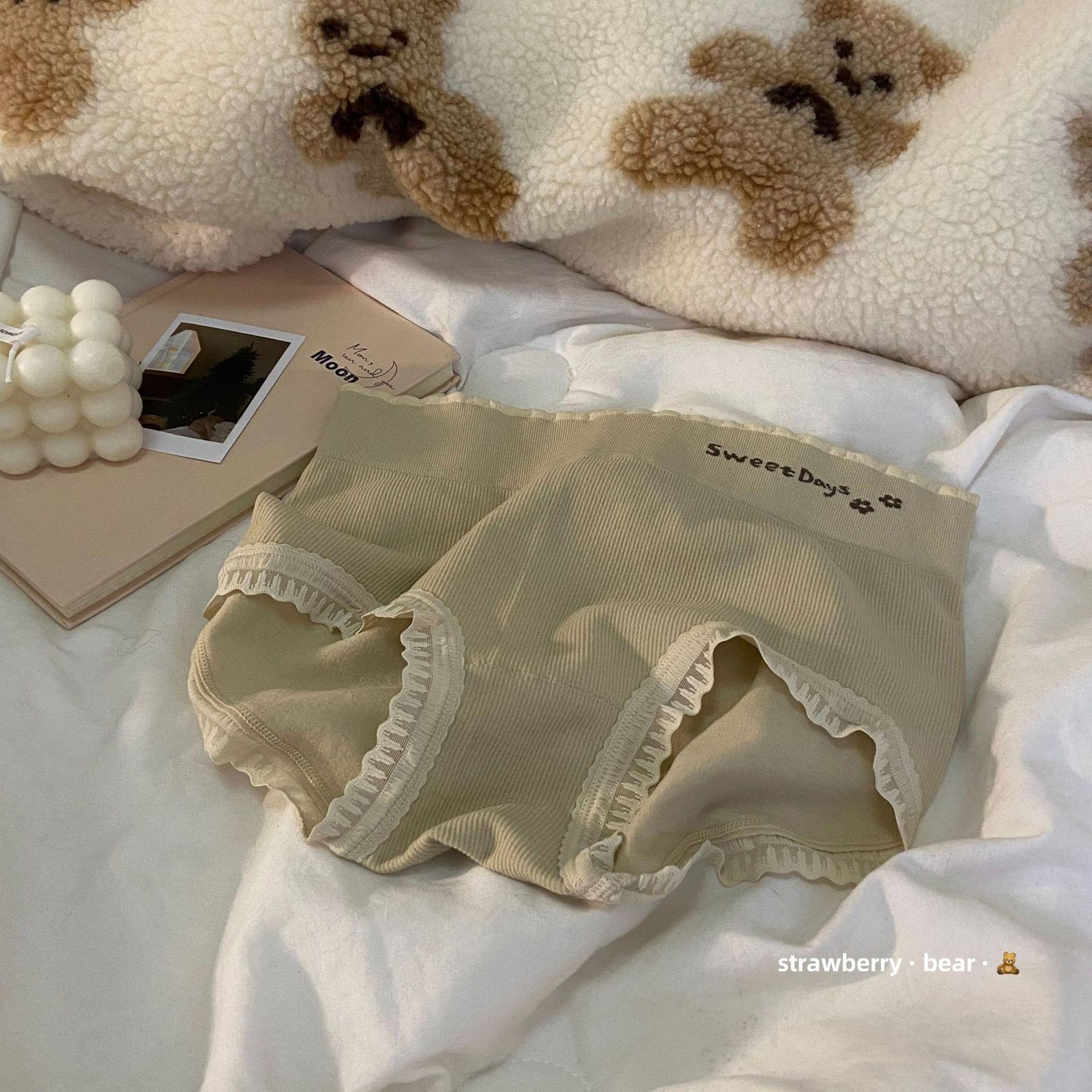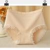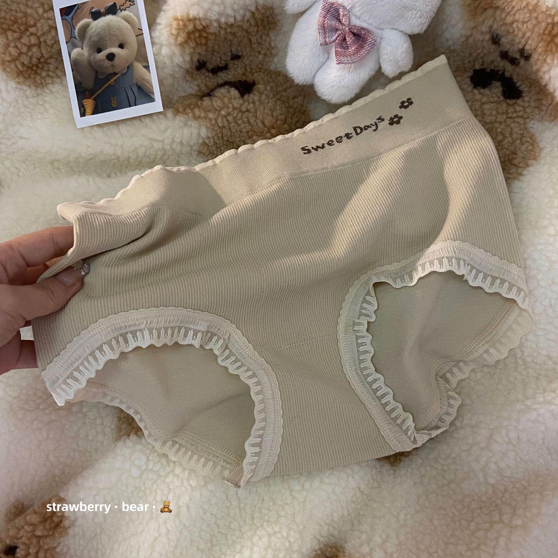 Crema Japonesa Cómodo Entrepierna de Algodón Puro Sin Costuras Cintura Media Borde de Encaje Color Sólido Simple Chica Lindo Ropa Interior para Mujer