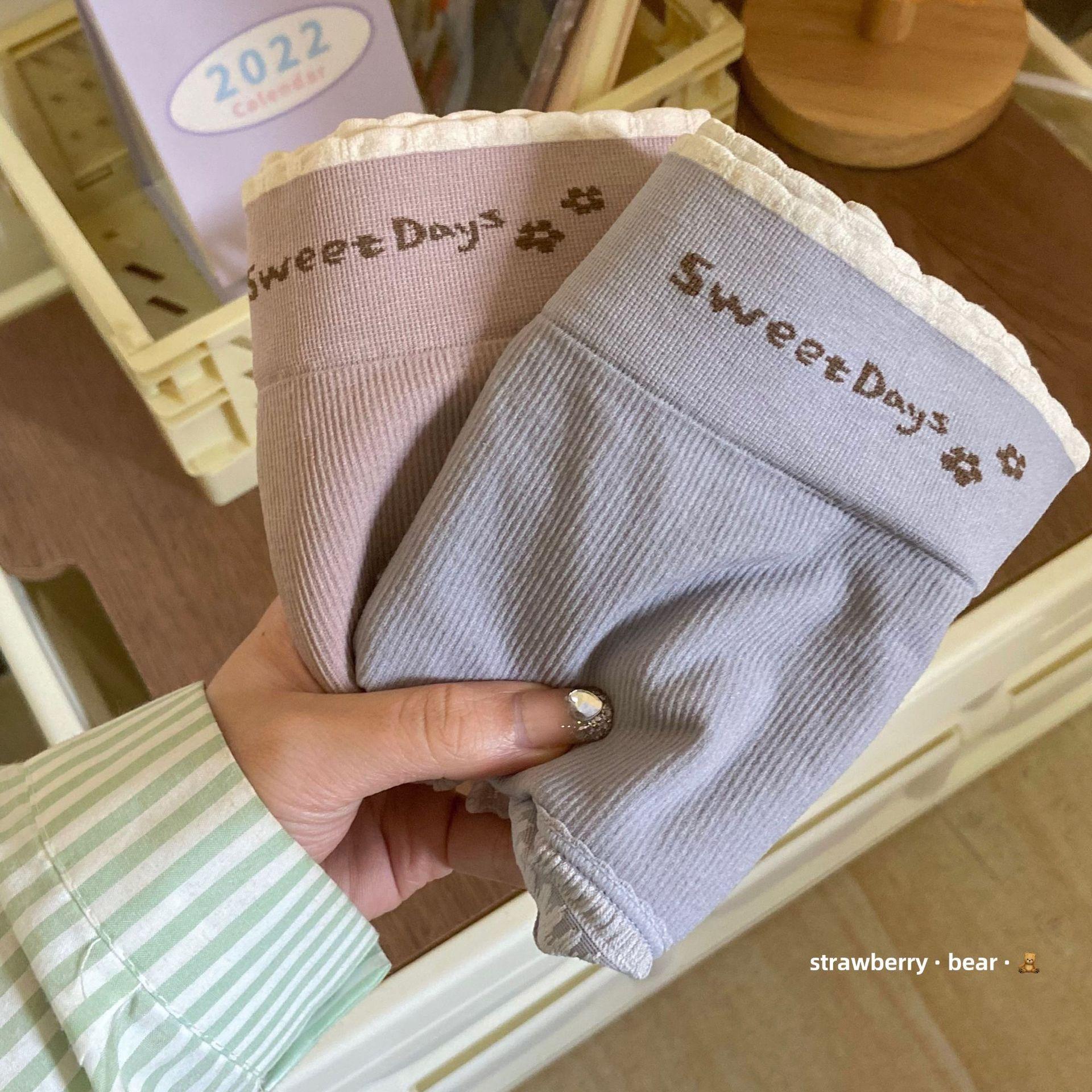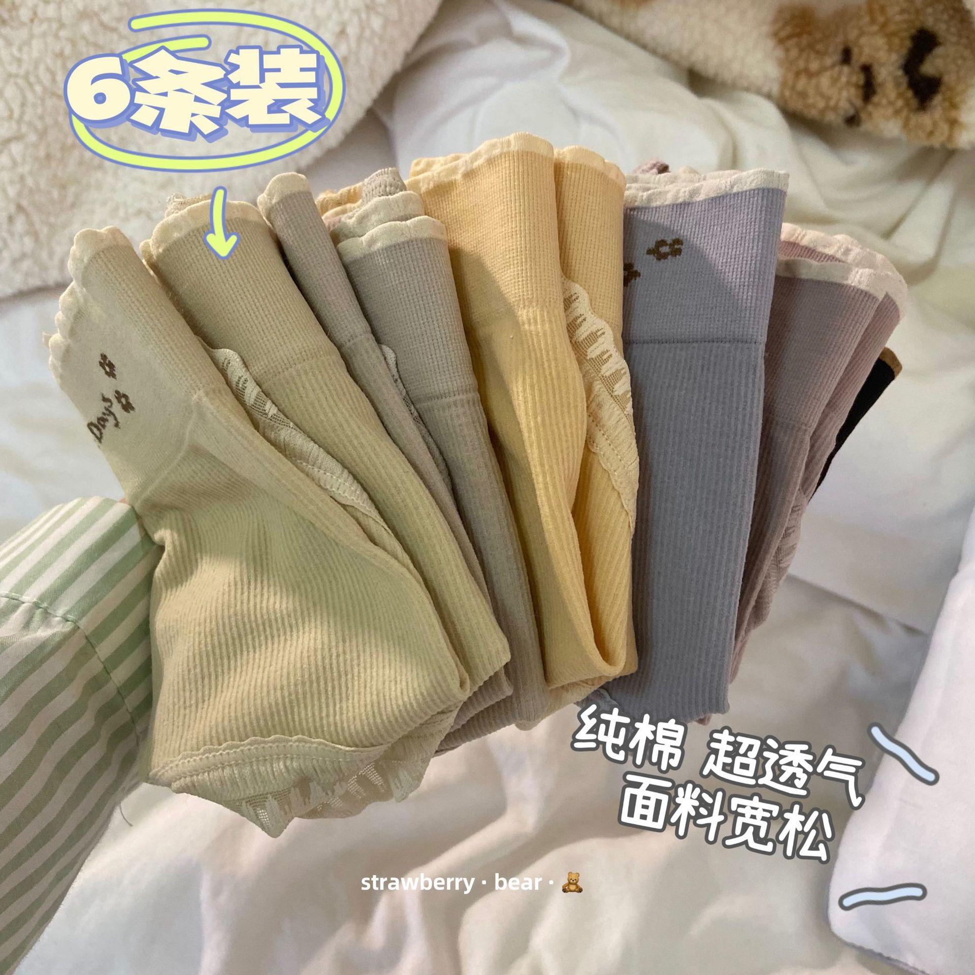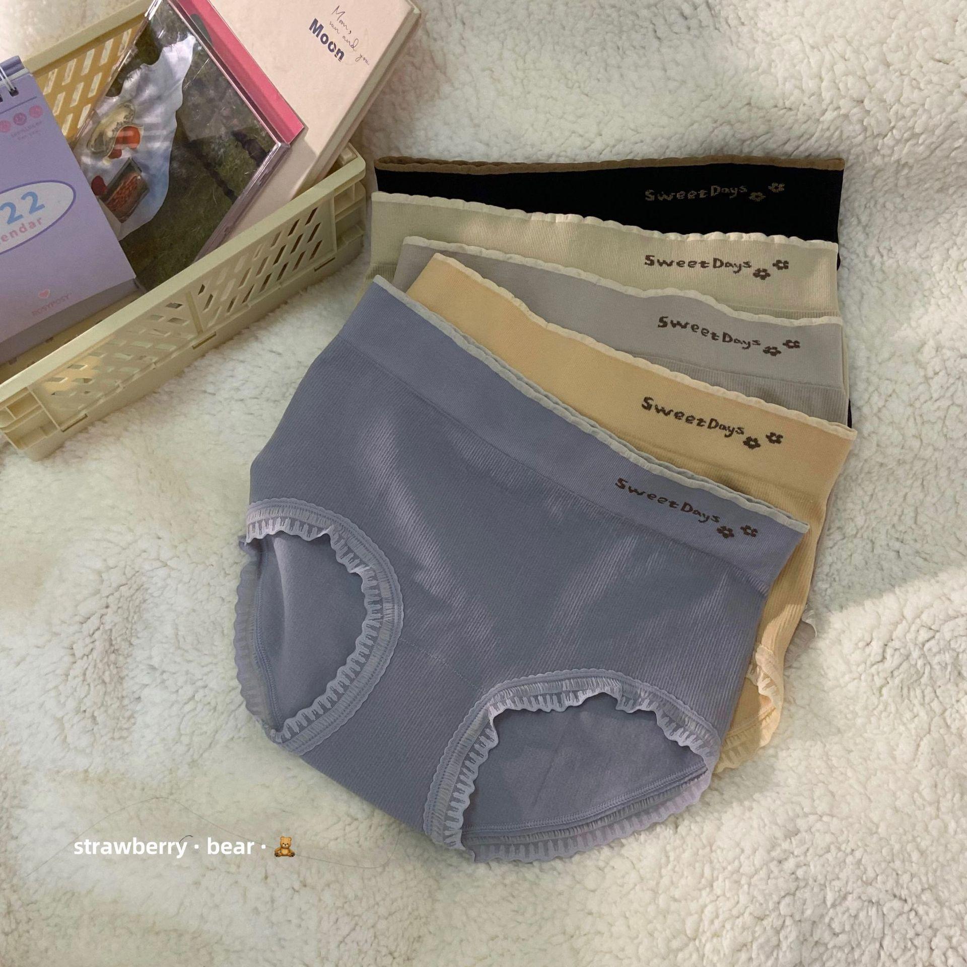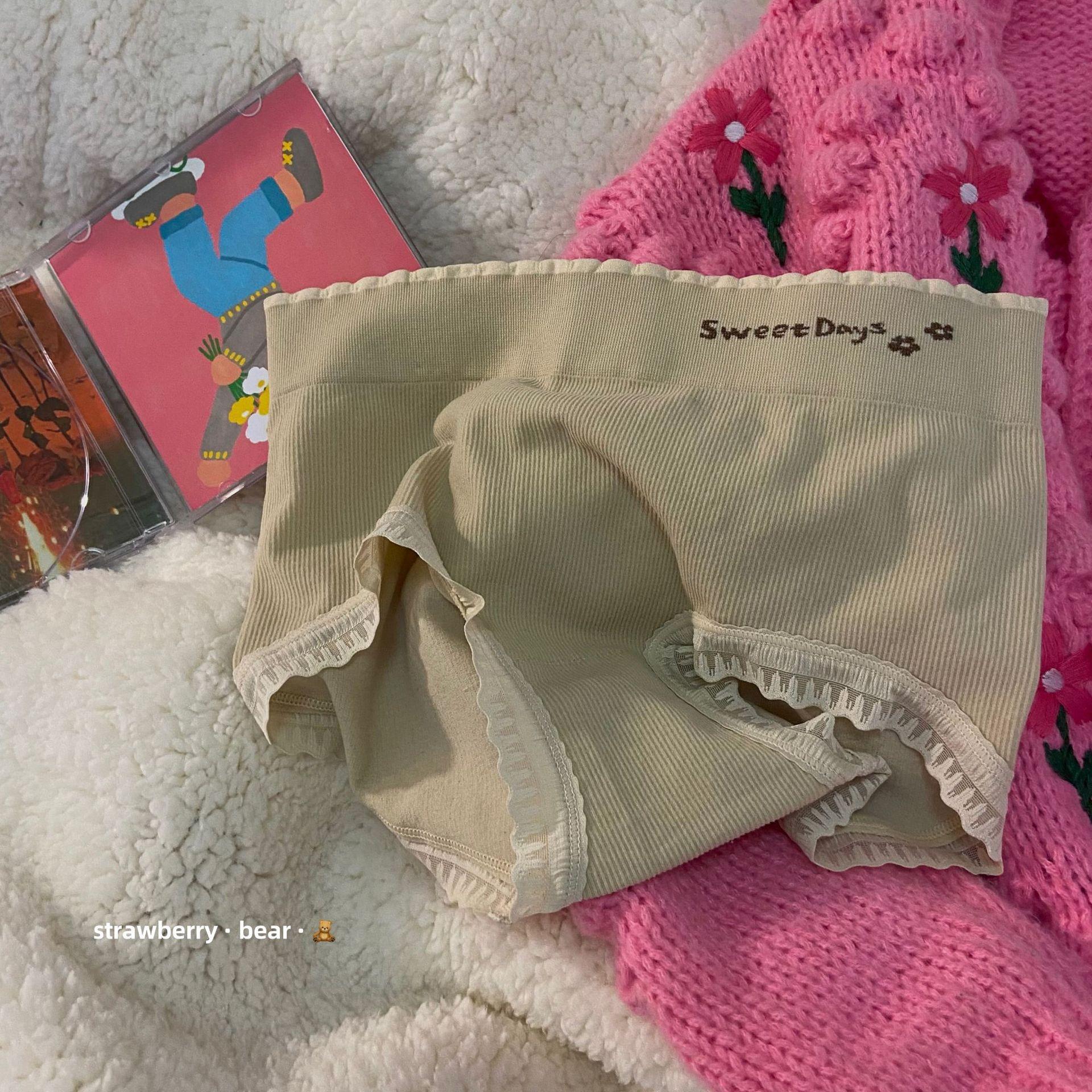 Crema Japonesa Cómodo Entrepierna de Algodón Puro Sin Costuras Cintura Media Borde de Encaje Color Sólido Simple Chica Lindo Ropa Interior para Mujer