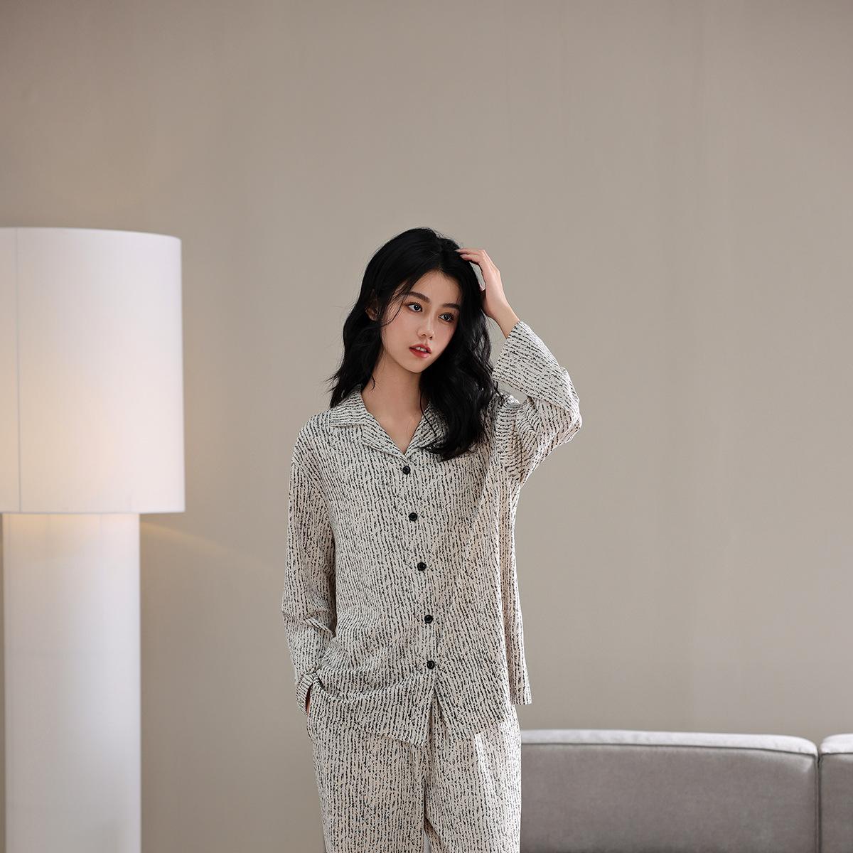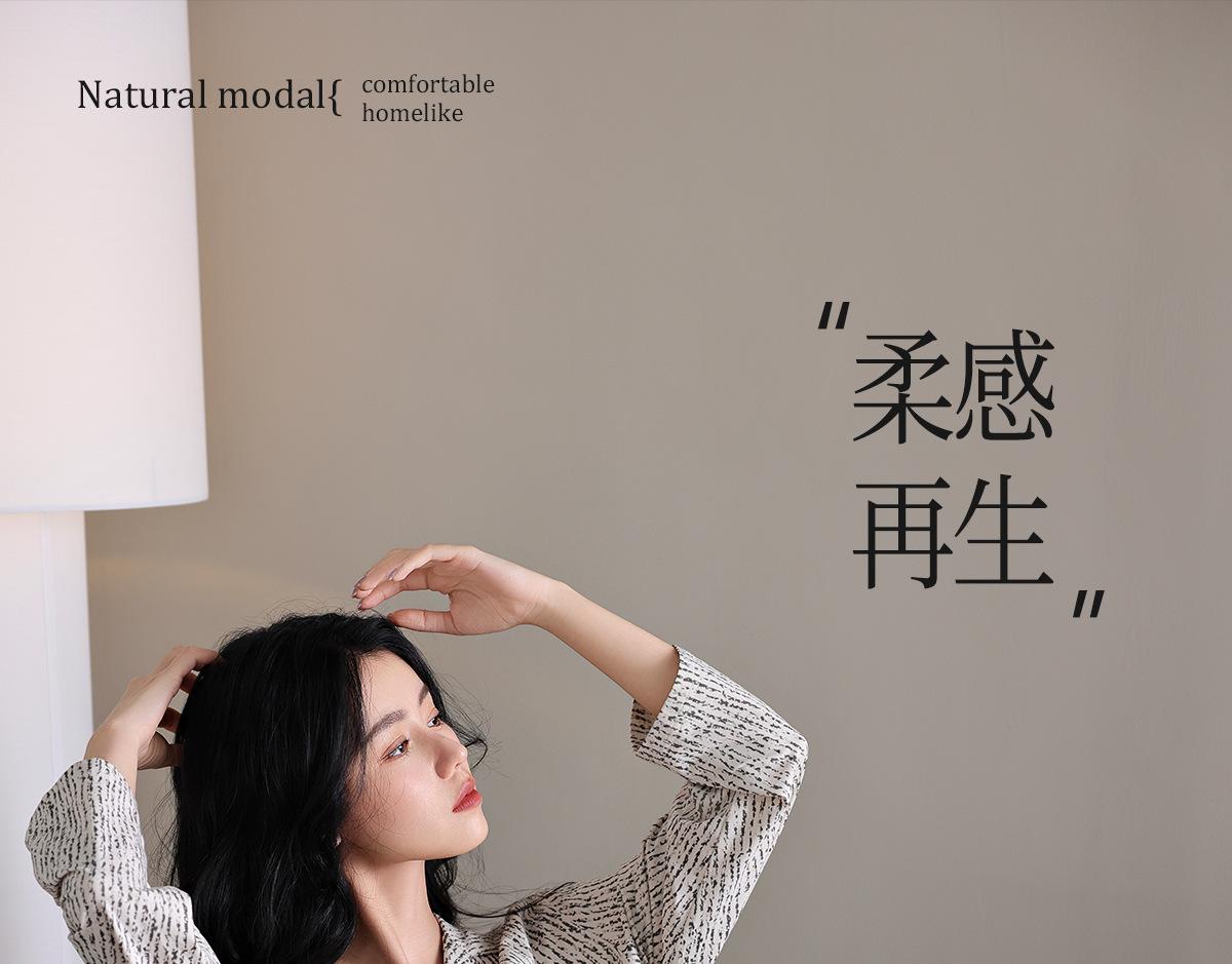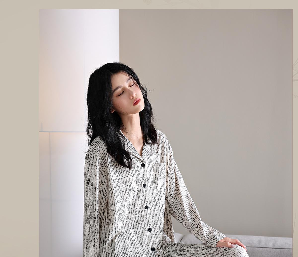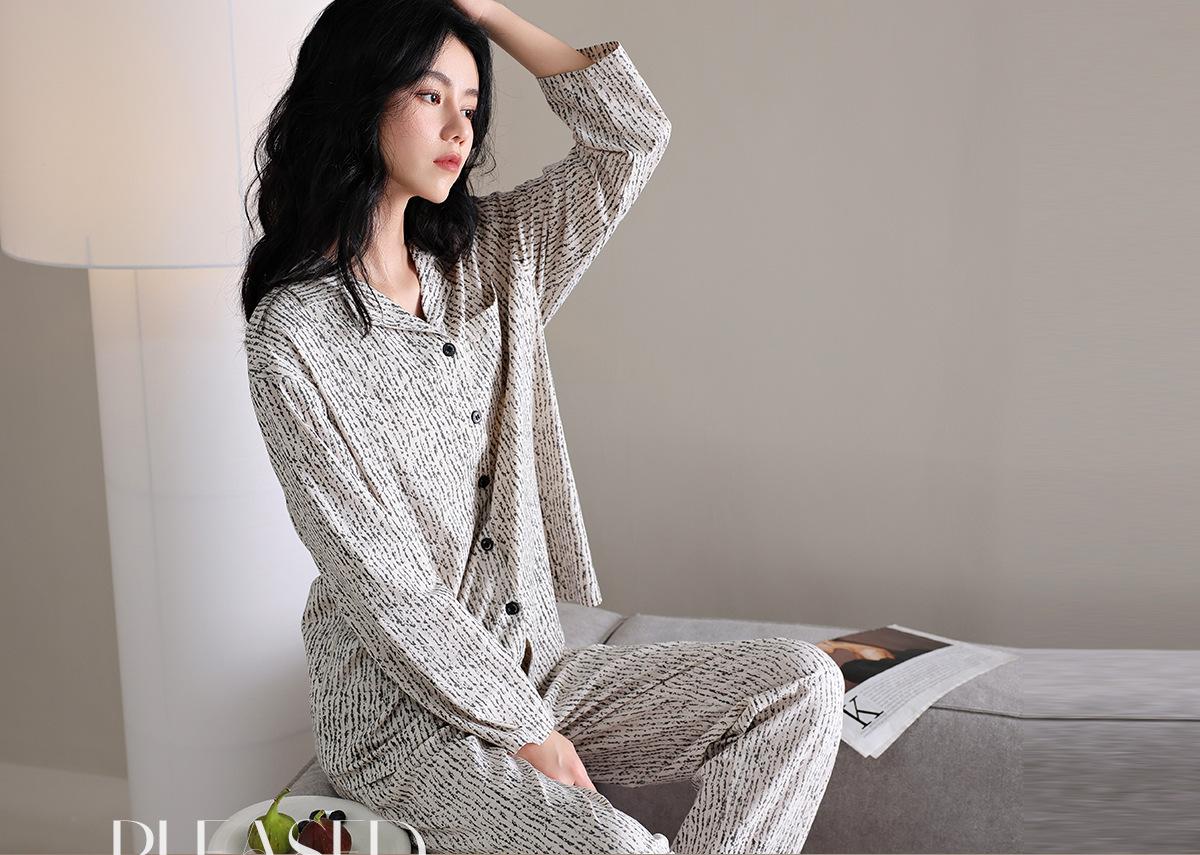 [Antibacterial y Súper Suave] Pijama Fino de Modal para Mujer Otoño Estampado Estilo Ins Ropa para el Hogar Traje de Manga Larga