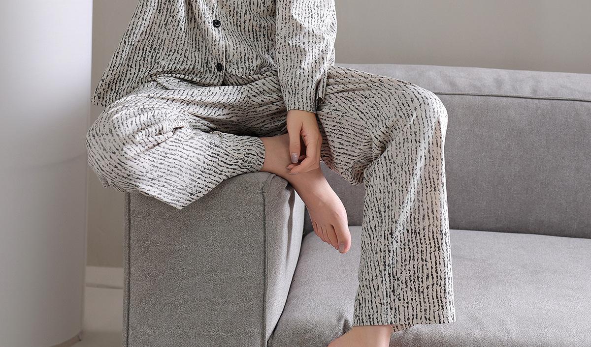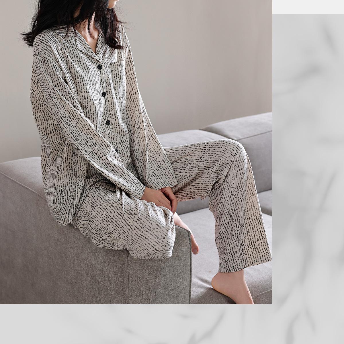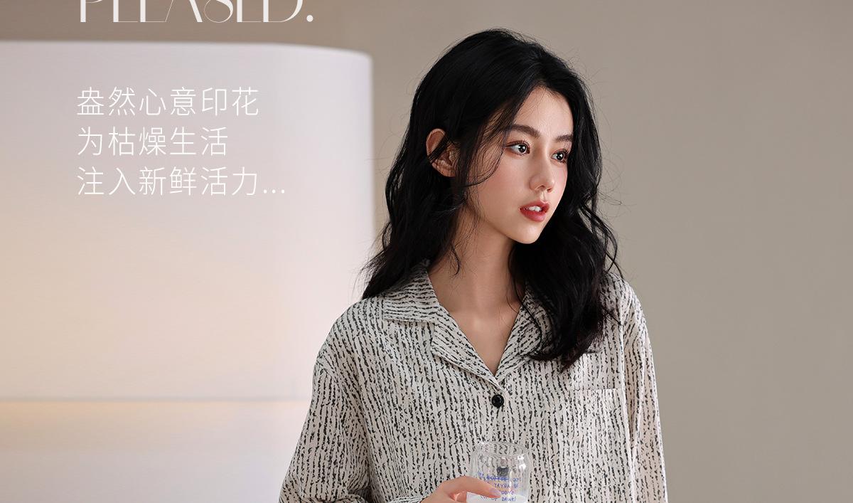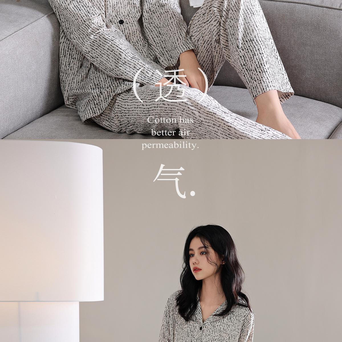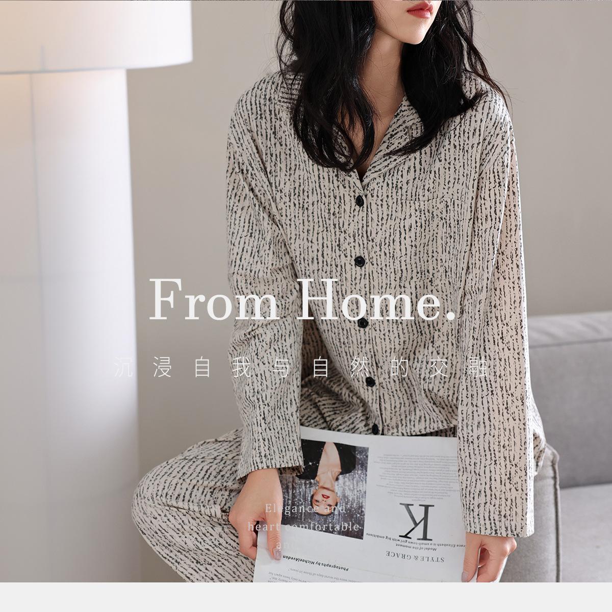 [Antibacterial y Súper Suave] Pijama Fino de Modal para Mujer Otoño Estampado Estilo Ins Ropa para el Hogar Traje de Manga Larga
