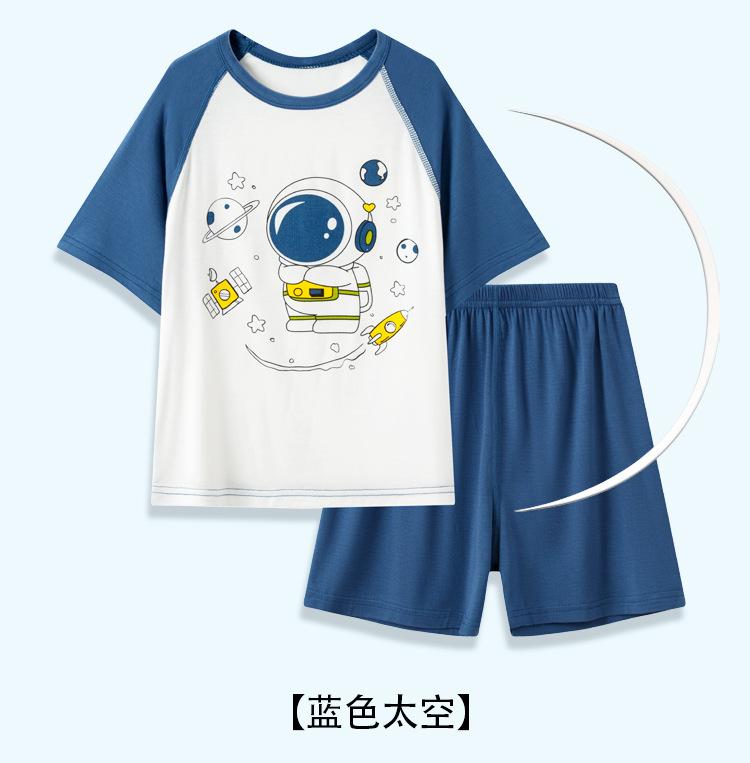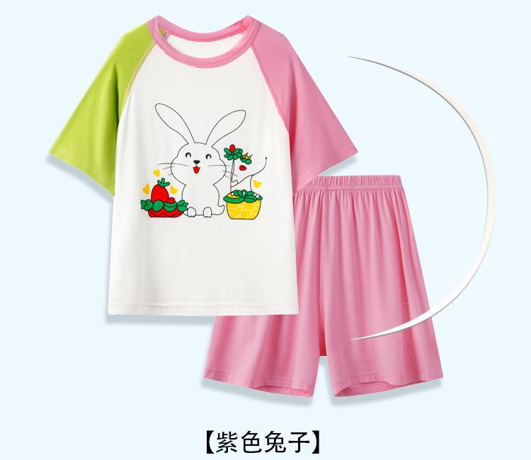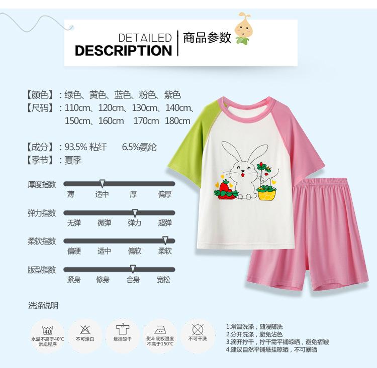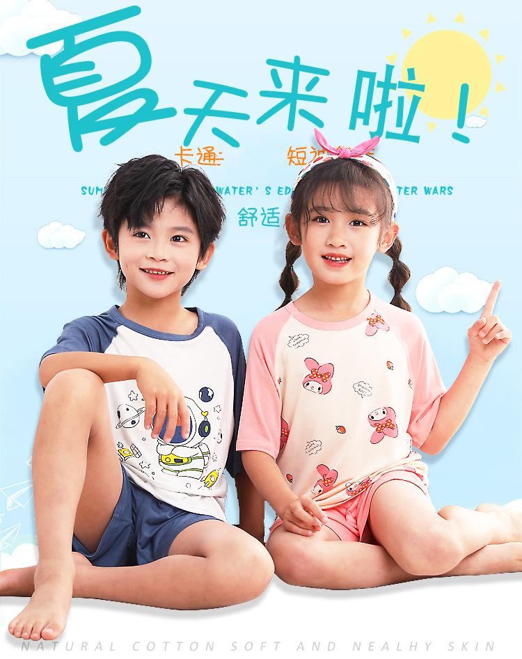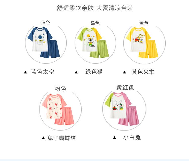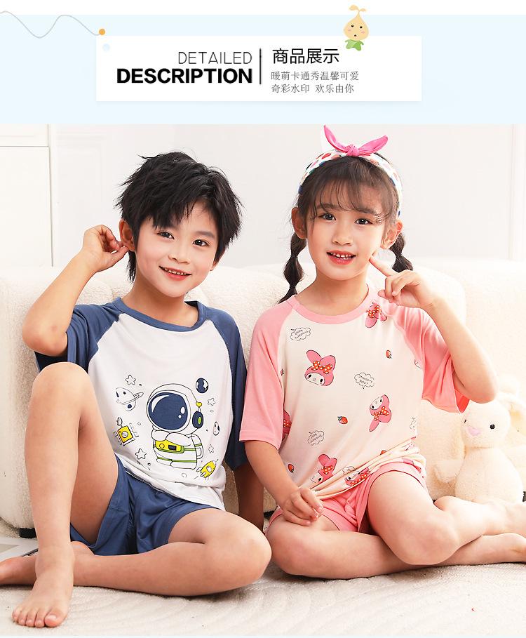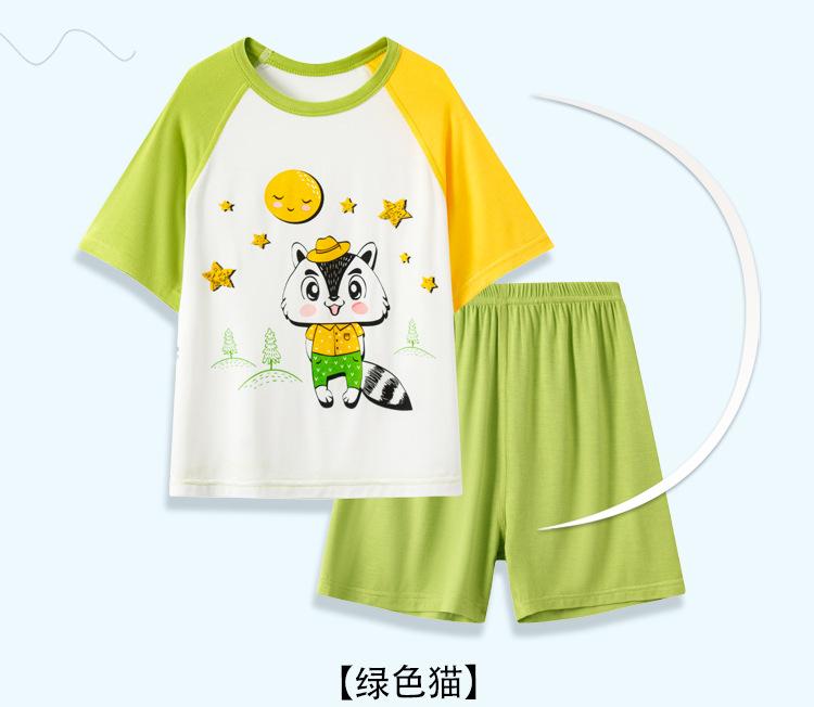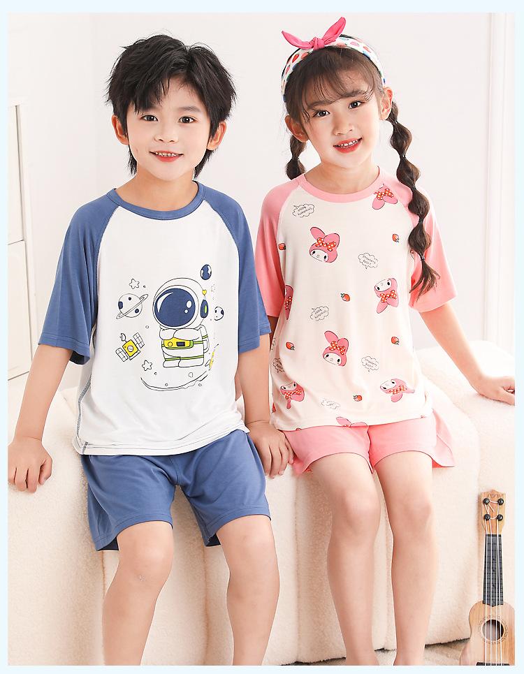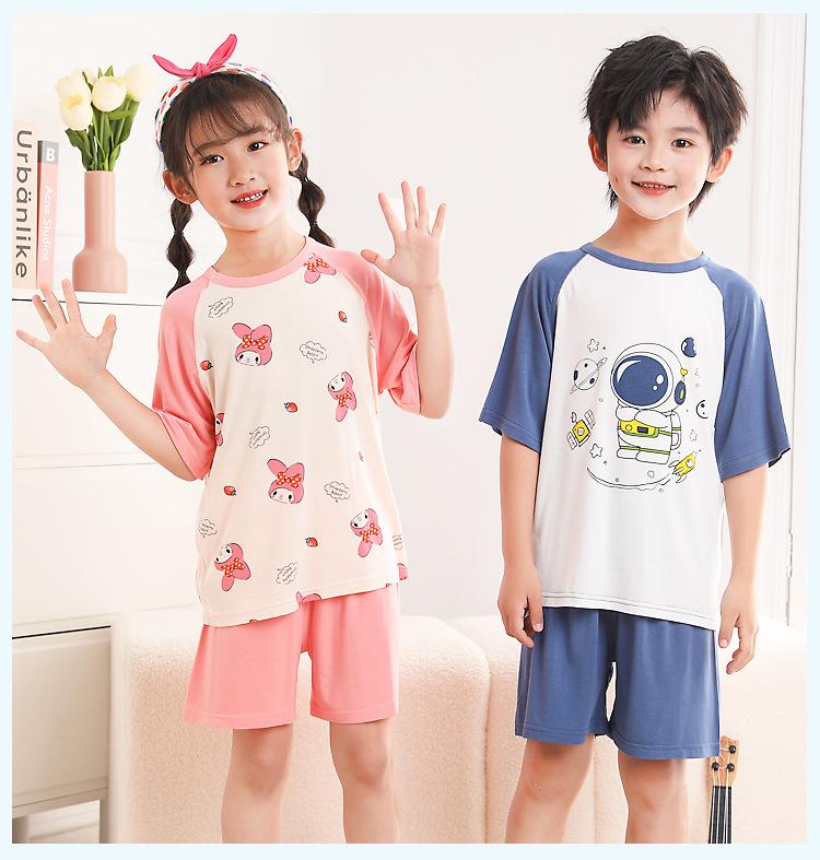 Pijama de seda de hielo de verano para niños, pantalones cortos finos de manga corta de verano para niños, ropa de aire acondicionado para el hogar, pijamas para niños y niñas